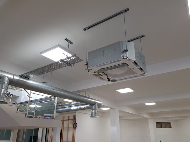 The outdoor units for the air conditioning system had to be located around the back of the building, out of the way. The indoor Ventilation units or VAM units, had to be located high up out of the way but also needed to be positioned in such a way that we could service the units properly. Each VAM unit has a side access panel to get to the fresh air filters.
