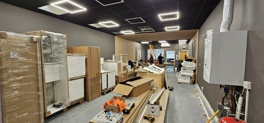 The new suspended ceiling was installed first along with all new electrical supplies for the new kitchen and the LED lighting.
