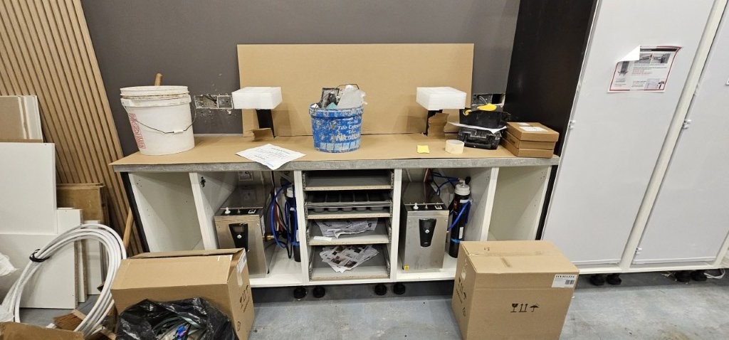 The main plan was always to move the kitchen from the office area into the store area, and create a kitchen space there. This will increase the available space for the office area.