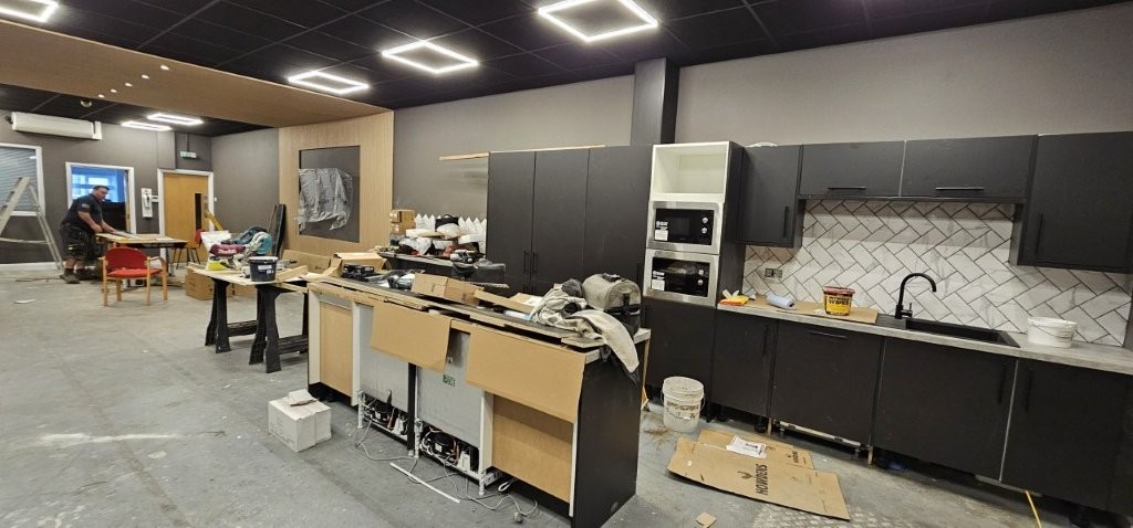 The first priority was to remove the existing kitchen and breakout space and create the new offices for the HR and admin teams so they could move out of the back room.