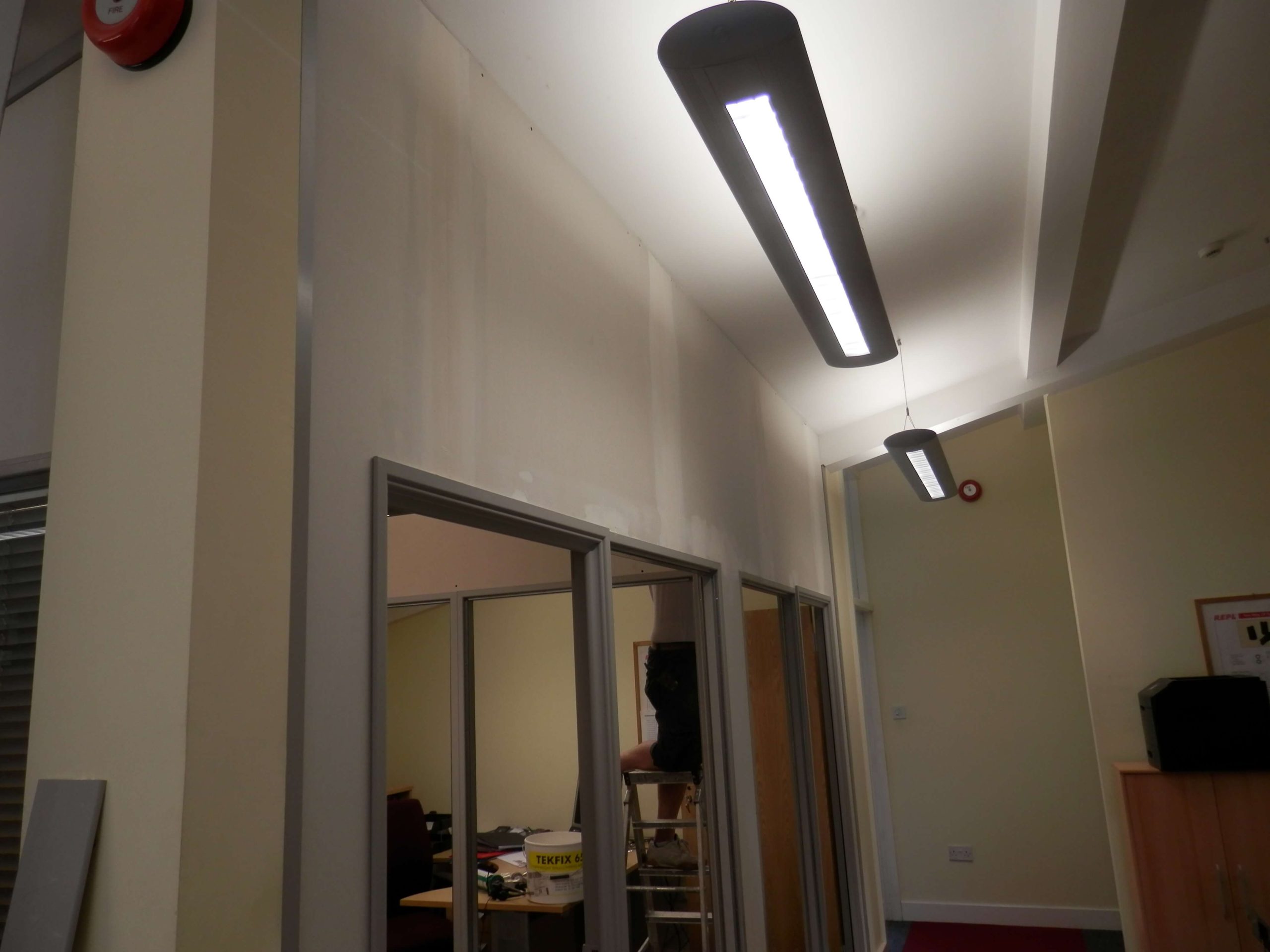 Above the mezzanine floor we installed a new suspended ceiling with new LED lighting on both floors.