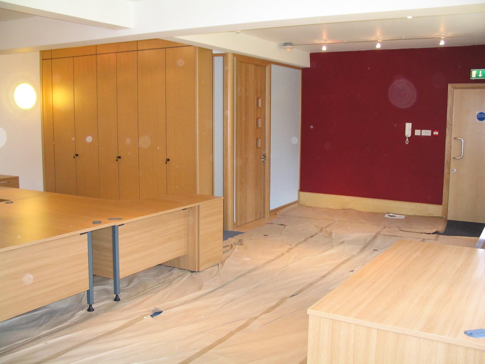 The activities included Office Design, Project Management, CDM regulations, Building Regulations, contracts, stripping out work, demountable glass partitioning, decorations, design of a breakfast bar, supply and fit of all office furniture, air conditioning new and changes to existing, ventilation changes, lighting, electrical work, data cabling, supply and fitting of the communications cabinet, cctv, access control, audio visual equipment and connection, storage wall and flooring changes. We also supplied all of the office furniture, screens, cupboards, plants, graphics, chairs and monitor arms.