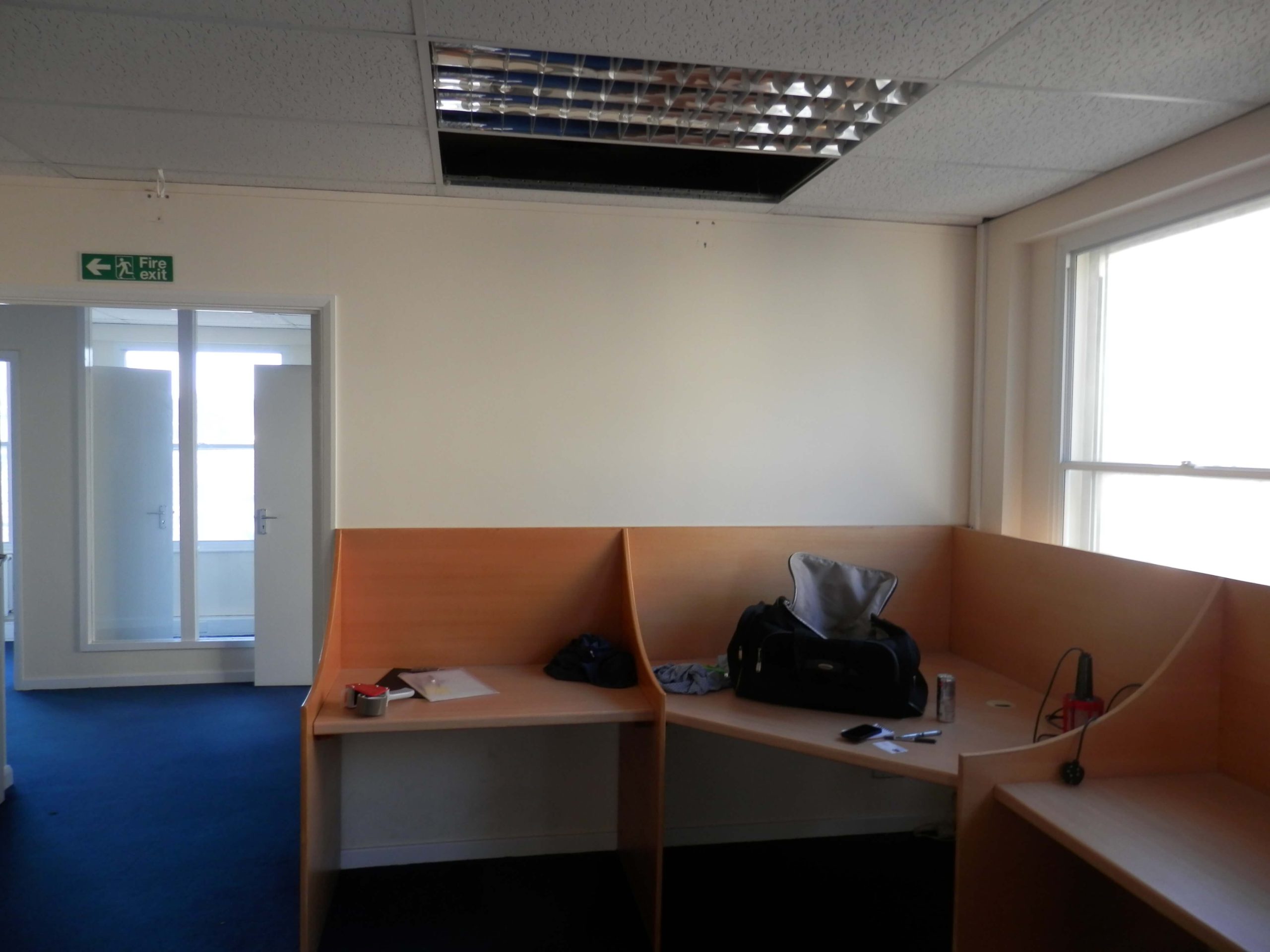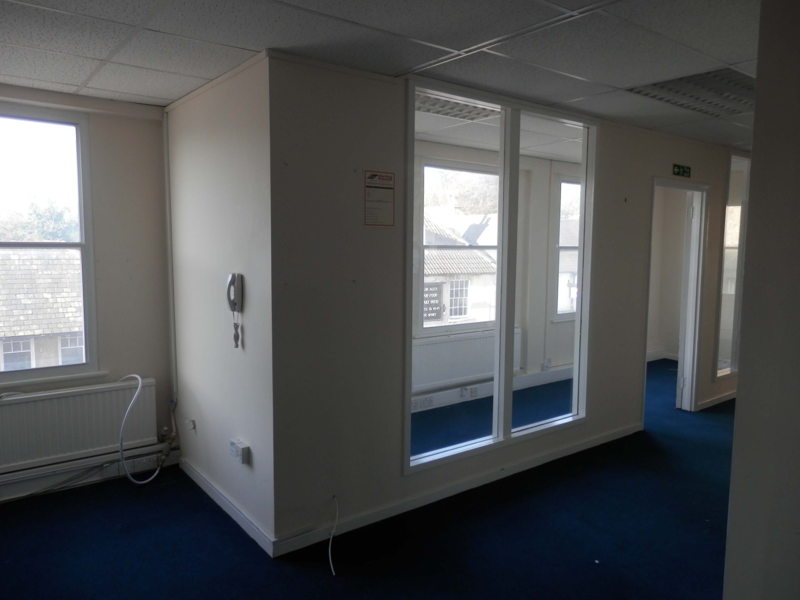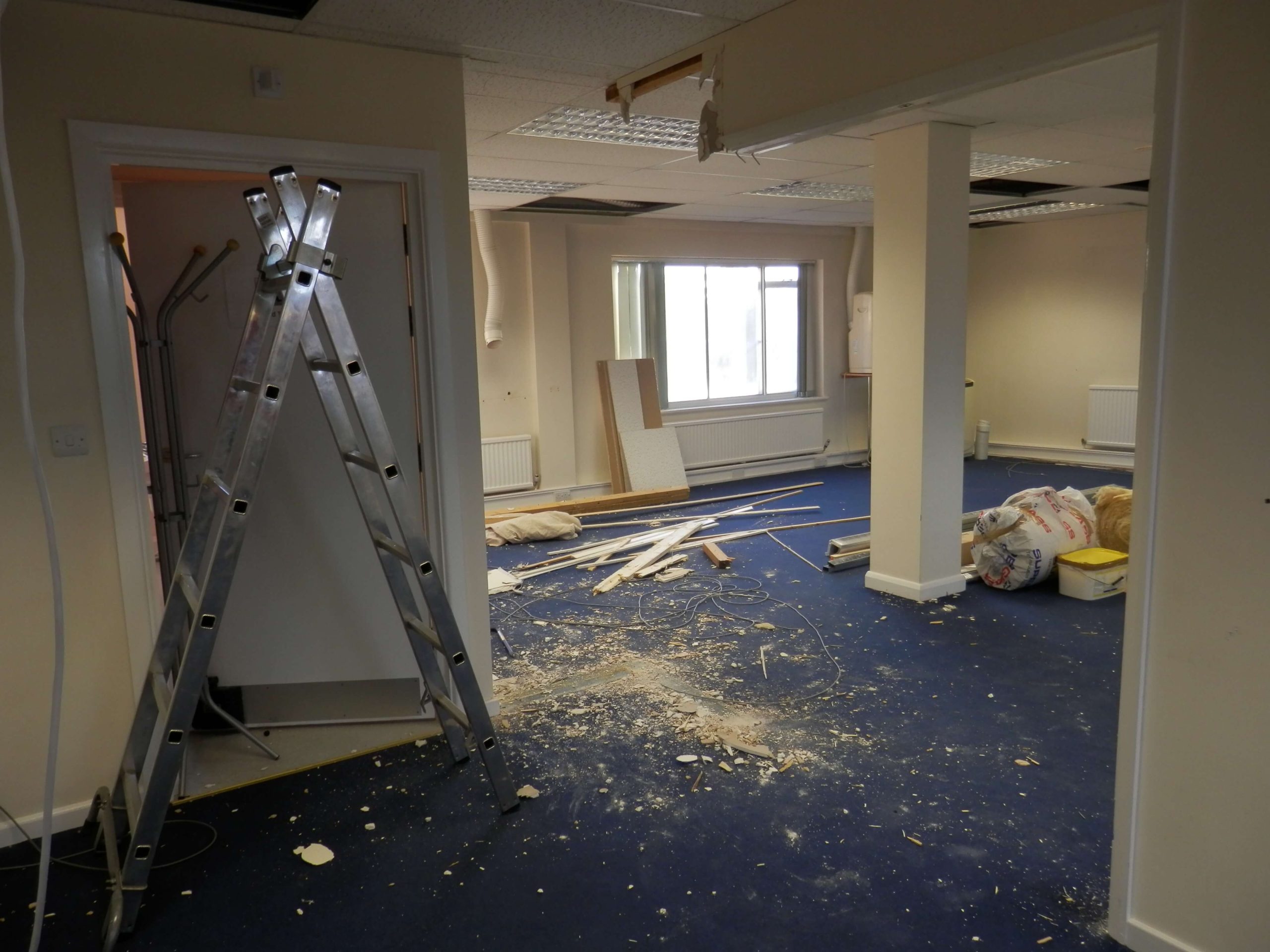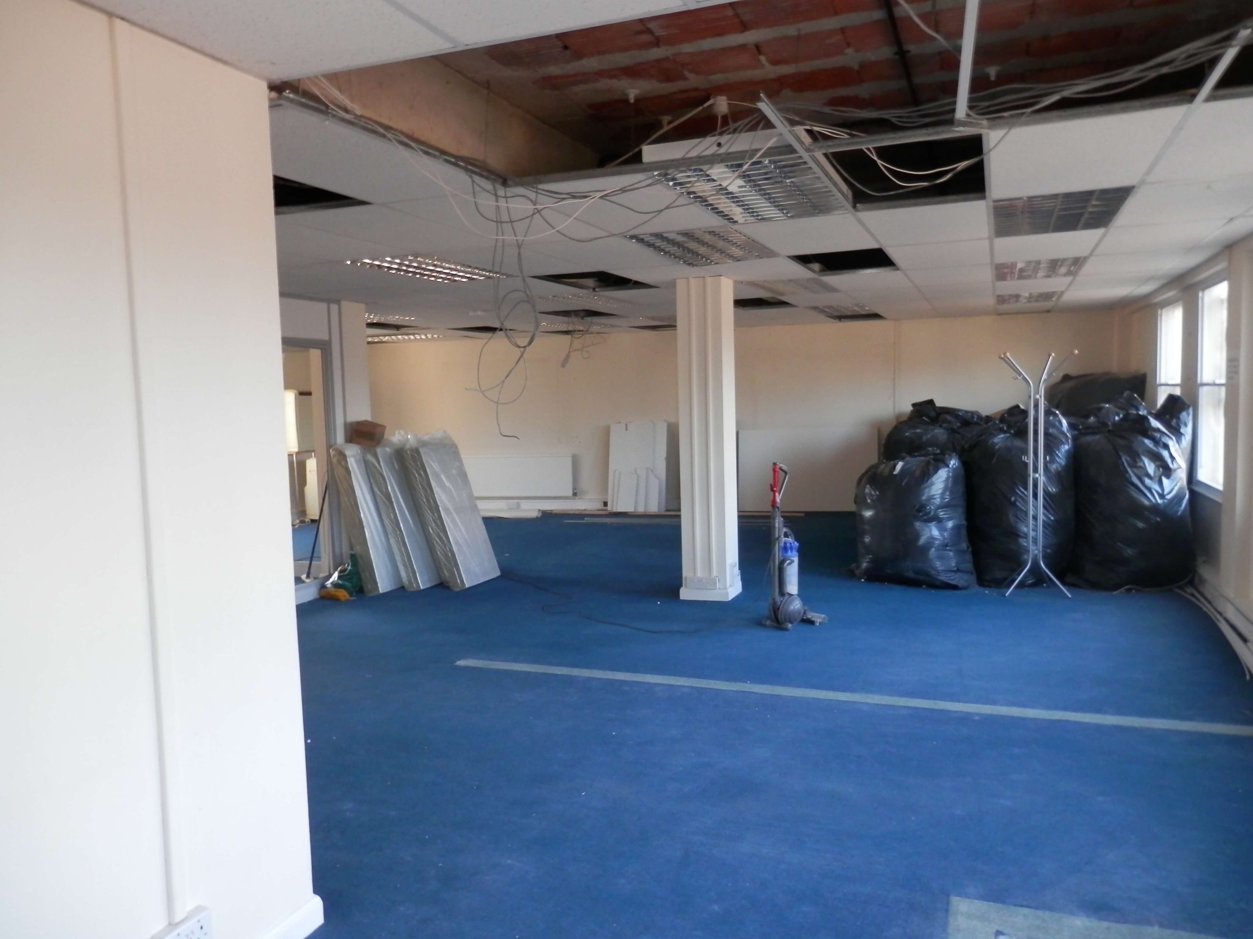 Sat 7 based in Chippenham contacted us recently as they wanted us to remove partitioning walls within their 2nd floor office which included large glass windows. They also wanted new demountable partitioning put up within this office space, once this was done we had to match and repair the carpet.