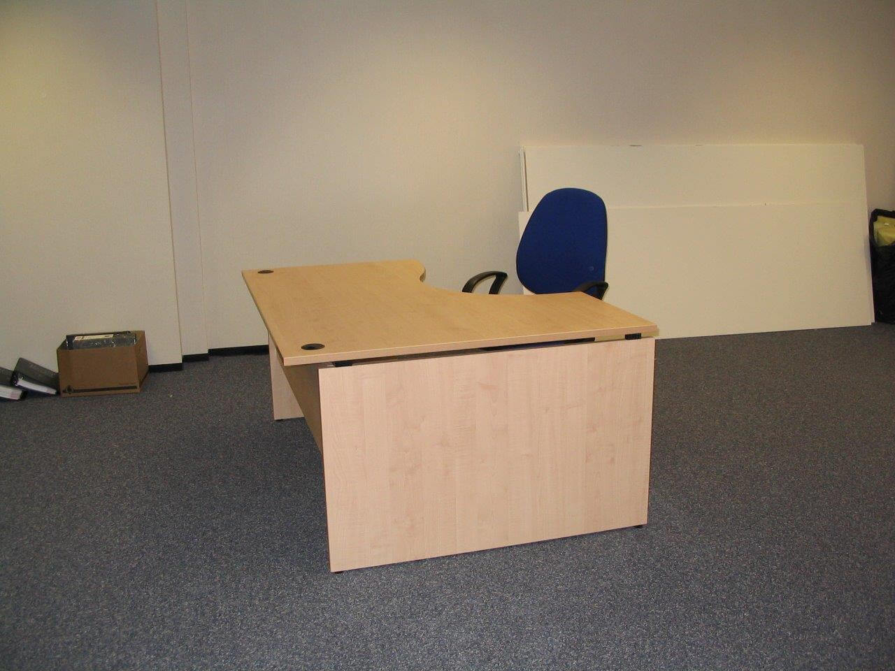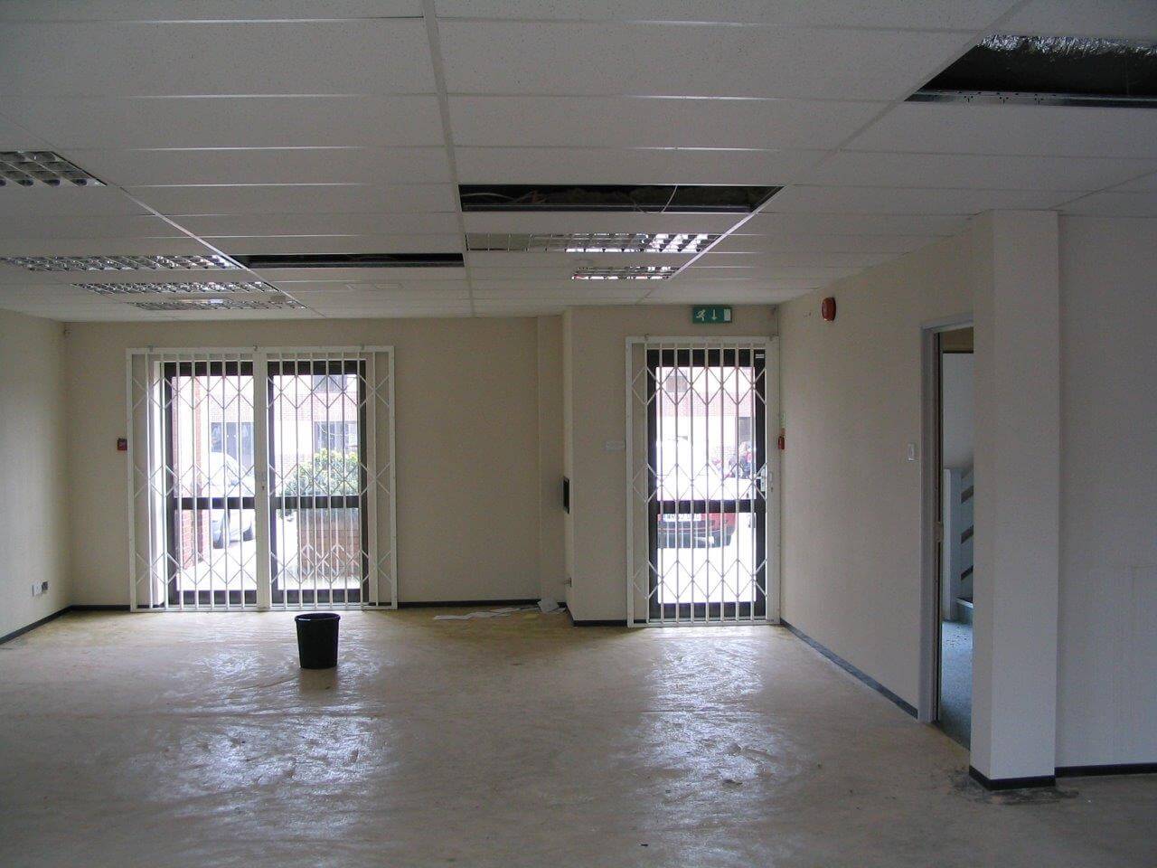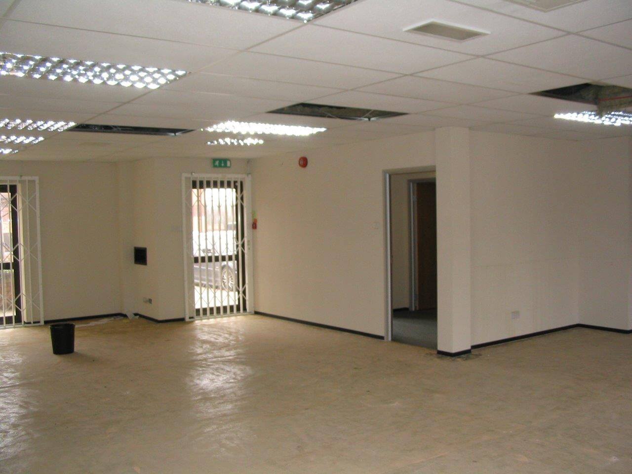 The system is 100mm wide with 4 layers of plasterboard for addded sound insulation. We also had to re-route the ventilation grills to suit the layout and provide the office furniture for the offices which was supplied by Sebastien furniture for business. As you can see from the photographs the design is quiet dated now, using Satin Anodised Aluminium frames and black laminate skirting. More modern designs move away from the black colour and the frames are available powdercoated white or grey, and are in stock. White or grey is the new Satin Anodised Aluminium look.