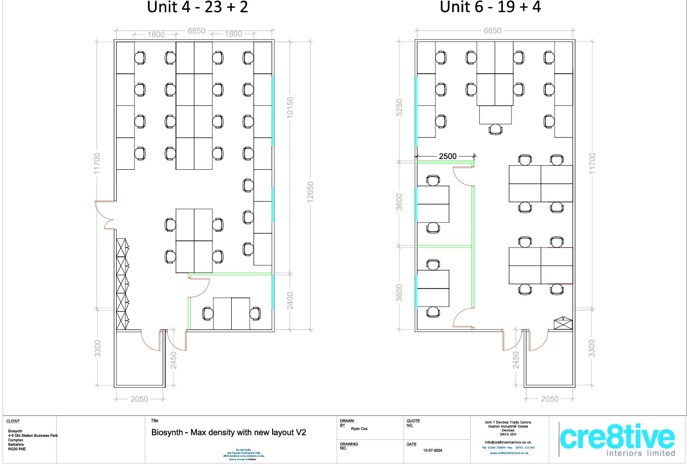 This project required 6 new external windows. We produced multiple layouts for the offices to show staff positions and ensured that the new window positions were mirrored in each of the other industrial units next door.