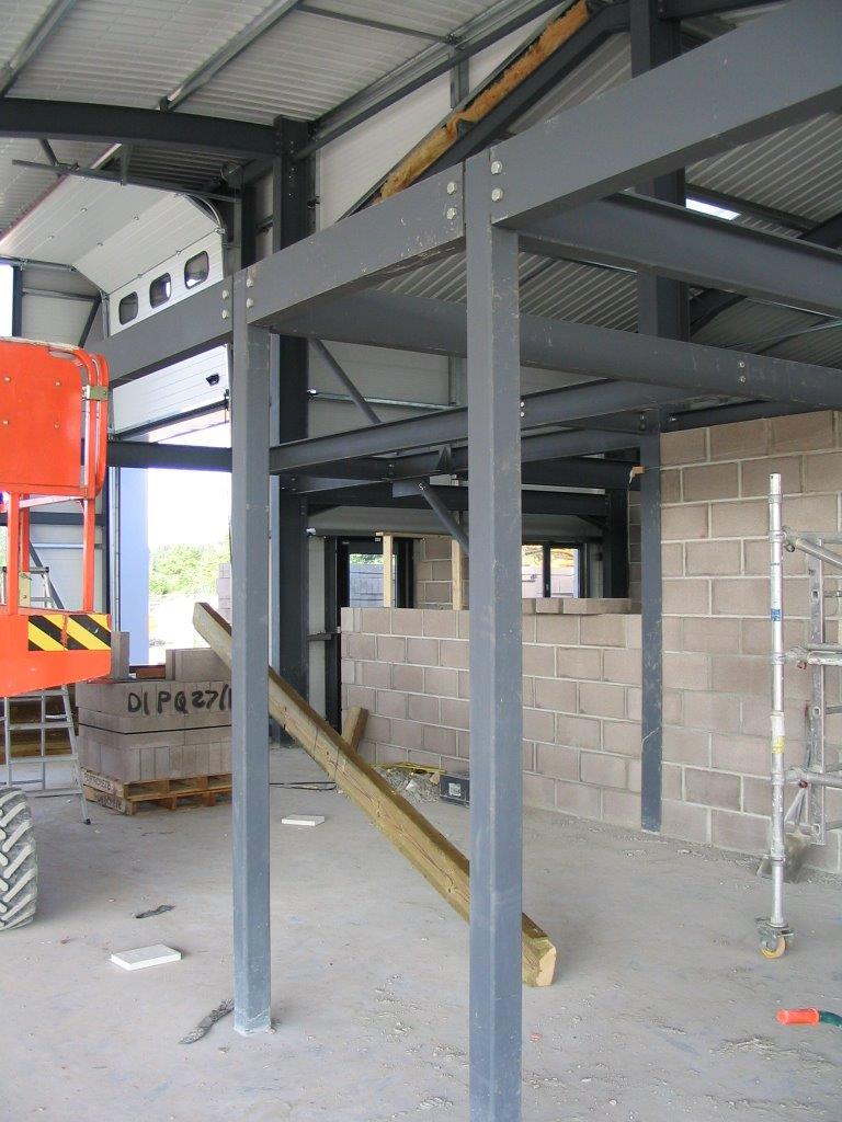 Not shown are the suspended ceilings ceilings that we had to fit inside the offices. The one in the lower offices had to be 1 hour fire rated to give protection to the mezzanine floor. You can also see from the photographs the pink looking plasterboard on the metal columns of the mezzanine floor, this is fire protection board.