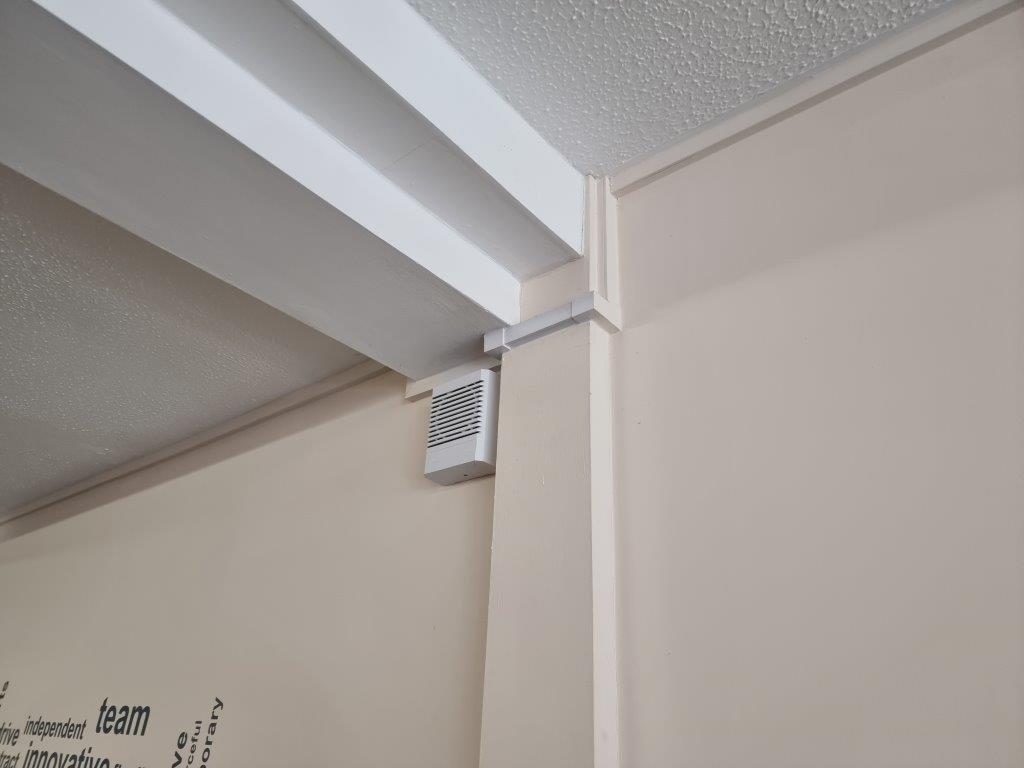 The project has a couple of things which needed to be considered as there is a bulkhead in the ceiling in line with the proposed partition however if the glass was installed on the higher part of the bulkhead it would interfere with the door opening and if it was installed on the lower part of the bulkhead an alarm sounder would need to be moved prior to installation.