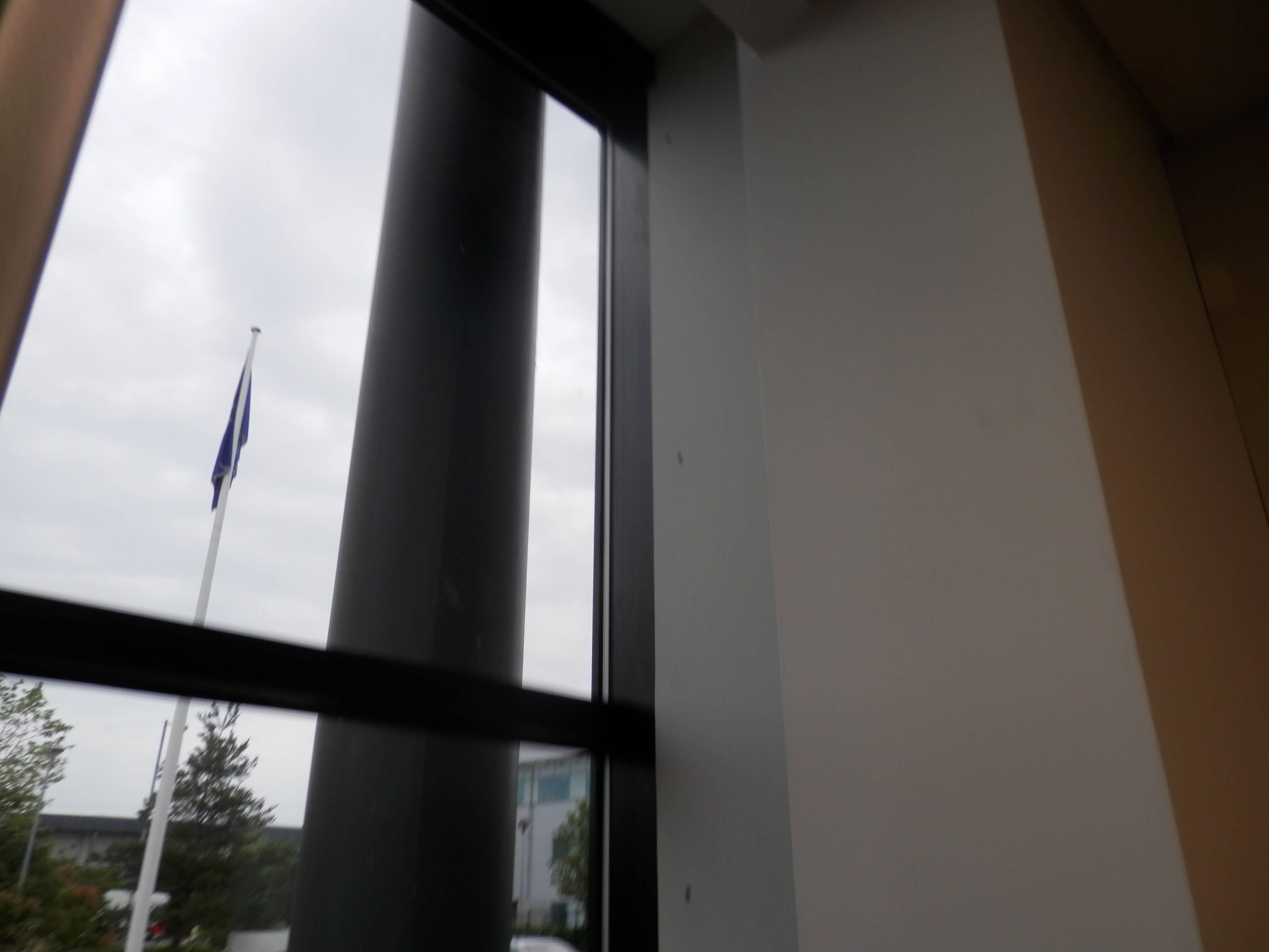 We liked this glass partition system as the frame is slimline, and we joined the existing glass wall without a problem. The difficult bits around the window reveal we just fitted plasterboard so this made the glazing very straightforward.