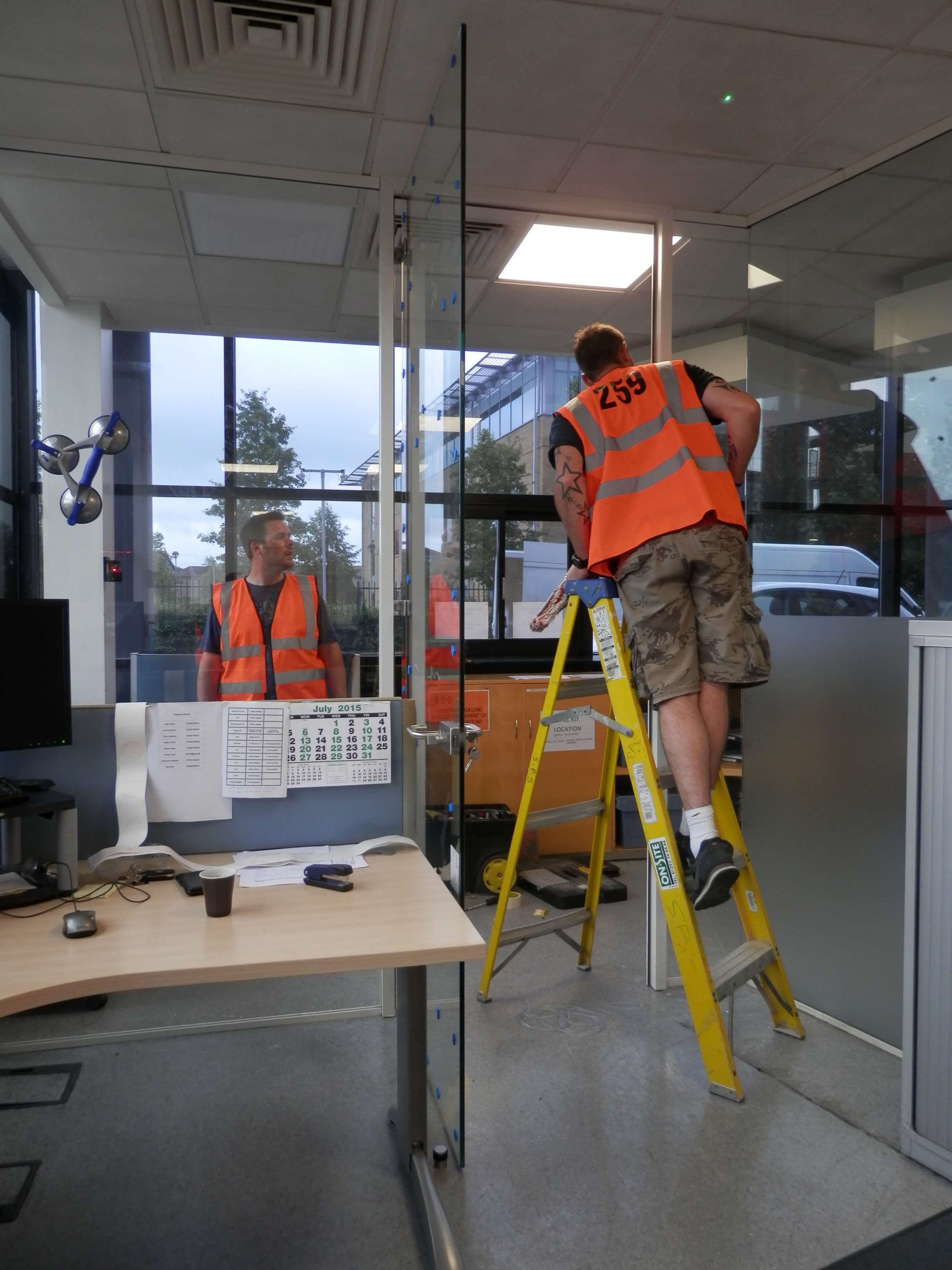 Glass Partitioning construction photographs.