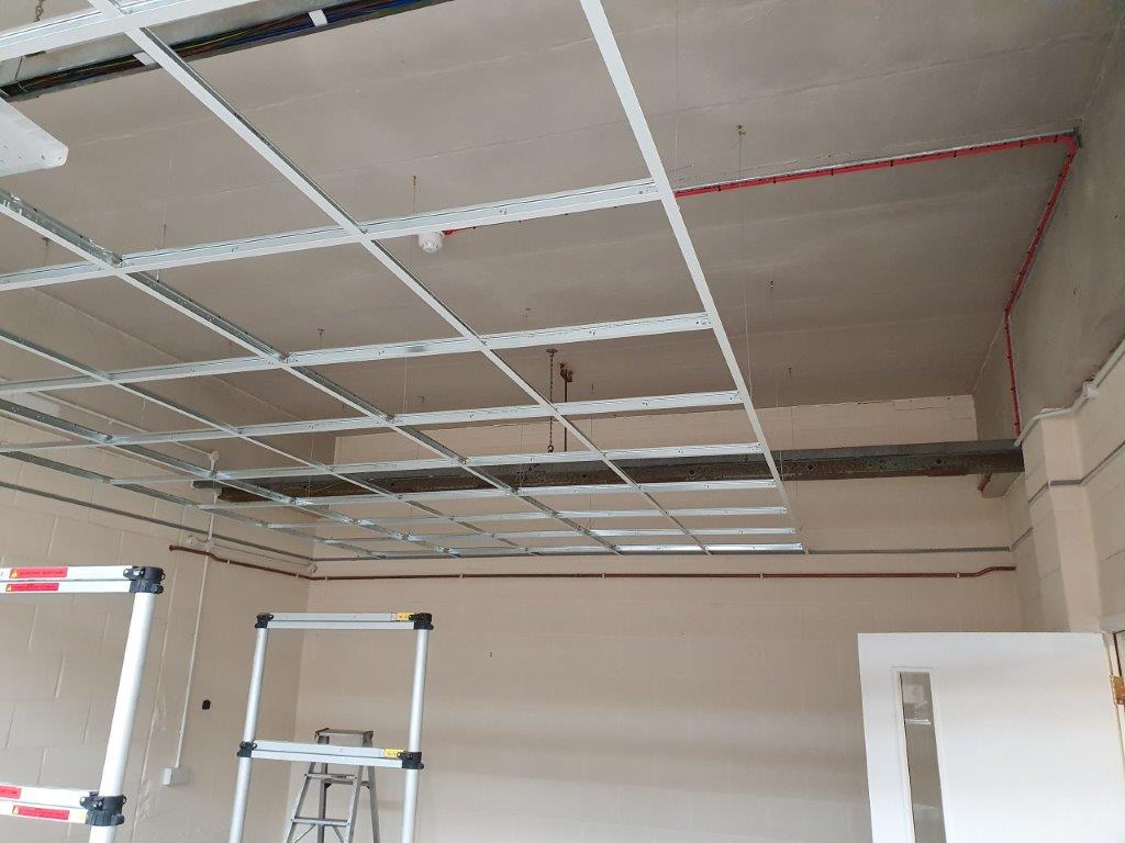The first task is to measure everything and draw it. We always do this so we can accurately work out the material costs without guessing it. Once we have drawn the new grid and determined the new ceiling height the information is sent over to the electricians to carry out a lighting design.