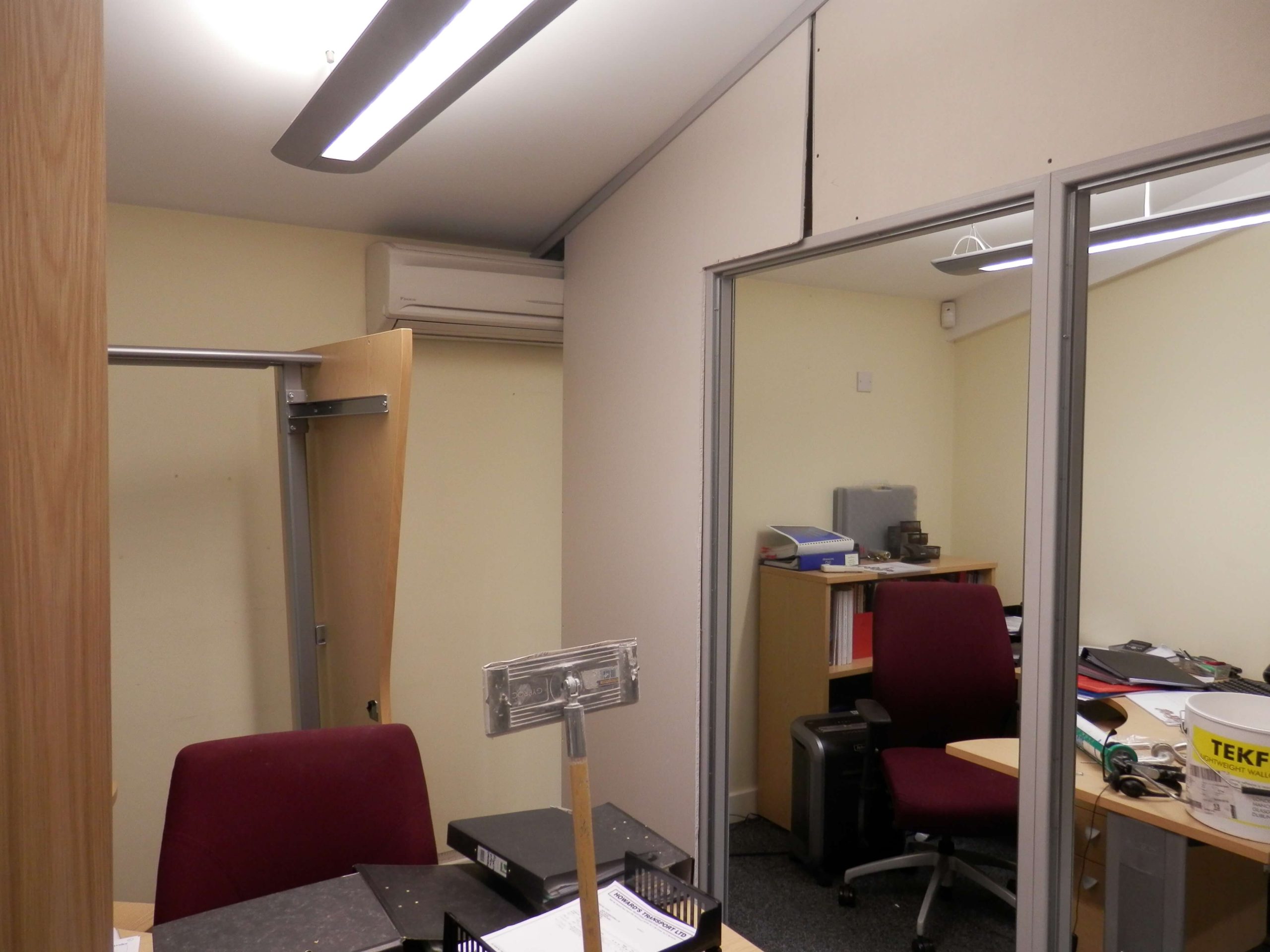 The above photo shows the style of the current offices, the doors were of a particular veneer with vision panels positioned at certain positions so the new office doors had to match making the creation of additional offices very easy.