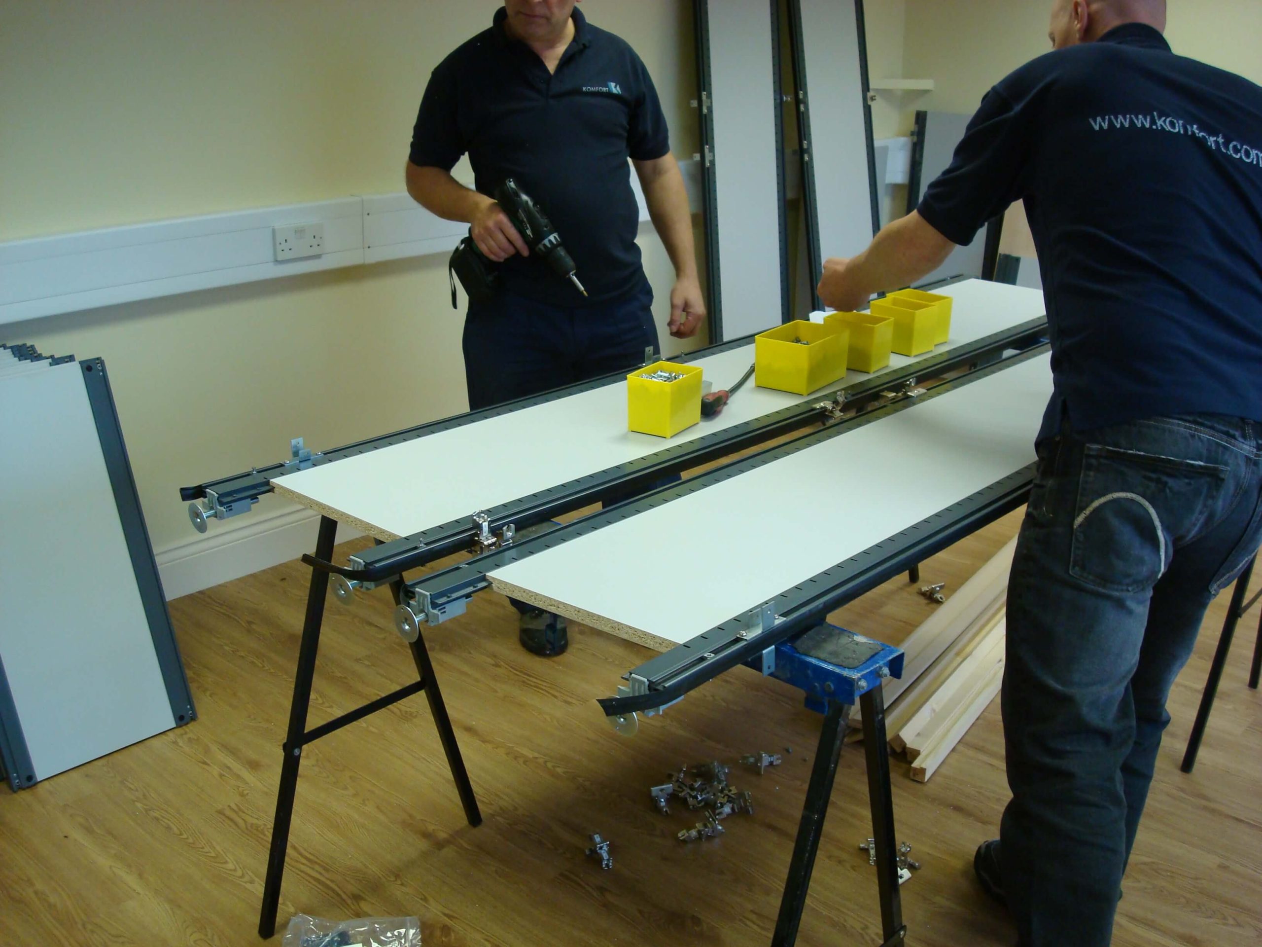 There are several versions available at the moment, most are panel based, so very much like your flat pack furniture product. The system combines the function of a cupboard with a partition wall. So we build it up to the ceiling and as the width is around 400mm the thickness of the wall with the contents gives really good sound insulation. It is still demountable, so can be taken down and rebuilt.