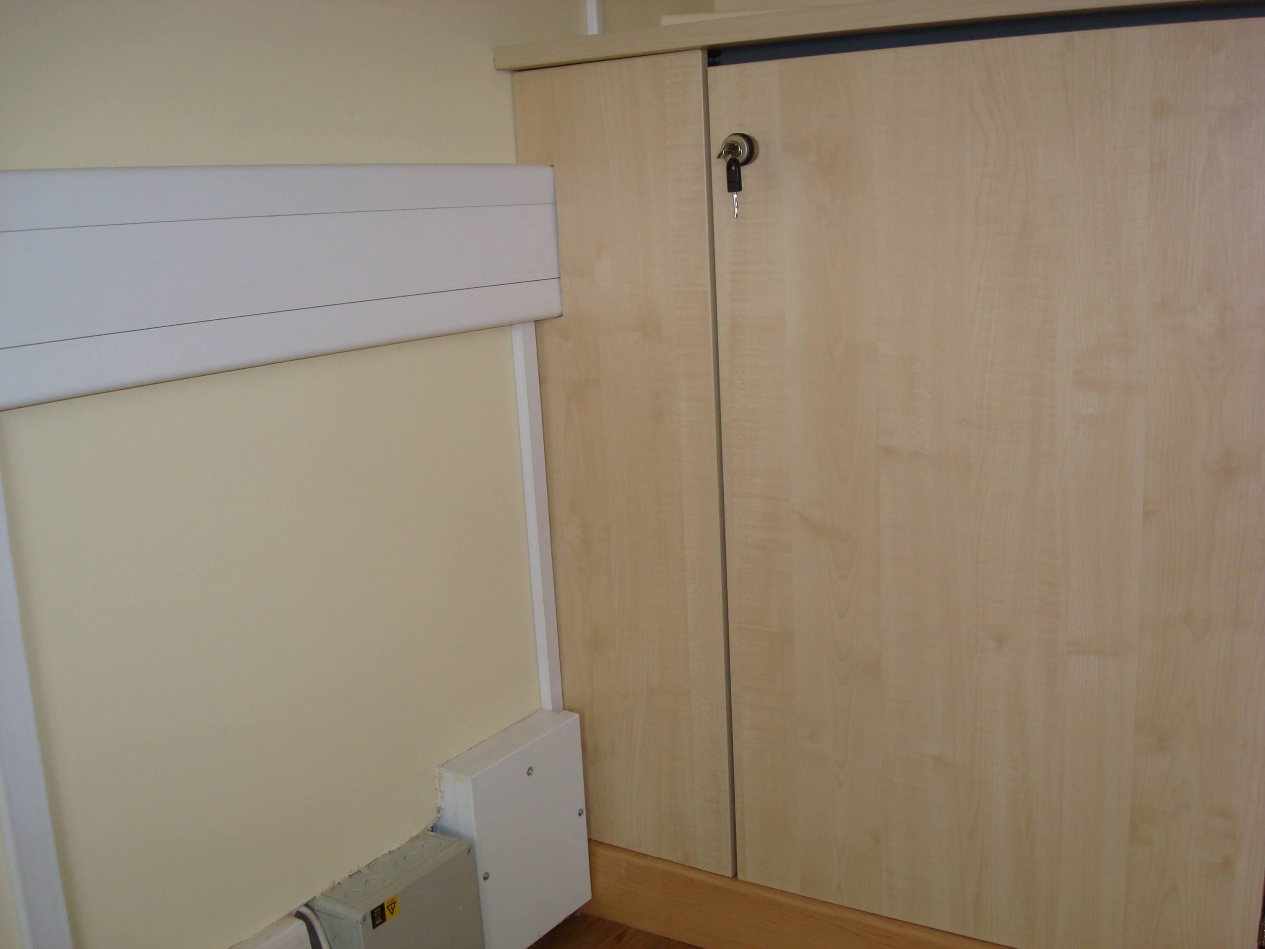 While designing the storage wall we had to take into account that new three compartment trunking was being fitted. Therefore we offset the cabinets from the wall and built in a 300mm wide panel to allow the trunking to go behind.