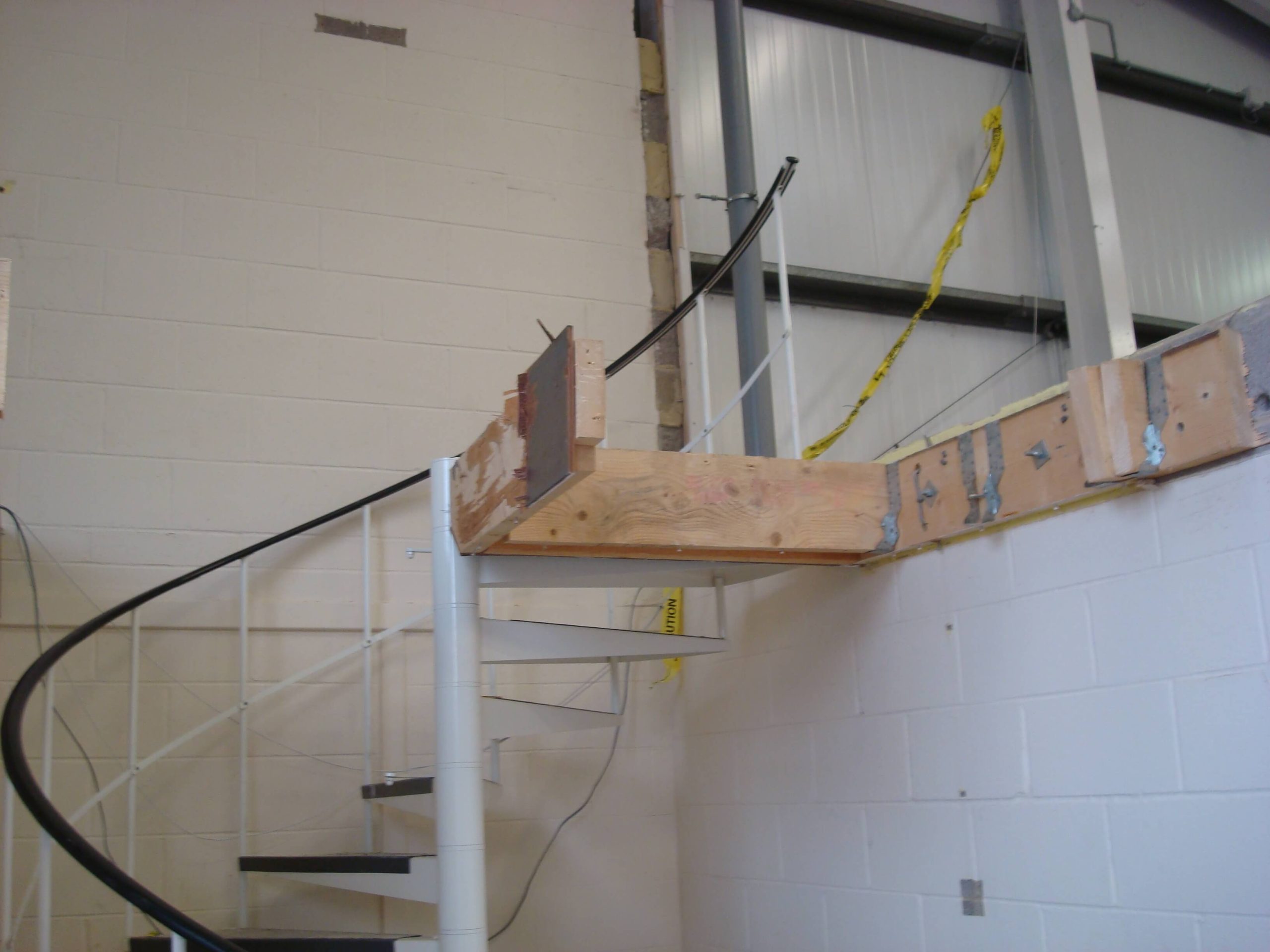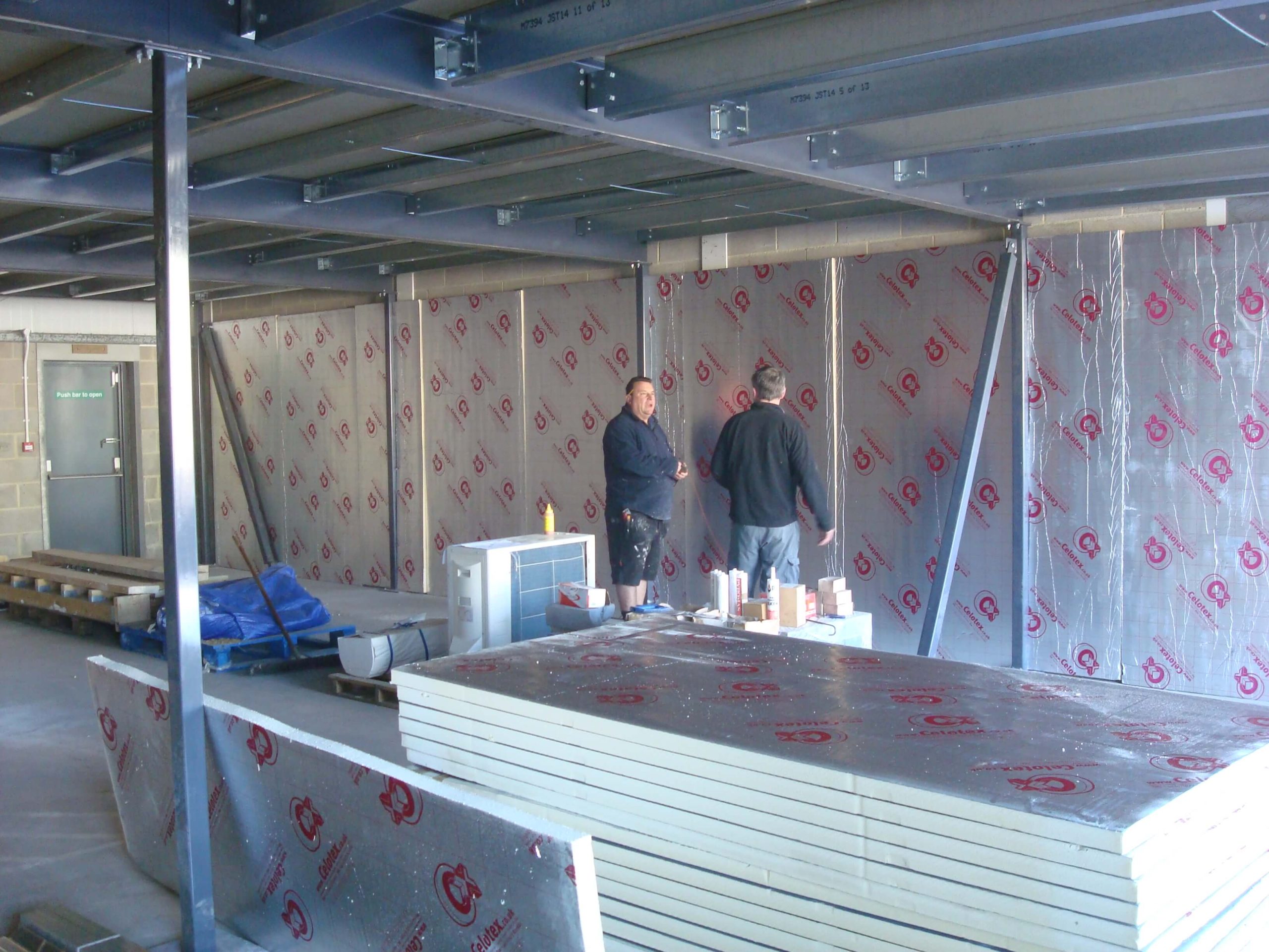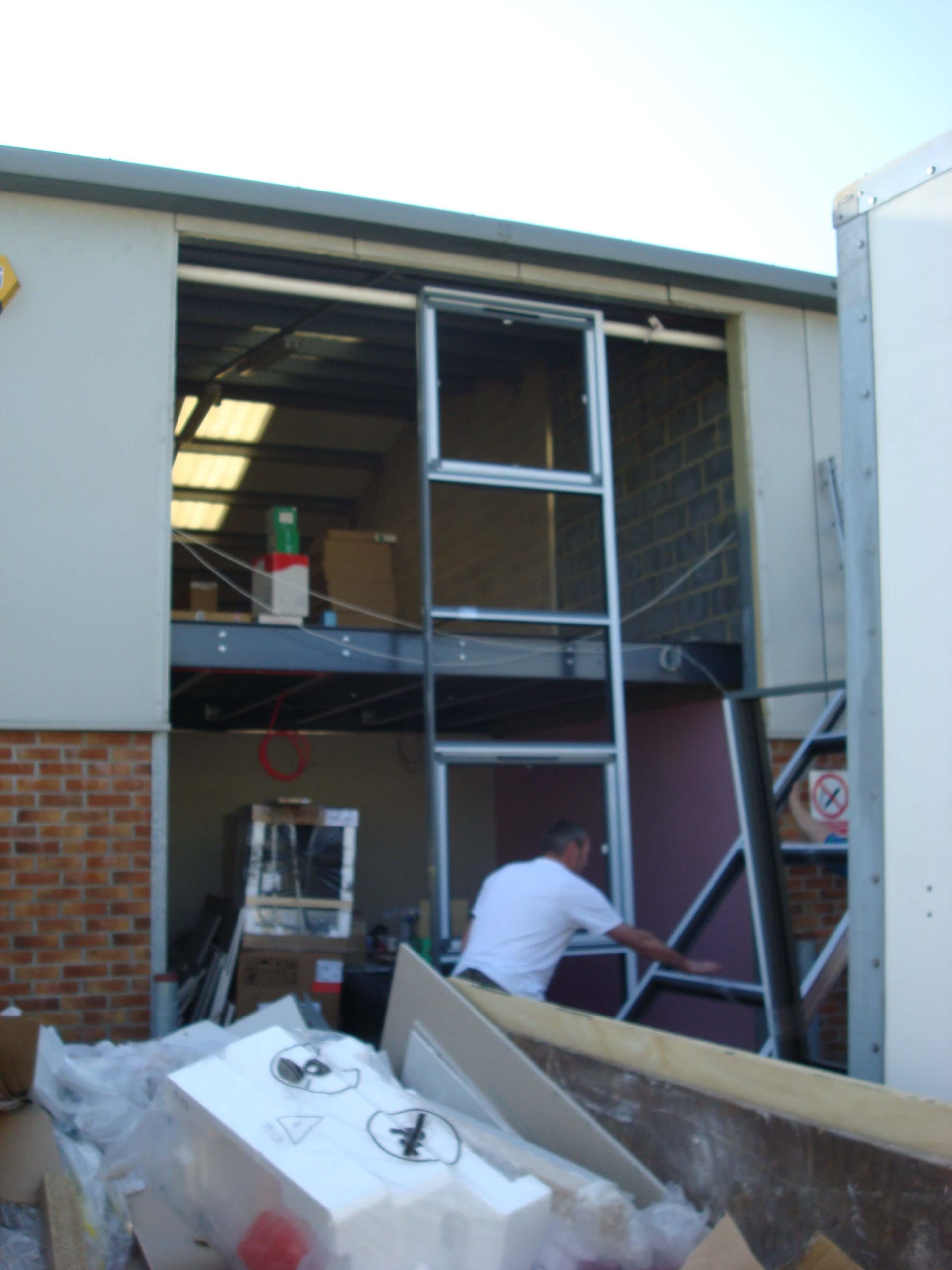 We used demountable partitioning for the offices upstairs and downstairs for a few reasons, the first is that is is easy to reconfigure if you want to change it, and one of the other main benefits is that it can be leased and treated as a ‘moveable item’ as well as the mezzanine floor. The mezzanine floor itself is fully self supporting and not fixed to the fabric of the building so is also ‘demountable’. It could be unbolted and then re bolted in the car park outside if needed.