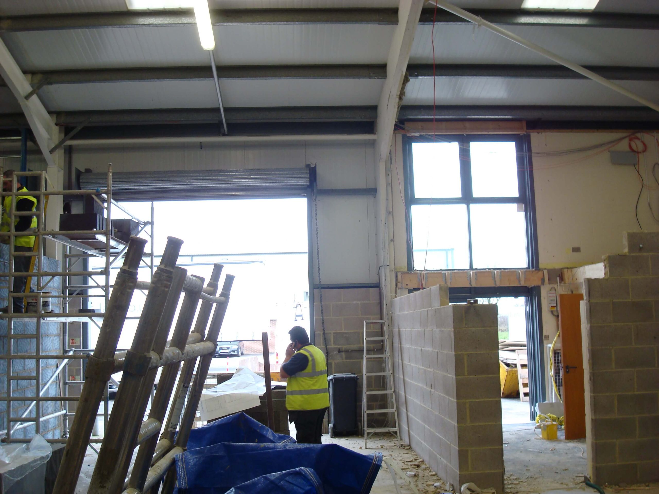 Cre8tive Interiors completed an office refurbishment fit out project in Gloucester. The original building consisted of an occupied warehouse with a split level floor and block walls which needed to be converted to offices. We are calling this project a refurbishment project, it involved taking an industrial unit and changing it (refurbishing it?), and then fitting out the inside to provide a complete office space by fitting a mezzanine floor inside. So it is probably a mixture between a refurbishment project and a fit out project.