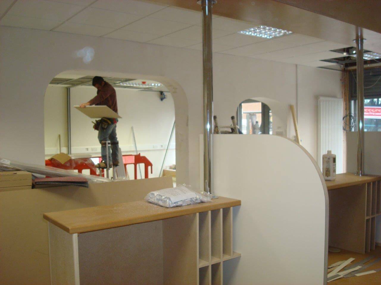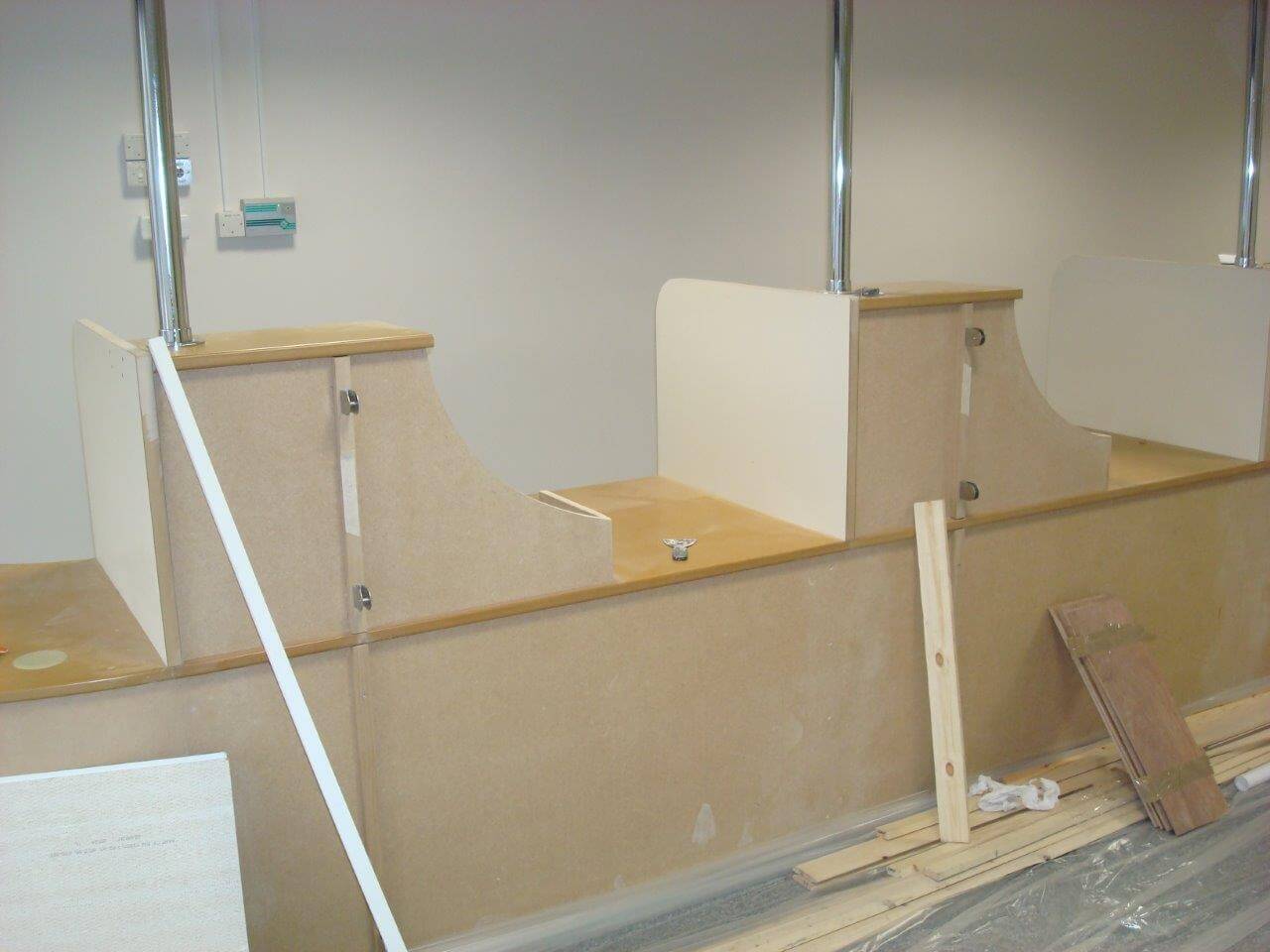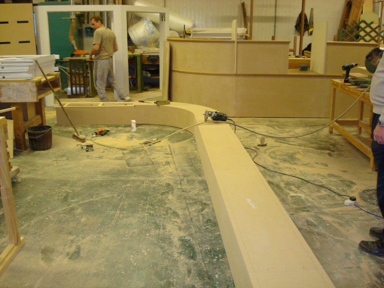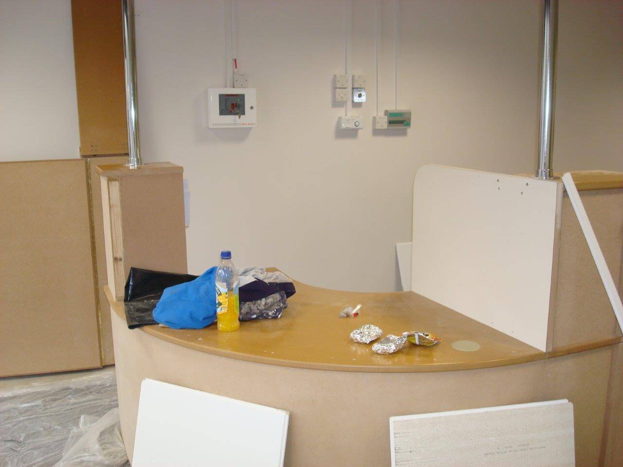 The way to make this size of reception desk is to make it off site in the workshop and then assemble it on site.