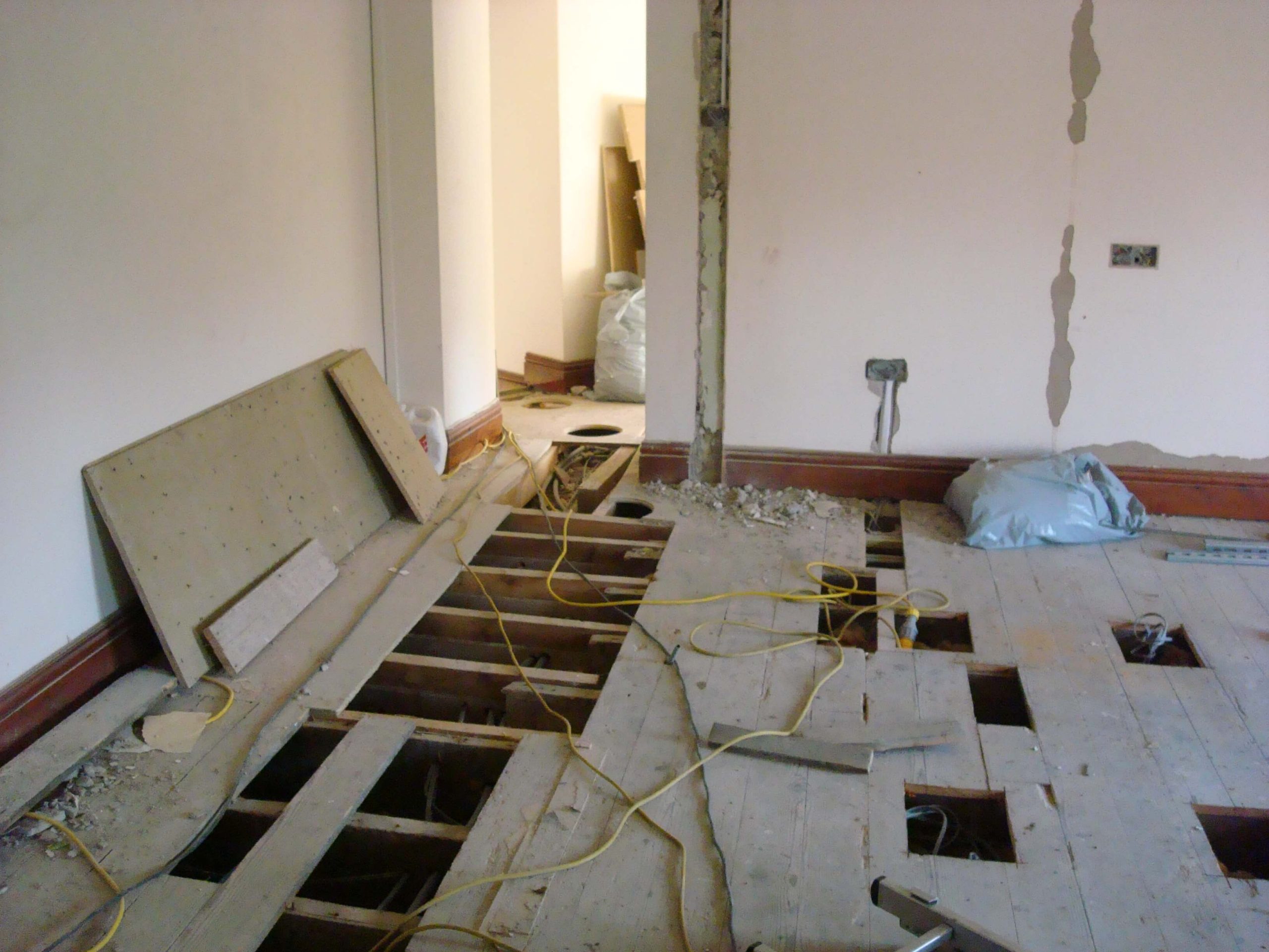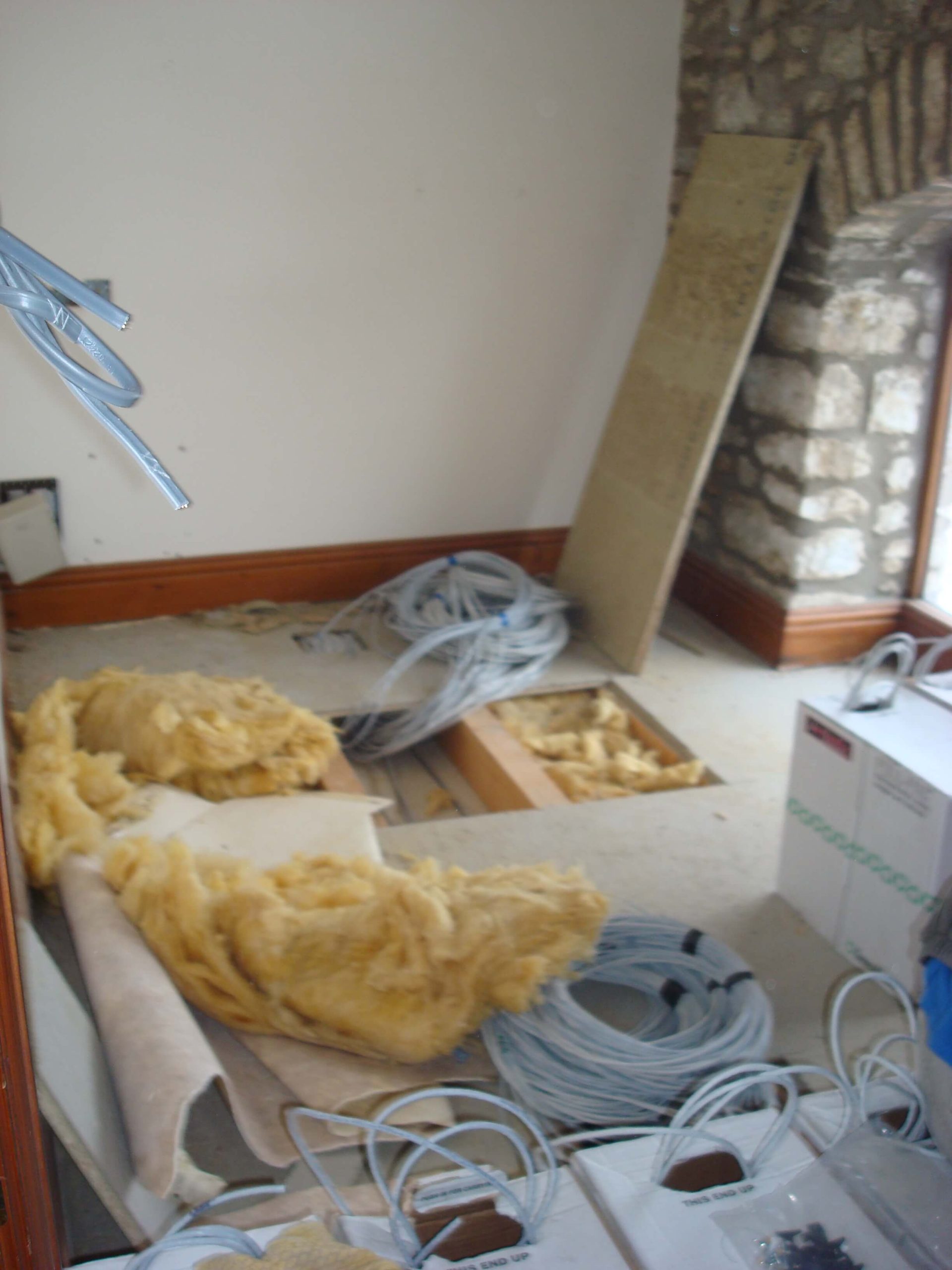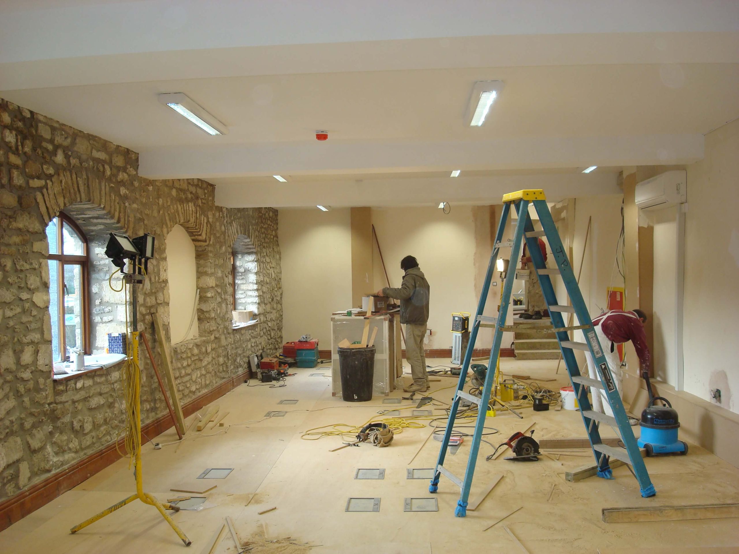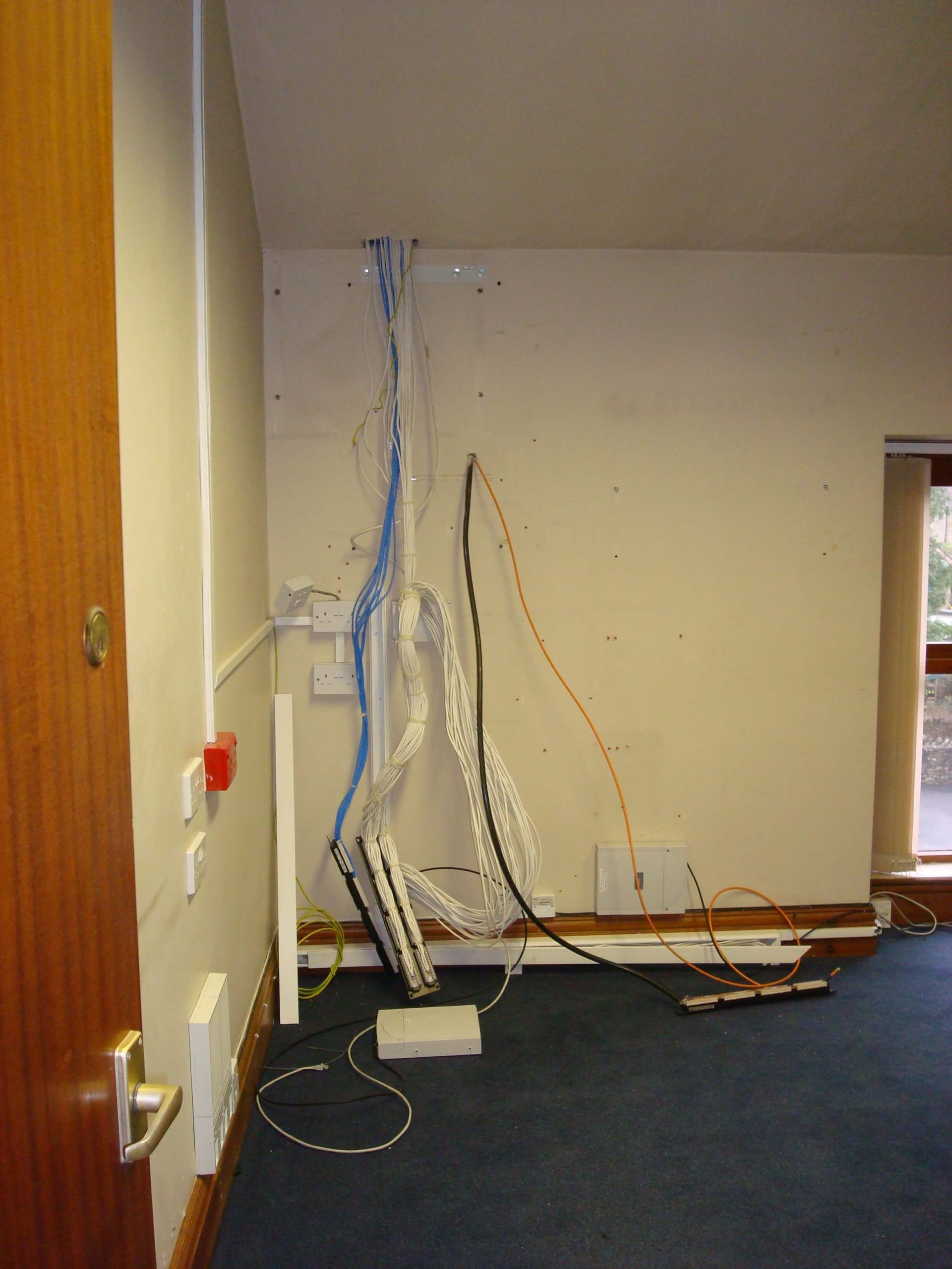 Cre8tive was asked to tender to carry out an office refurbishment in a 3 storey building in Shepton Mallet. Having successfully won the project, the next problem was how to carry out the work in a relatively short space of time, over the winter months with snow on the ground and no heating until the air conditioning was commissioned. The building was not a traditional office, in that there were no suspended ceilings (and not the height to fit any), and no raised floors, and the customer wanted lots of walls removed as well as fitting CAT6 cable into floor boxes in all of the floors.