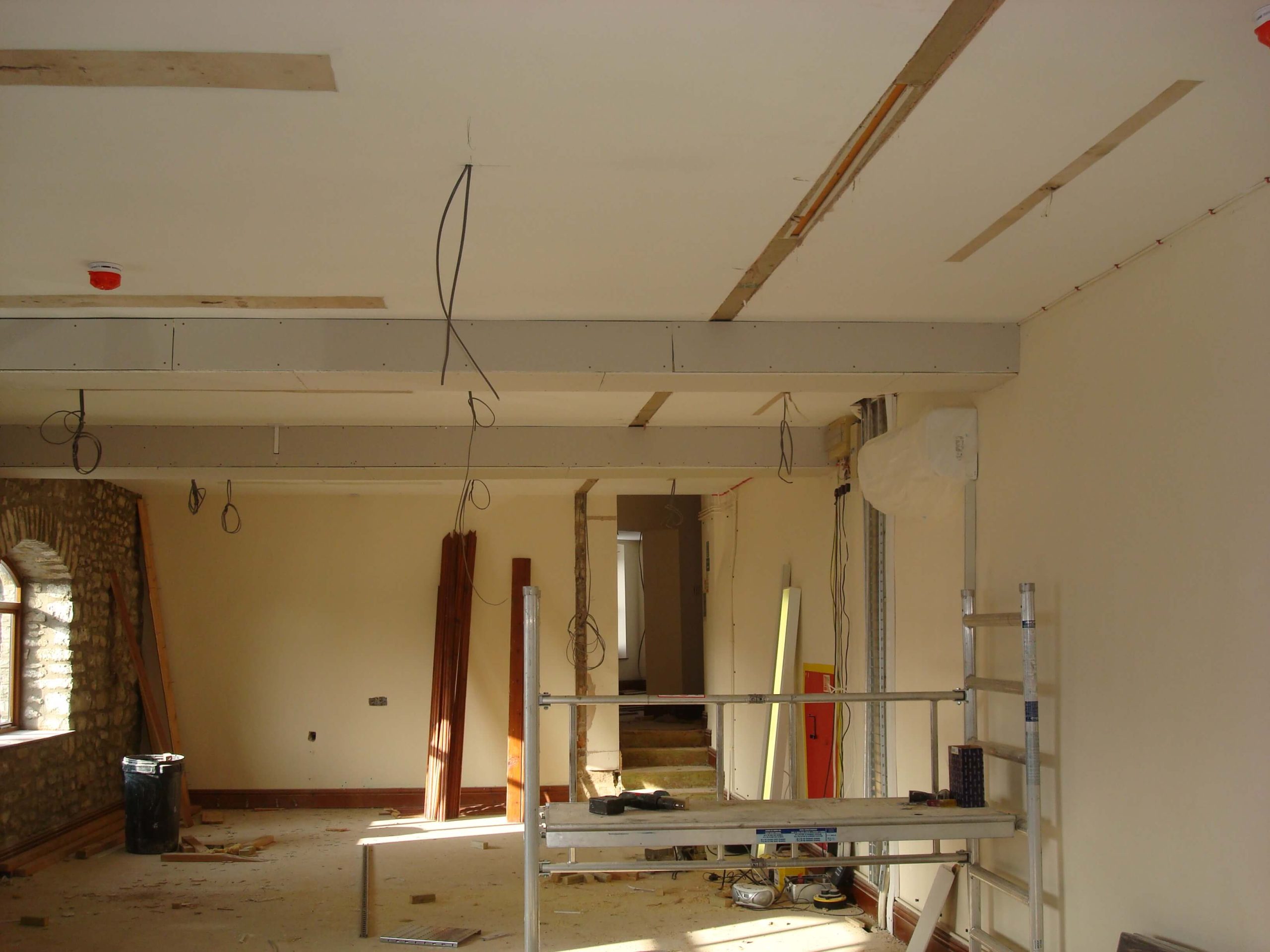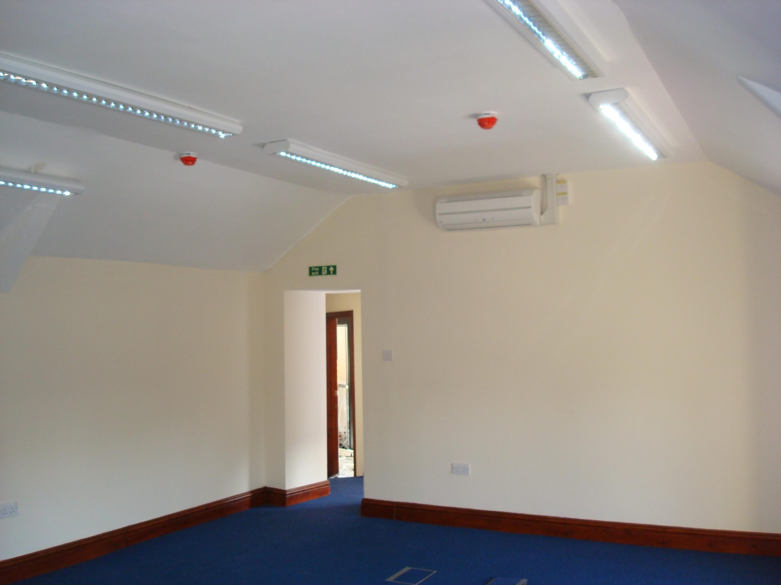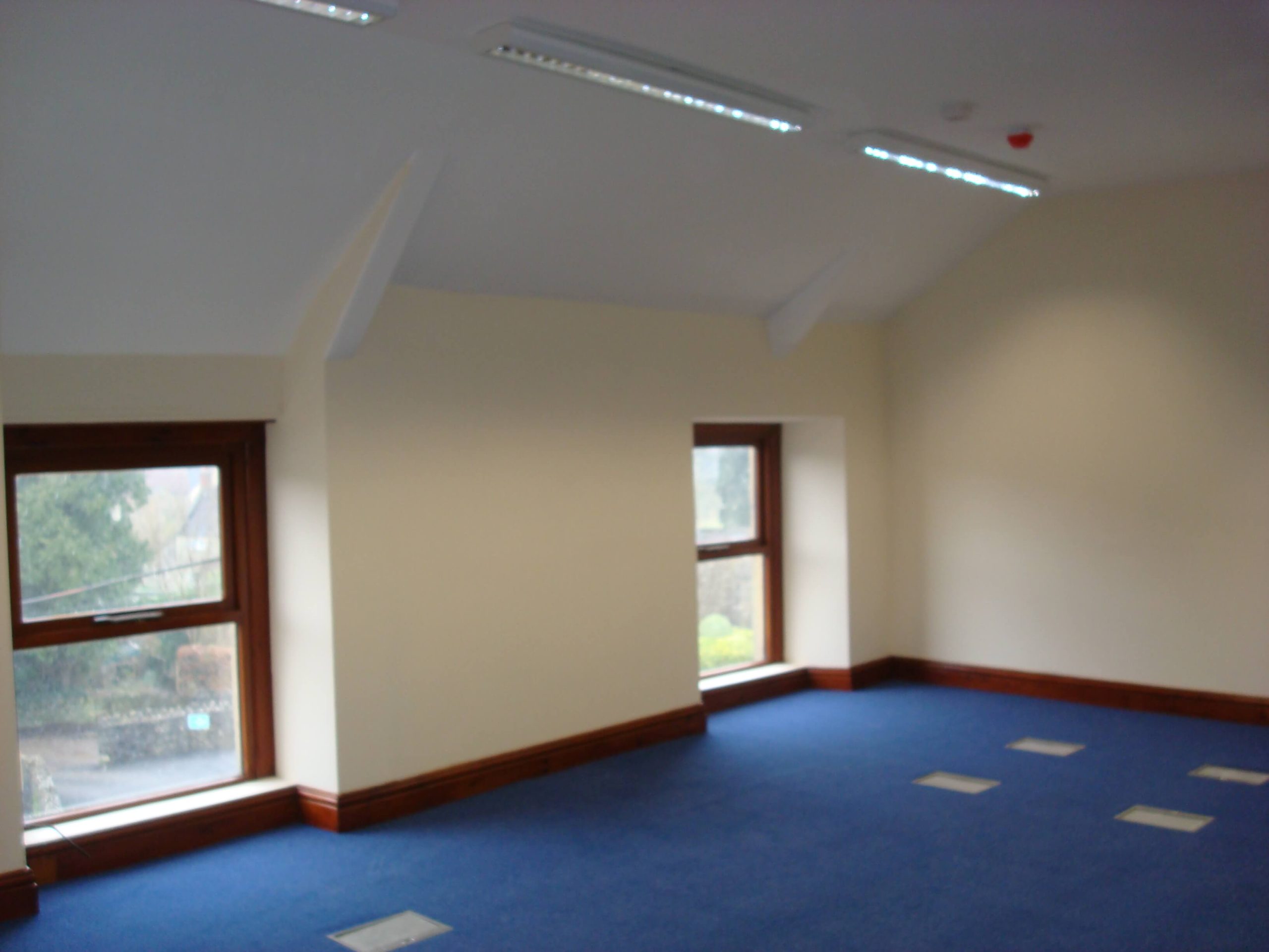 One of the difficulties was that the work had to be carried out in the winter months and without any heating until the air conditioning system was installed it was freezing on site. We had heaters but you cannot have the heaters on too much as it would dry out the plaster too quickly causing cracking. The paint also did not dry out properly so it just made the project much more difficult to complete. We also had snow to contend with and we lost several days as the guys could not get into work. We did finish the project a week early allowing the customer some more time on getting the IT equipment in.