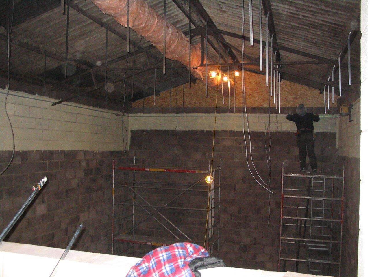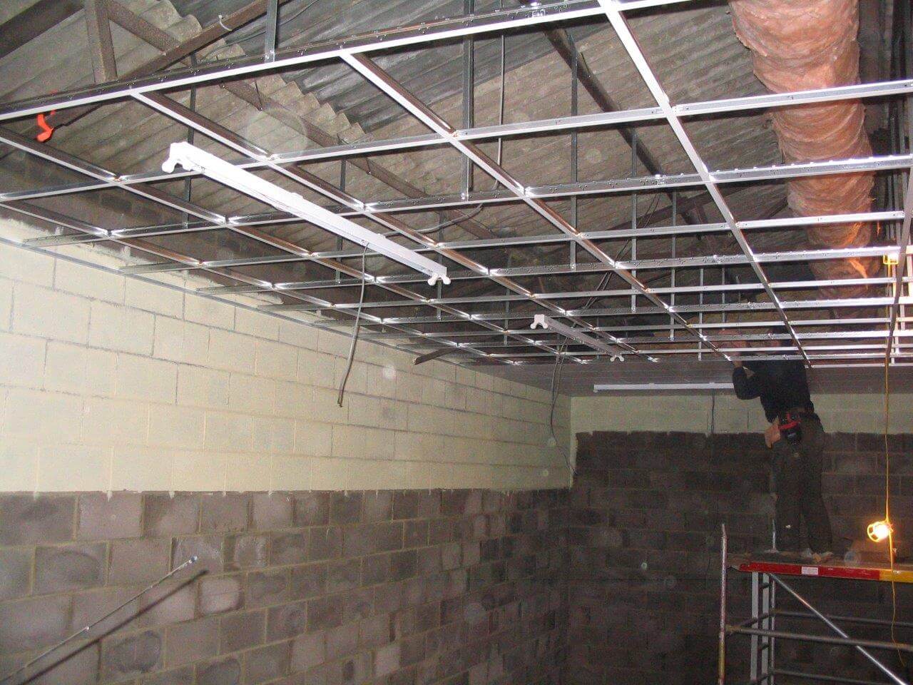 The difficulty with this suspended ceiling project was that all of the work had to be carried out off two mobile towers as the ceiling was for a squash court. The tiles had to be plasterboard tiles for robustness, and the tiles had to be clipped into the grid so that they did not move. The grid was also suspended from rigid hangers rather than wire to make the ceiling as rigid as possible. Many people think that anyone can put up a suspended ceiling but there are only a few that can do it properly, we see many suspended ceiling projects which have sagged and you can see dips in the ceiling.