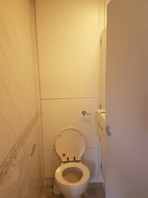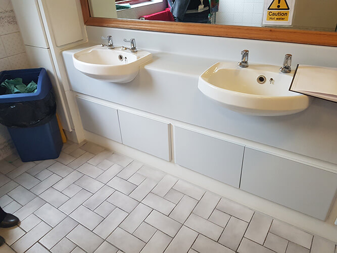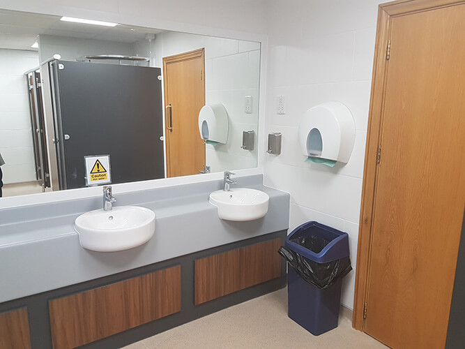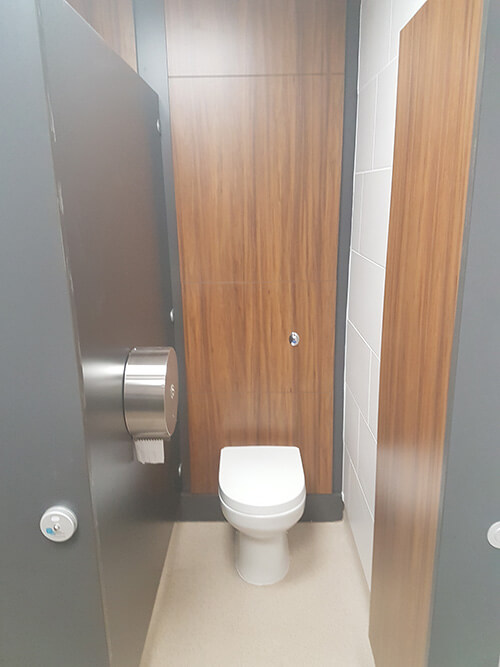 The toilet refurbishment incorporated everything from a new ceiling and LED lighting down to new easier to clean anti-slip vinyl flooring.