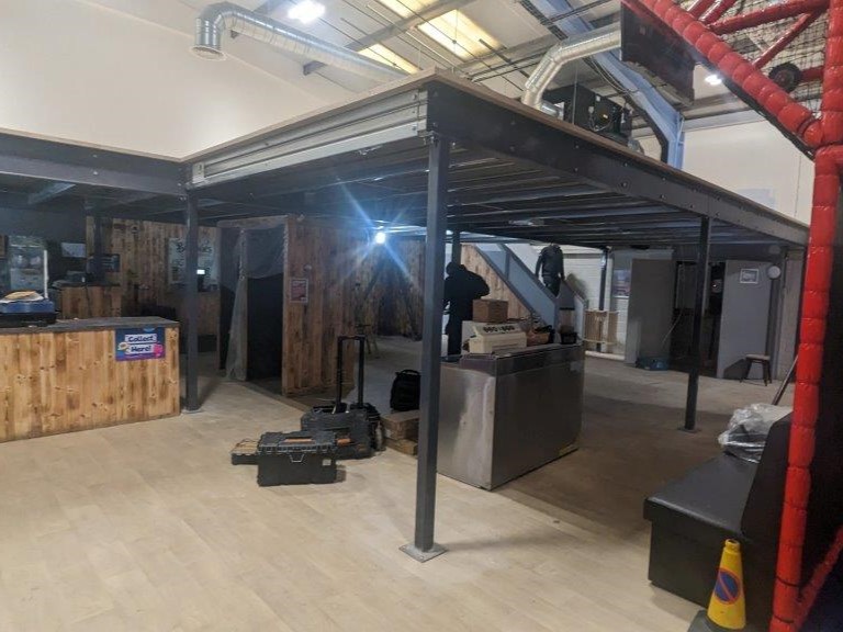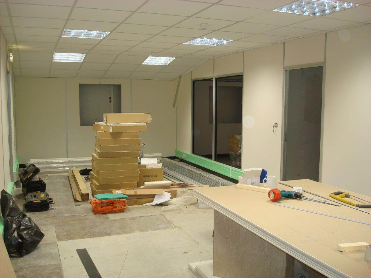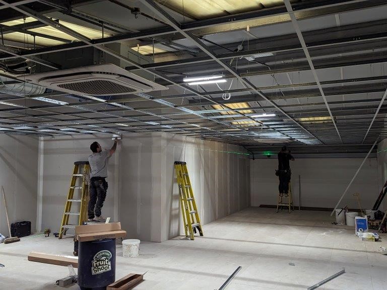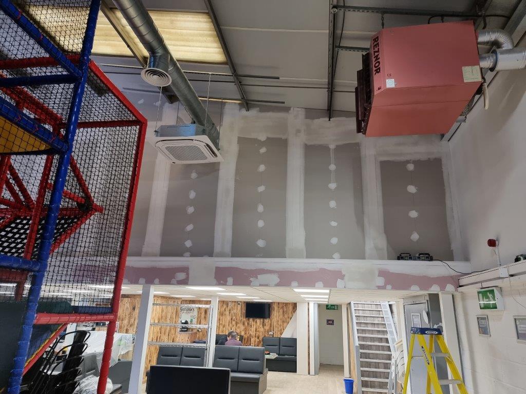 Please find below some construction photos. We needed to ensure that the mezzanine floor was 1 hour fire protected and as mentioned previously, we carried this out using 15mm fireline board, boxing all of the columns and the edges of the mezzanine floor.