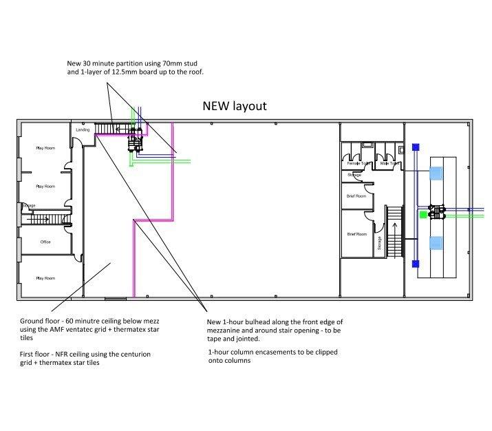 The main stipulation from the Fire Inspector is to make sure that the mezzanine floor itself is fully 60 minutes protected. There was no stipulation on the walls, but we would normally fit 30 minutes anyway, and the Inspector was happy with that.