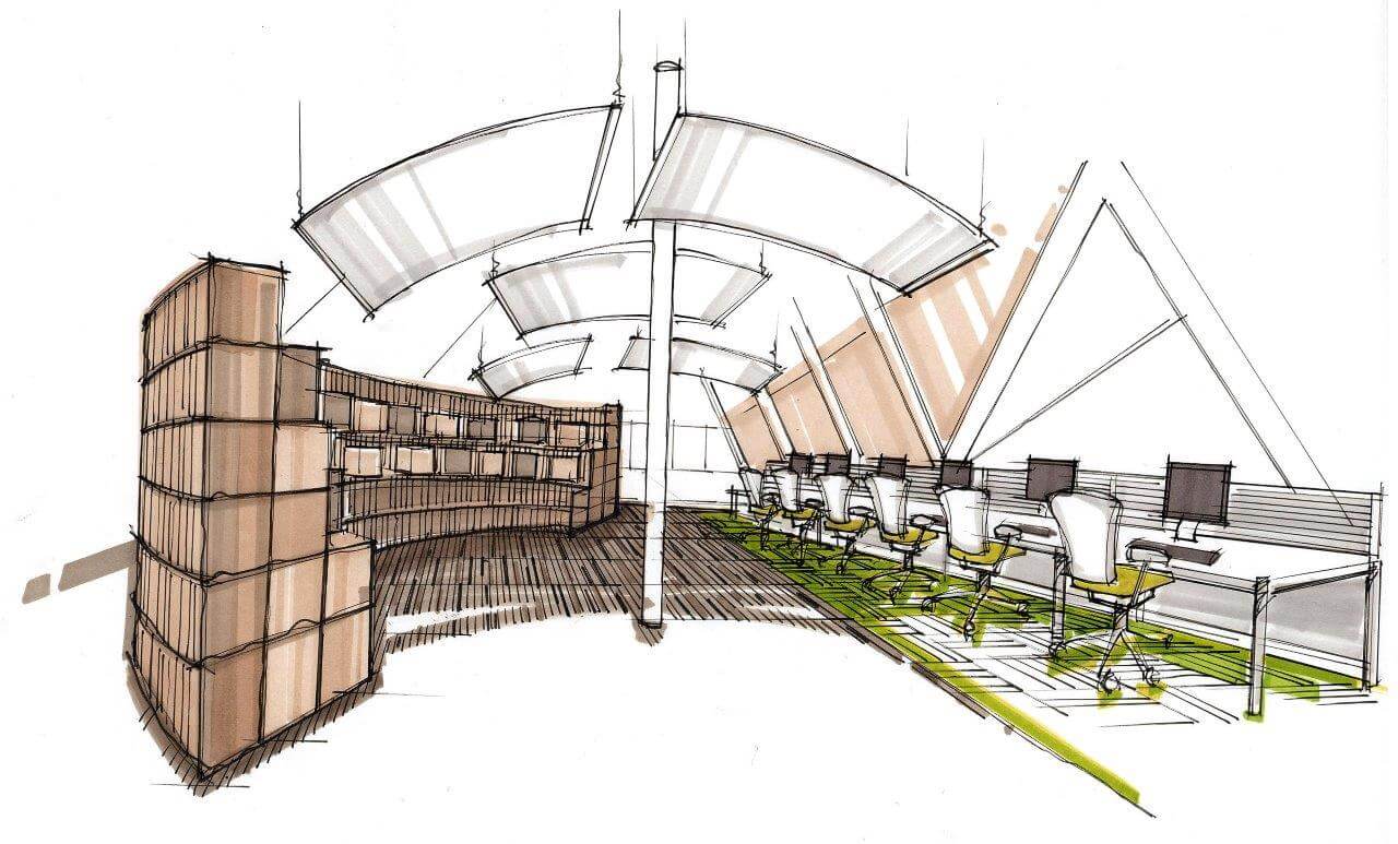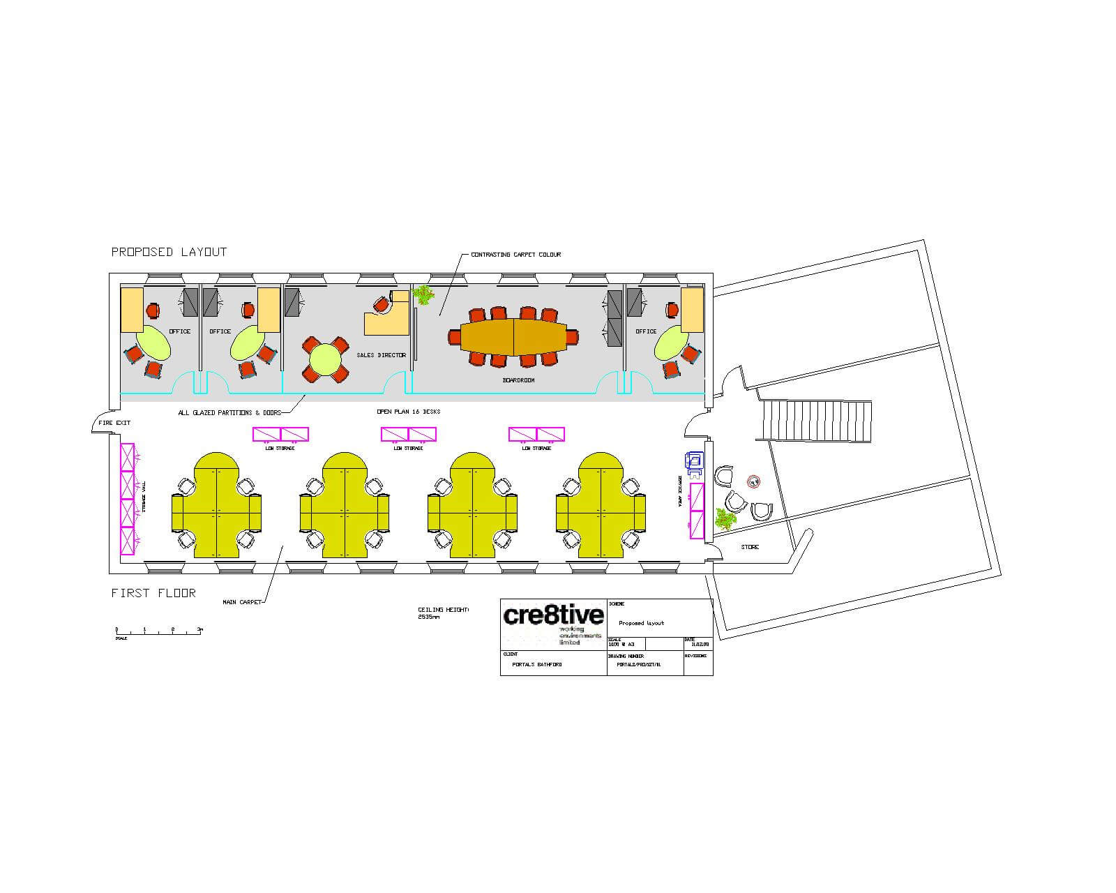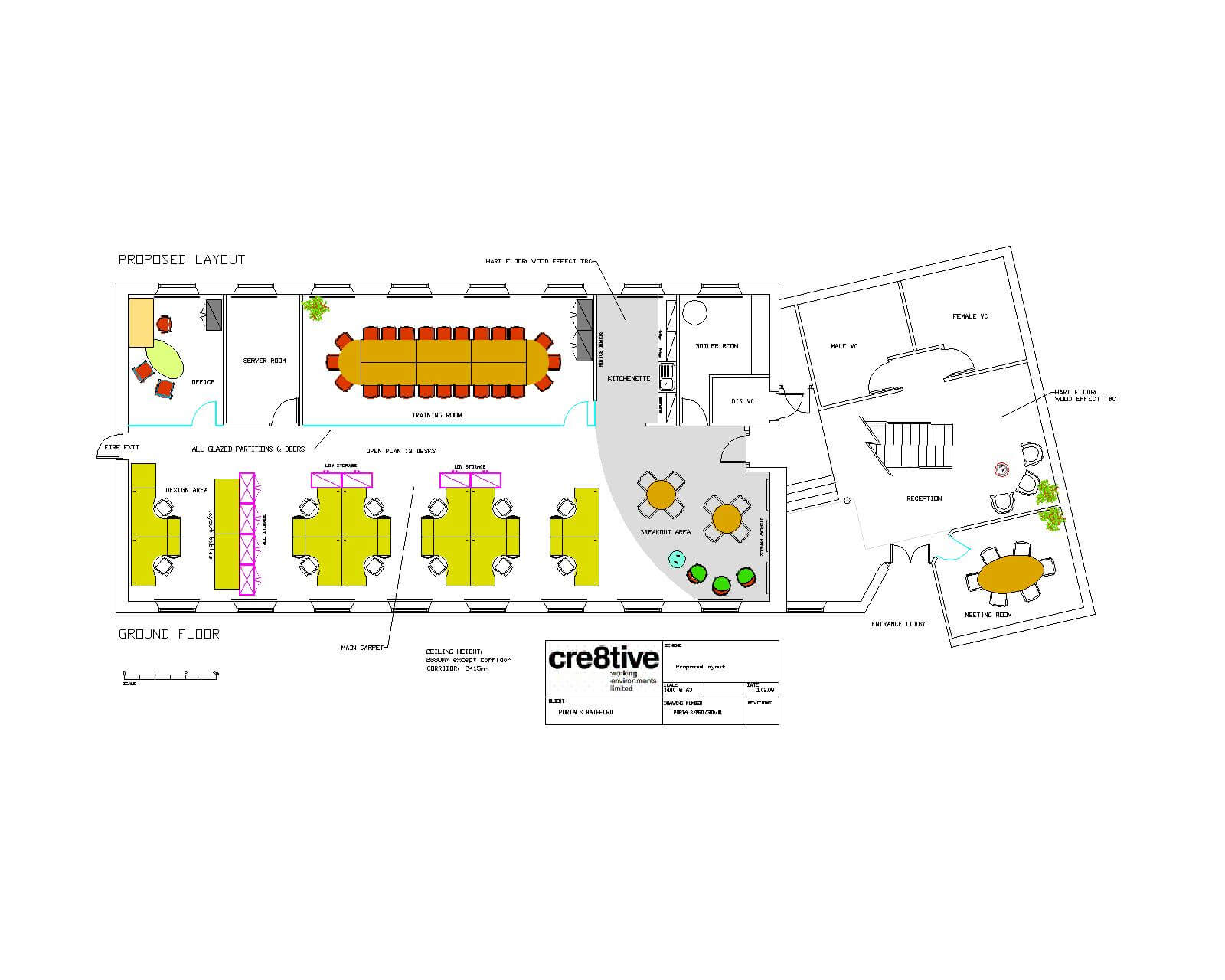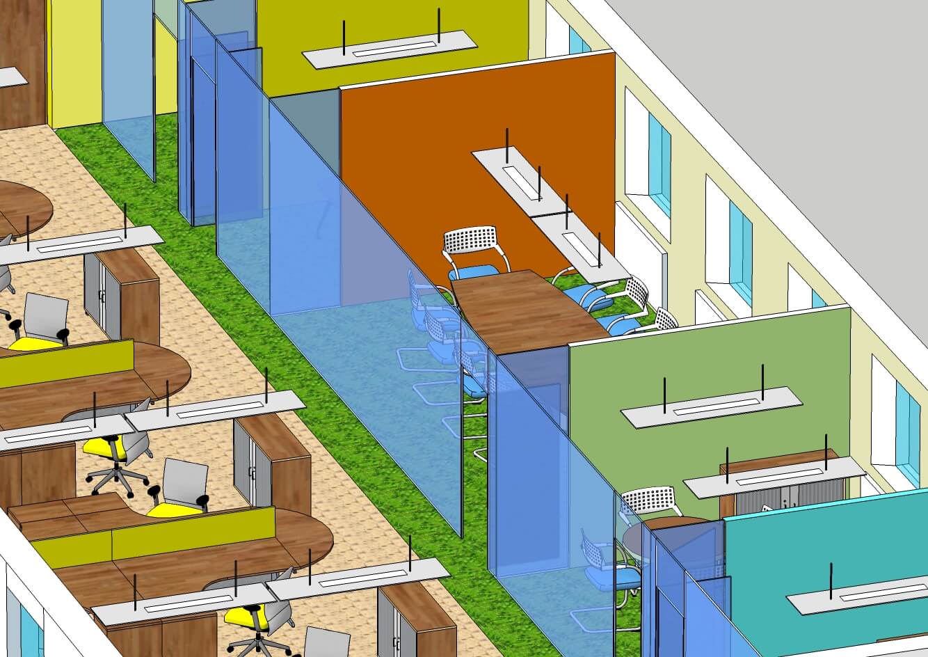 Space planning is the process of designing office layouts to optimise structure, lighting, air flow, HVAC, acoustics, communications, storage, and user comfort while ensuring compliance with building regulations. Cre8tive uses CAD visuals, storey boards, and 3D sketches to help clients visualise and refine layouts based on budget and practical considerations.