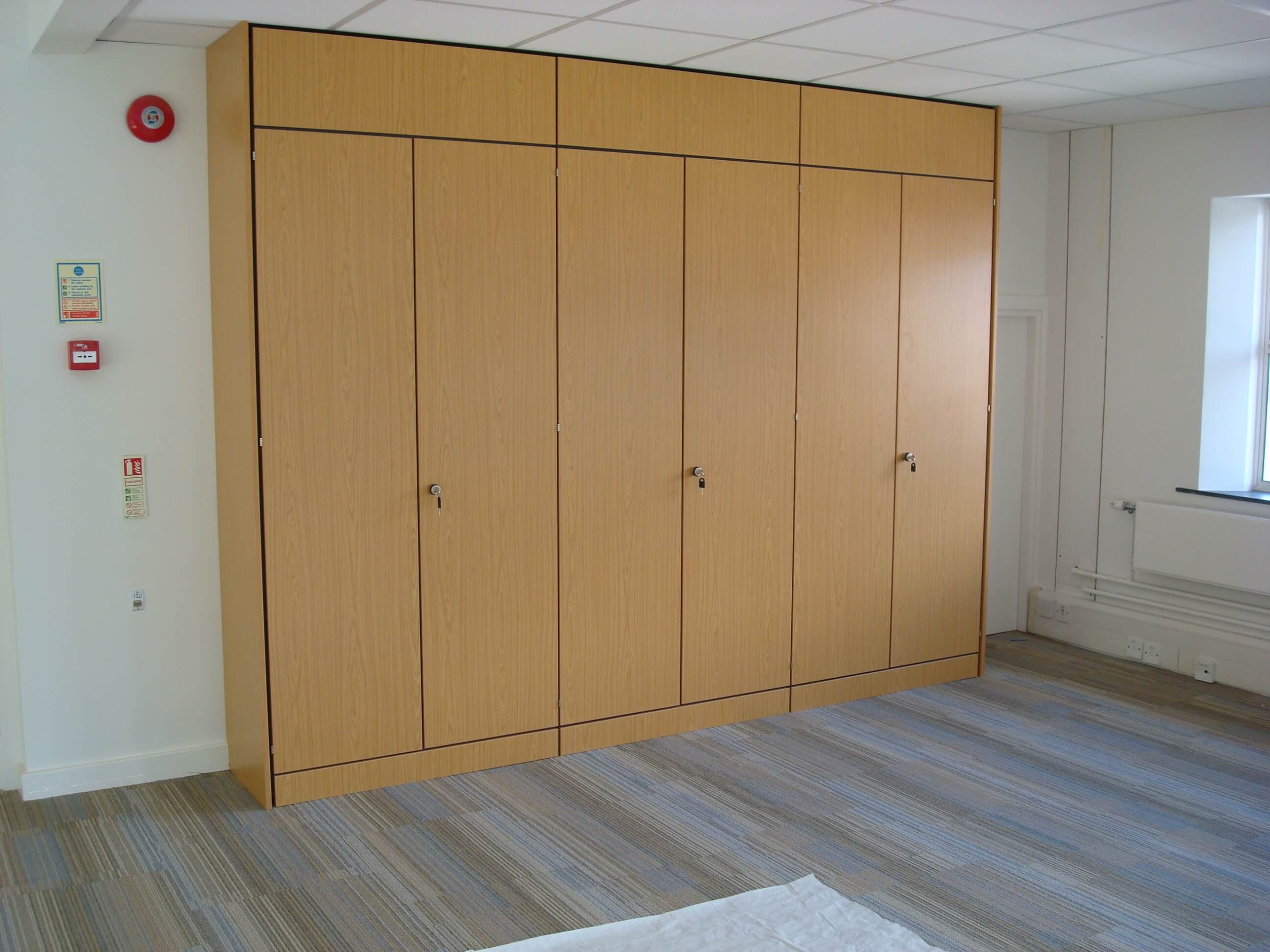Storage wall systems are custom-built wall units that maximise vertical space for storage while maintaining a clean look. They are ideal for offices and shared spaces that need efficient and organised storage.