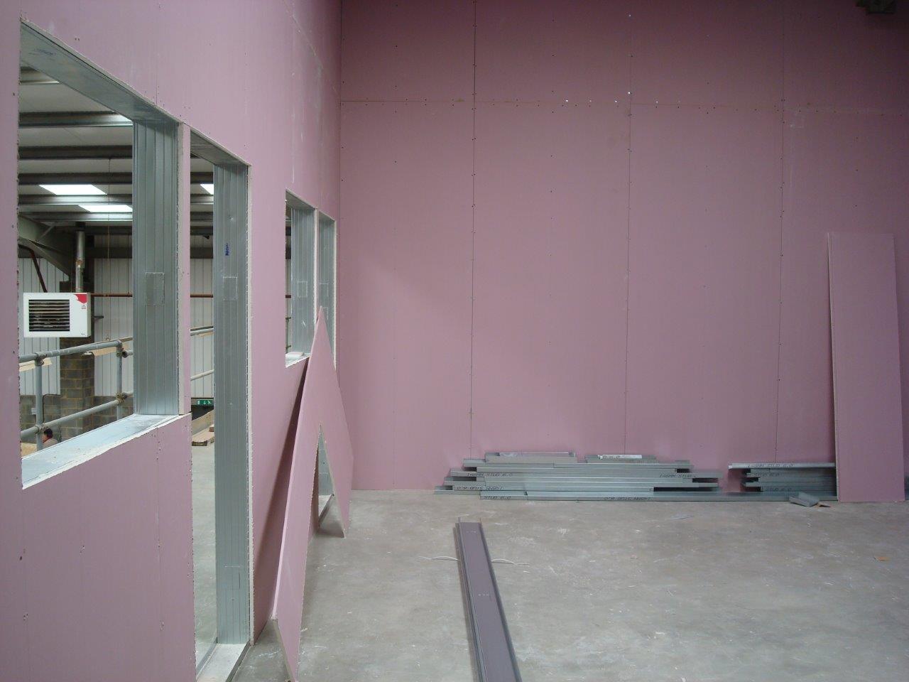This project consisted of converting a storage unit in to office space in order to provide some much needed office expansion. The project would involve fire protecting a mezzanine floor as this is required by Building Regulations if you have offices above, steel work and a suspended ceiling. Ventilation had to be put round a chiller and fire sensors had to be installed within the chiller as it could not be moved to fit the fire protected board. Office windows had to be installed to match the rest of the building.
