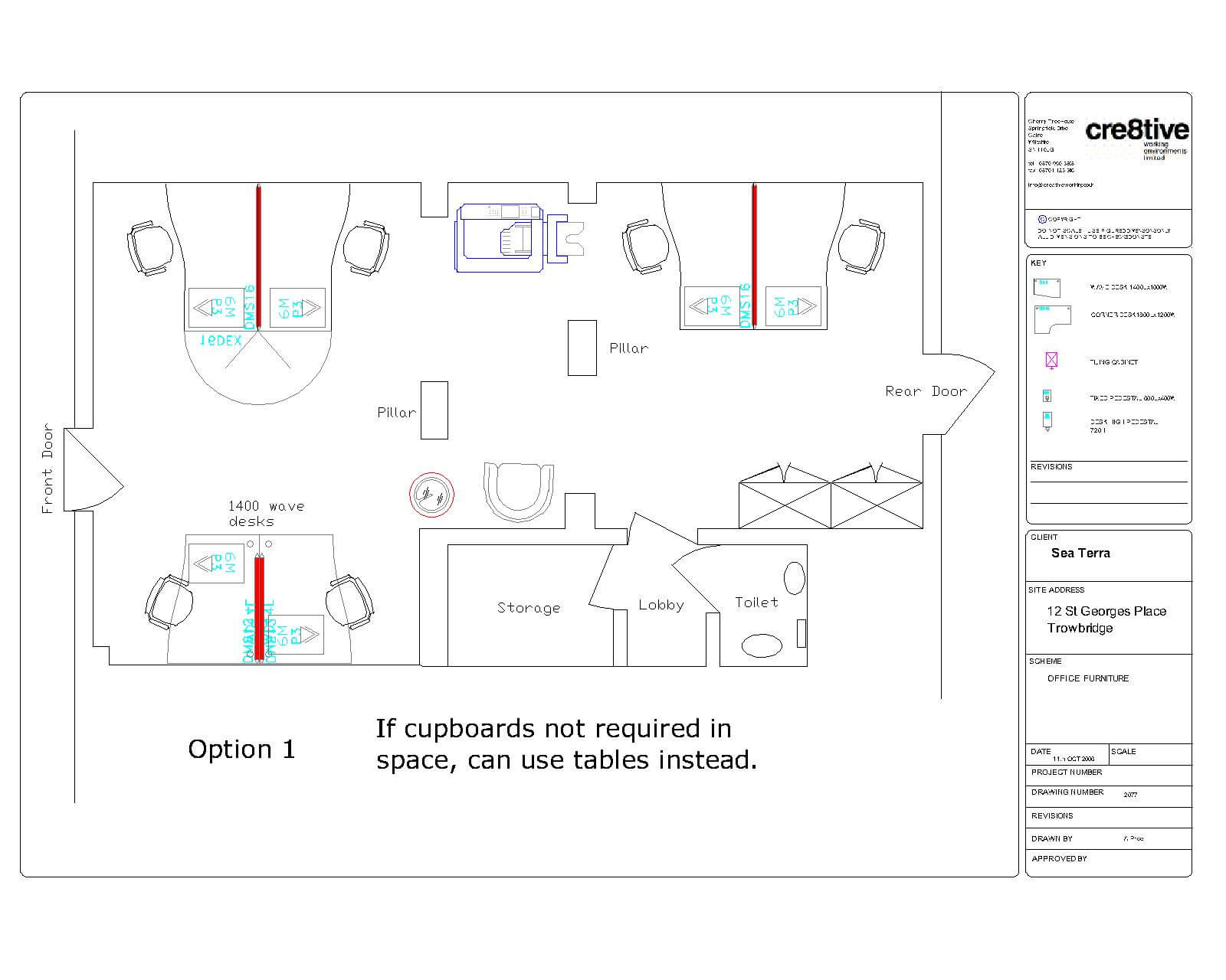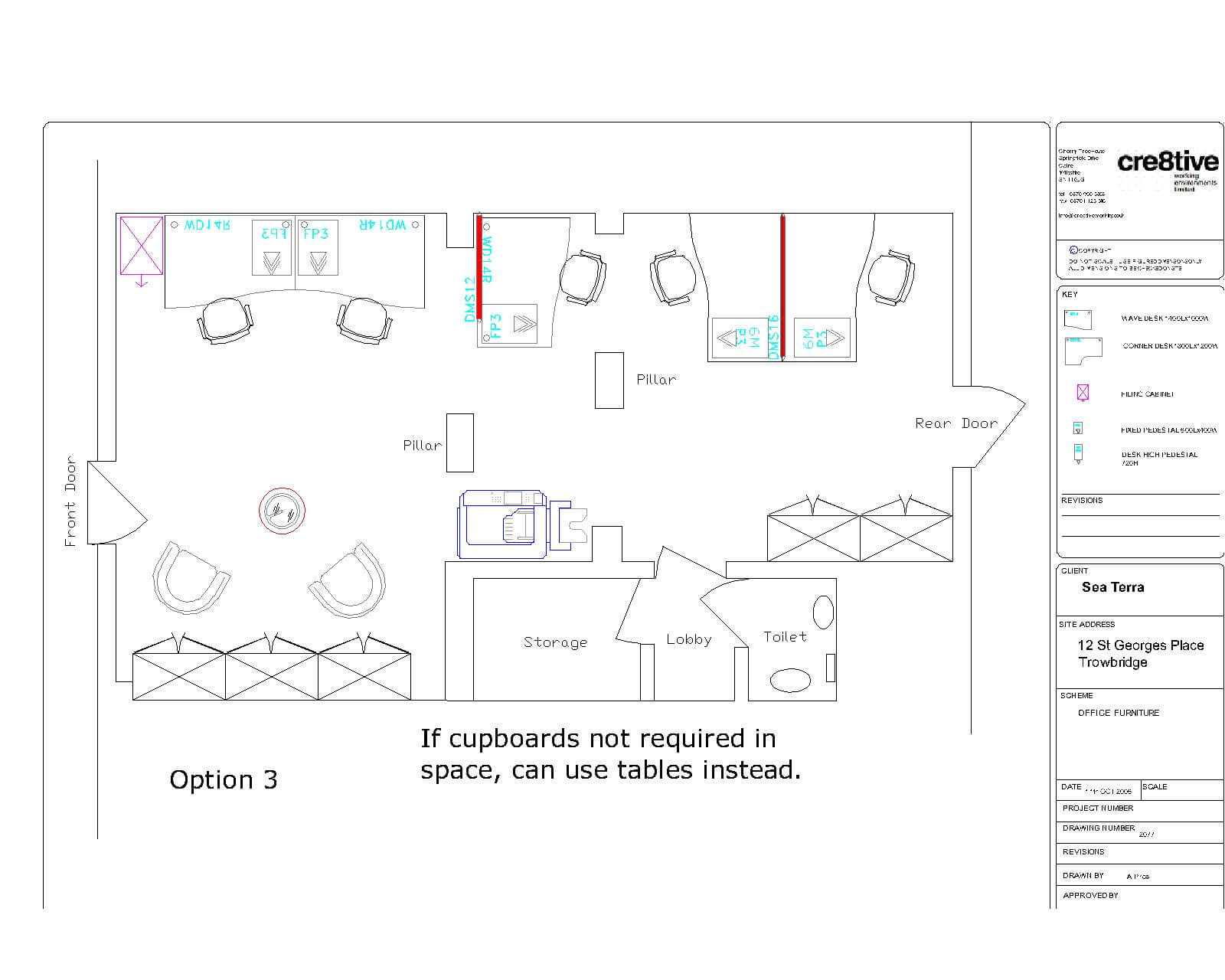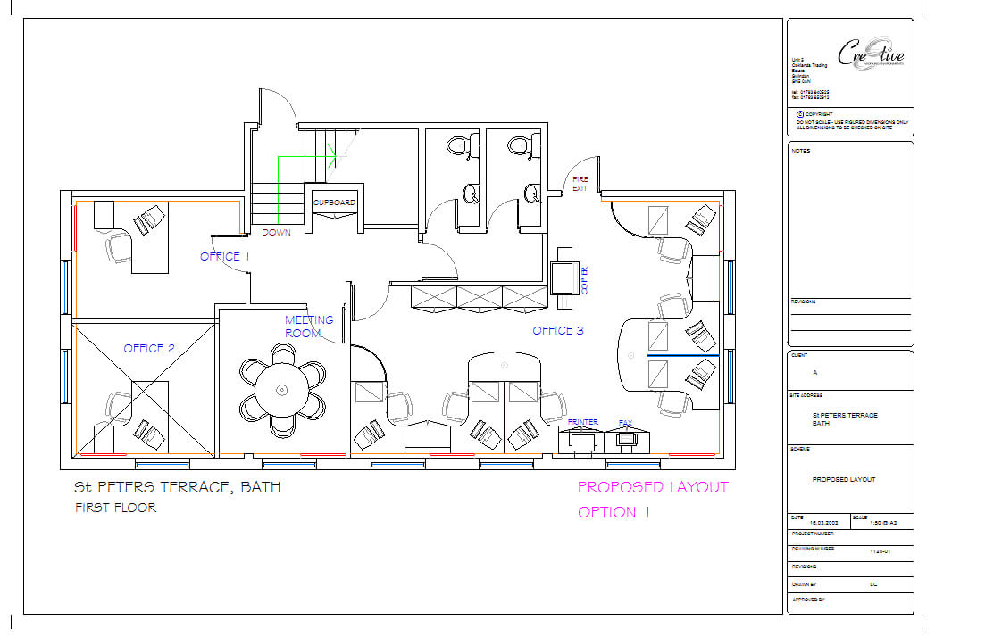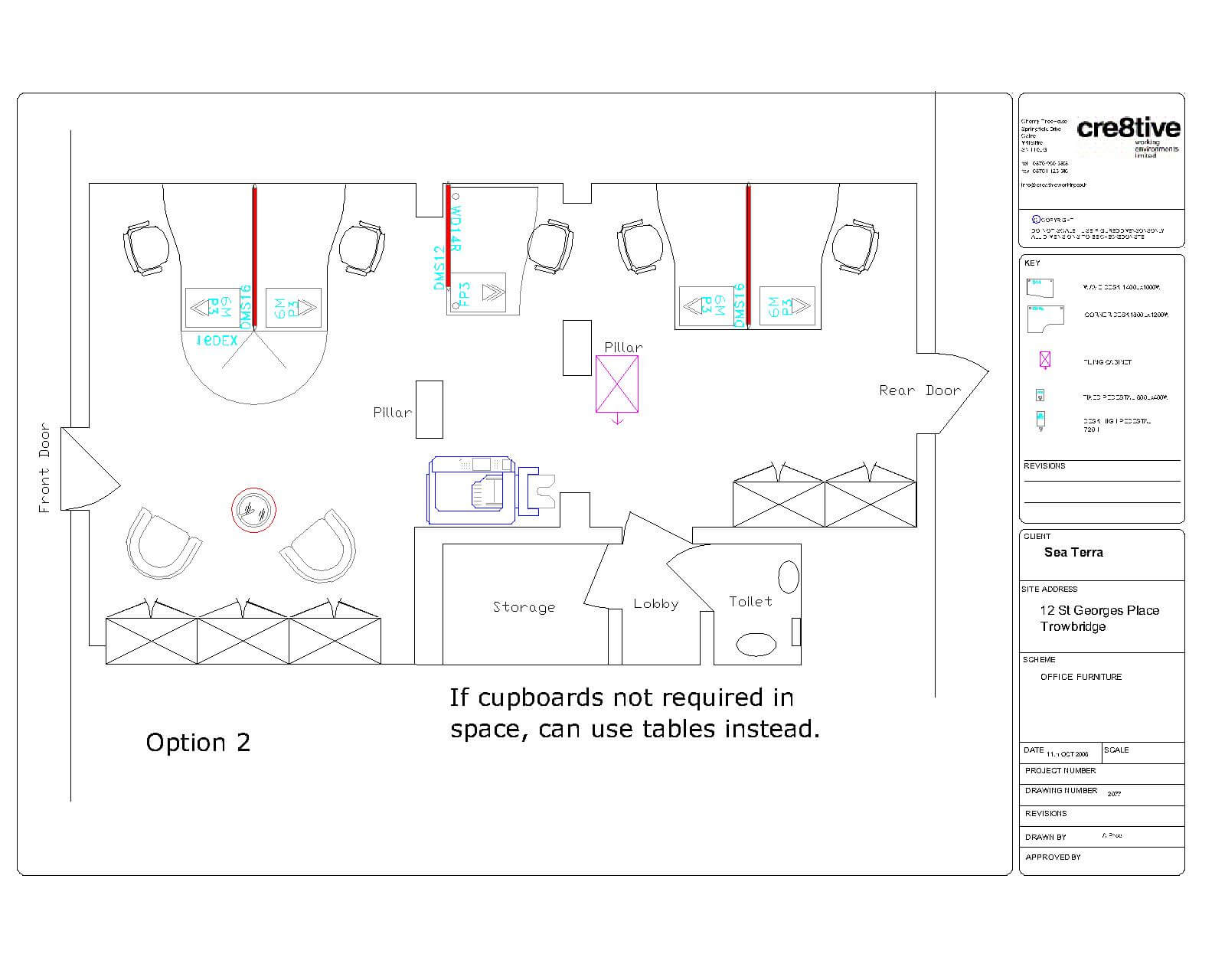 The space was quite small, there was also a requirement to fit a certain number of people inside the office and so a basic space plan was required.Moving on from a basic space plan we applied some colours to the layout as well so the customer had some idea what could be done by using different carpet colours. There is a difference between basic drawing work and space planning, please click on the link for more of an explanation.