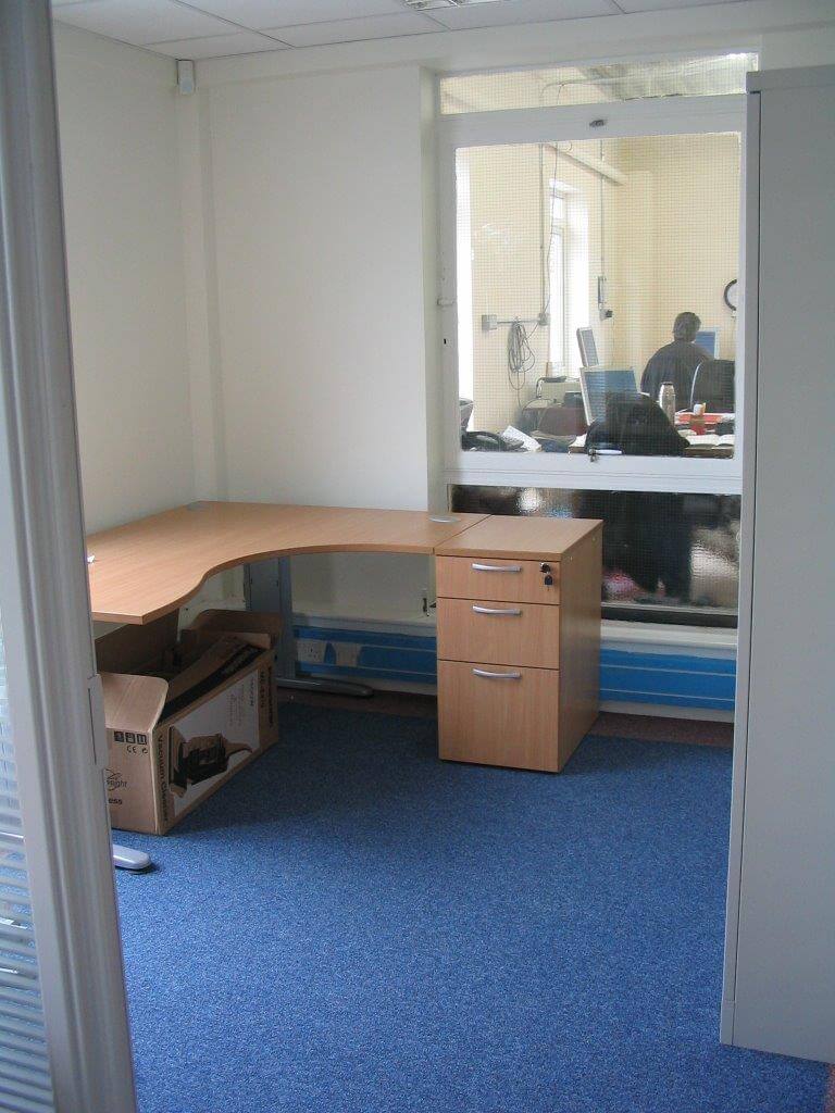 Luckily the office space was empty so it made fitting the suspended ceiling much easier. The original space was just an old shop with a plasterboard ceiling and old fissured (squiggle pattern) tiles which made the space look really dated. The lighting was surface mounted tubed light fittings which are not allowed under the Visual Display Regulations, so they had to be changed anyway to CAT2 at the very least as the customer was using computers.