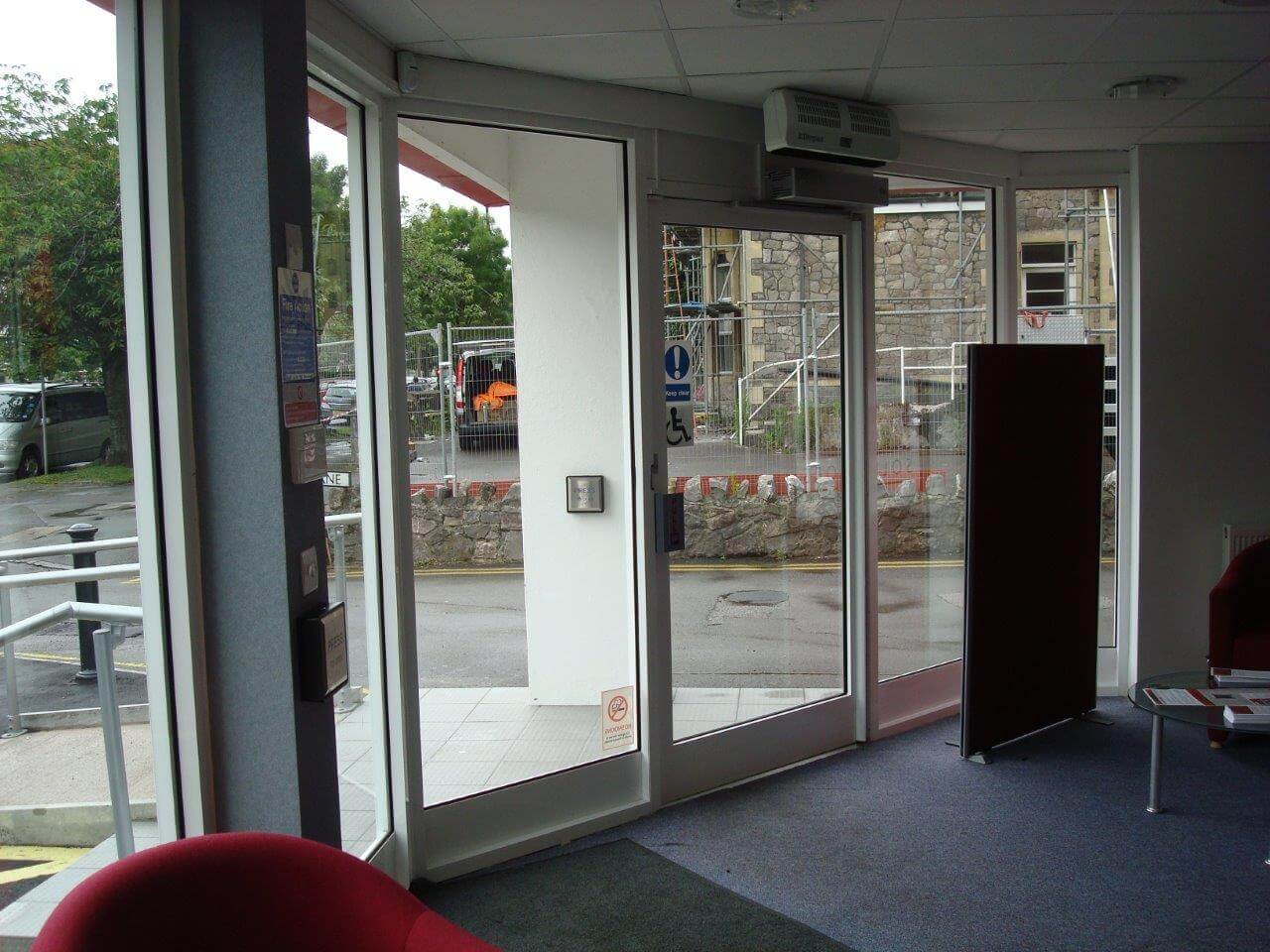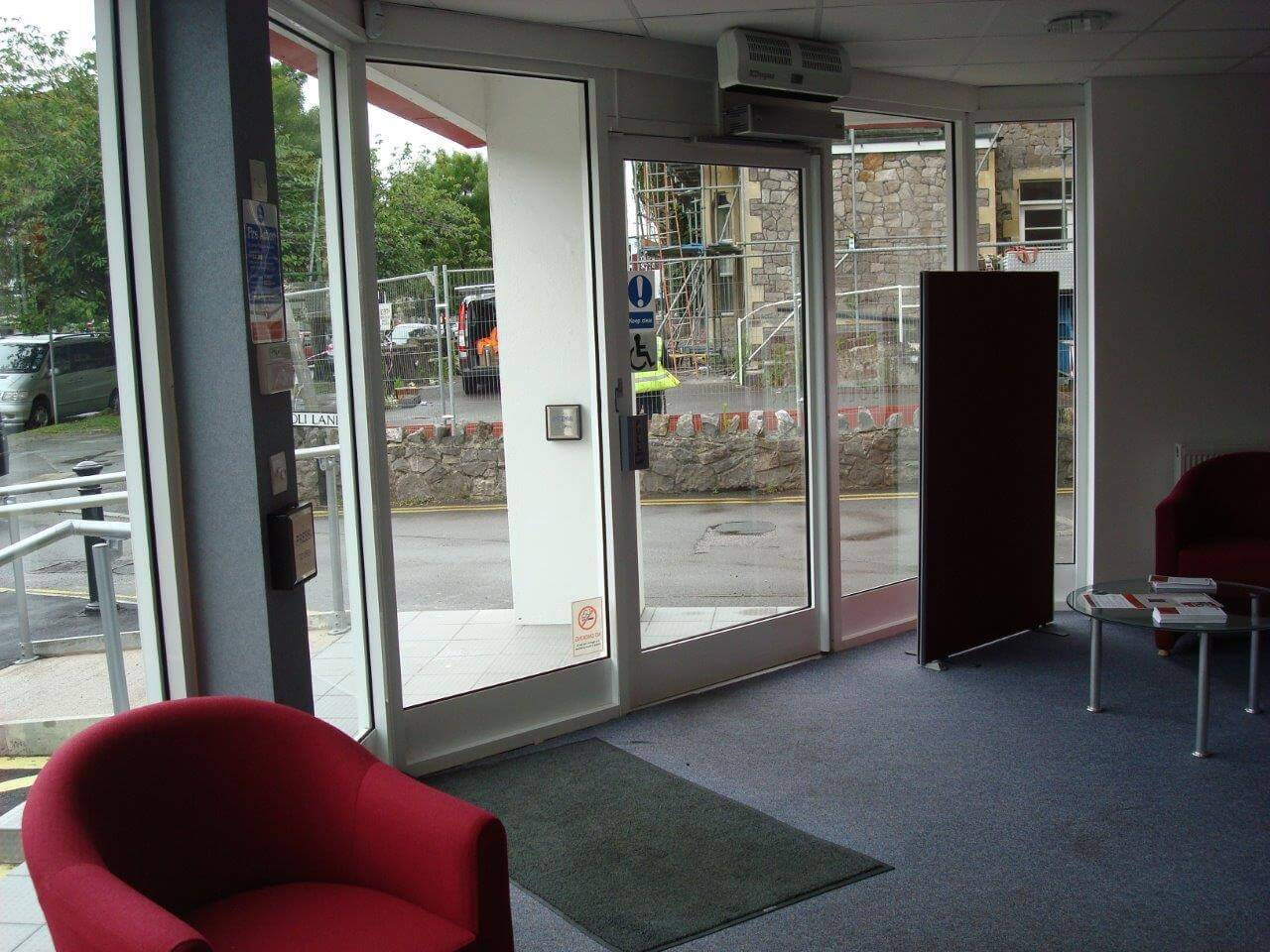 As the building use was going to be for public access, see clients from the general public, disabled access doors and a disabled toilet needed to be considered, as well as the car park out the front, with a slope, handrail and markings.