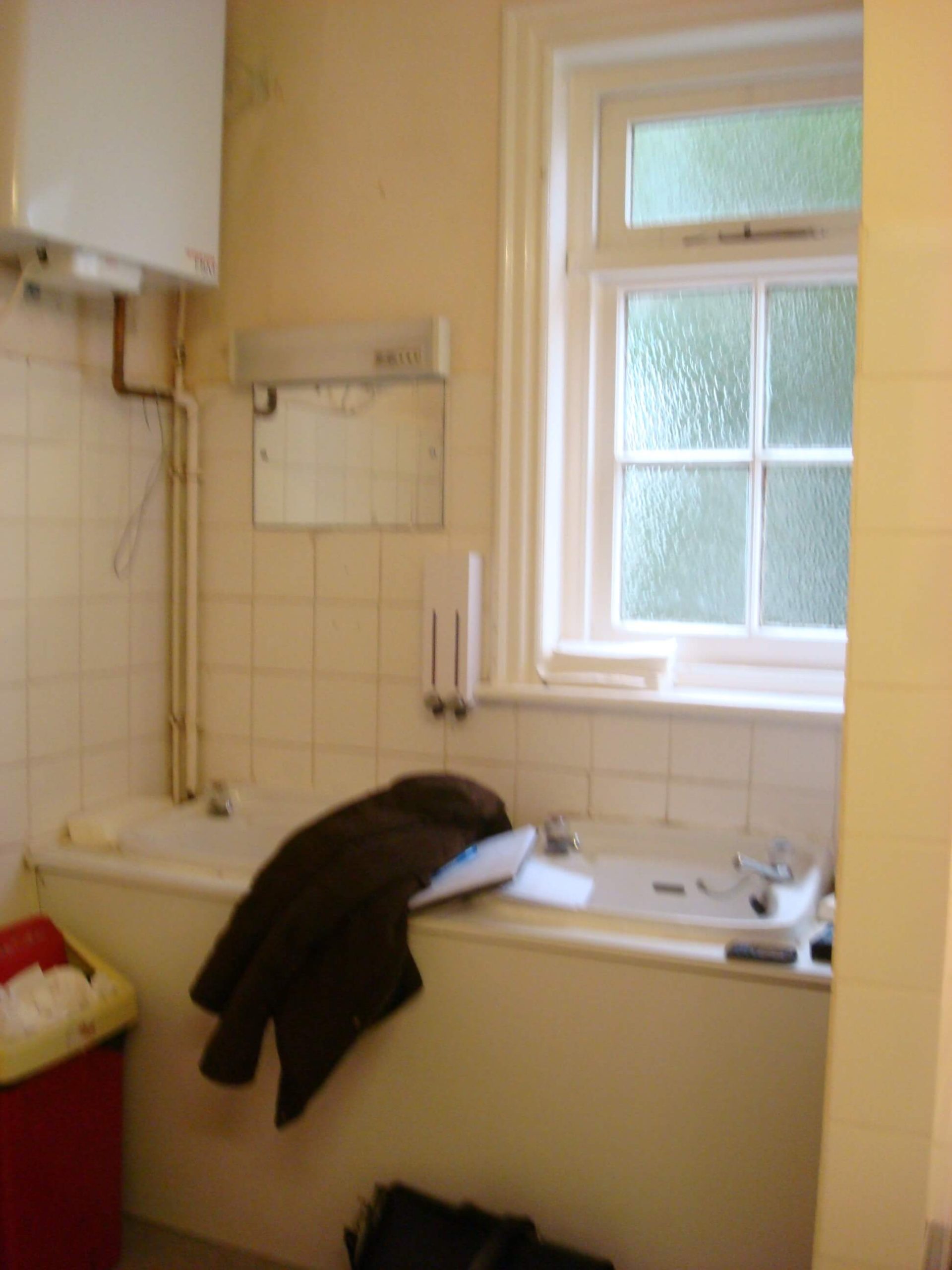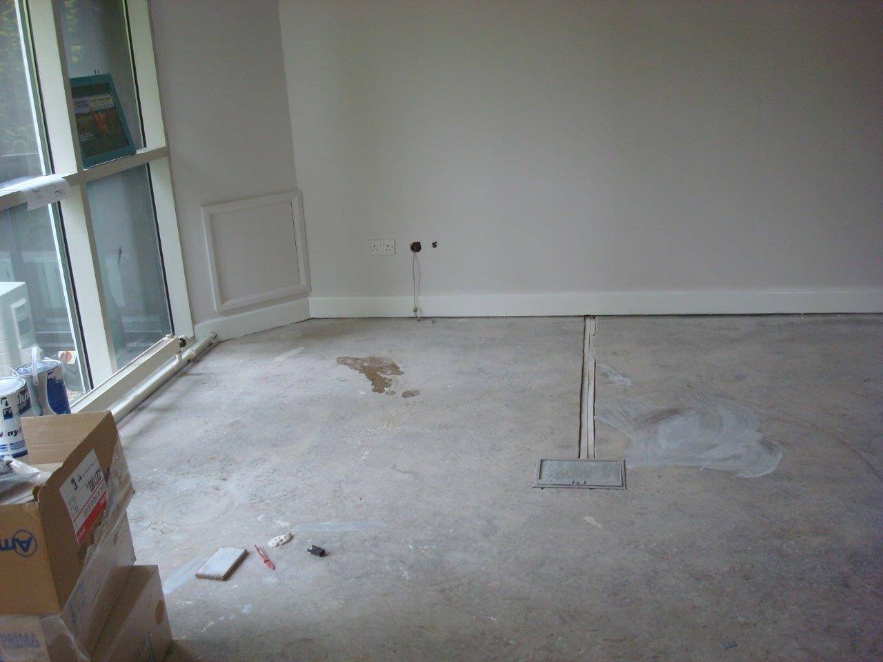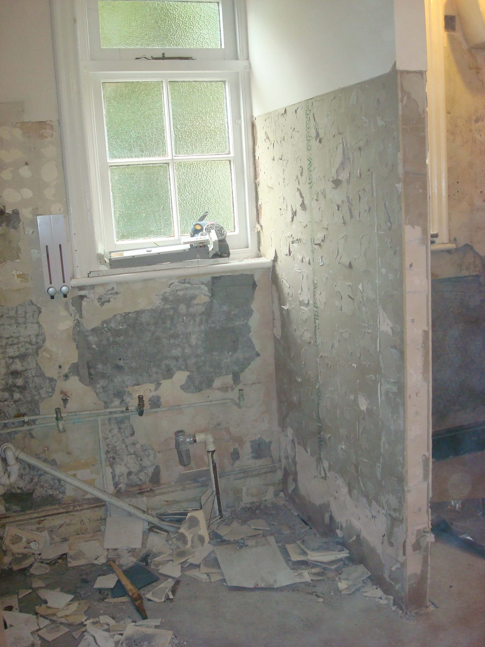 We did not have any pictures of the area before we actually started, the ones above are on the first day on the start of work. As you can see there are some cables and pipes for the air conditioning.