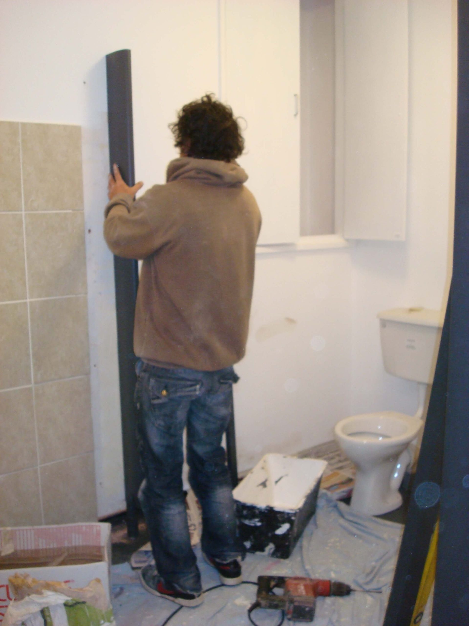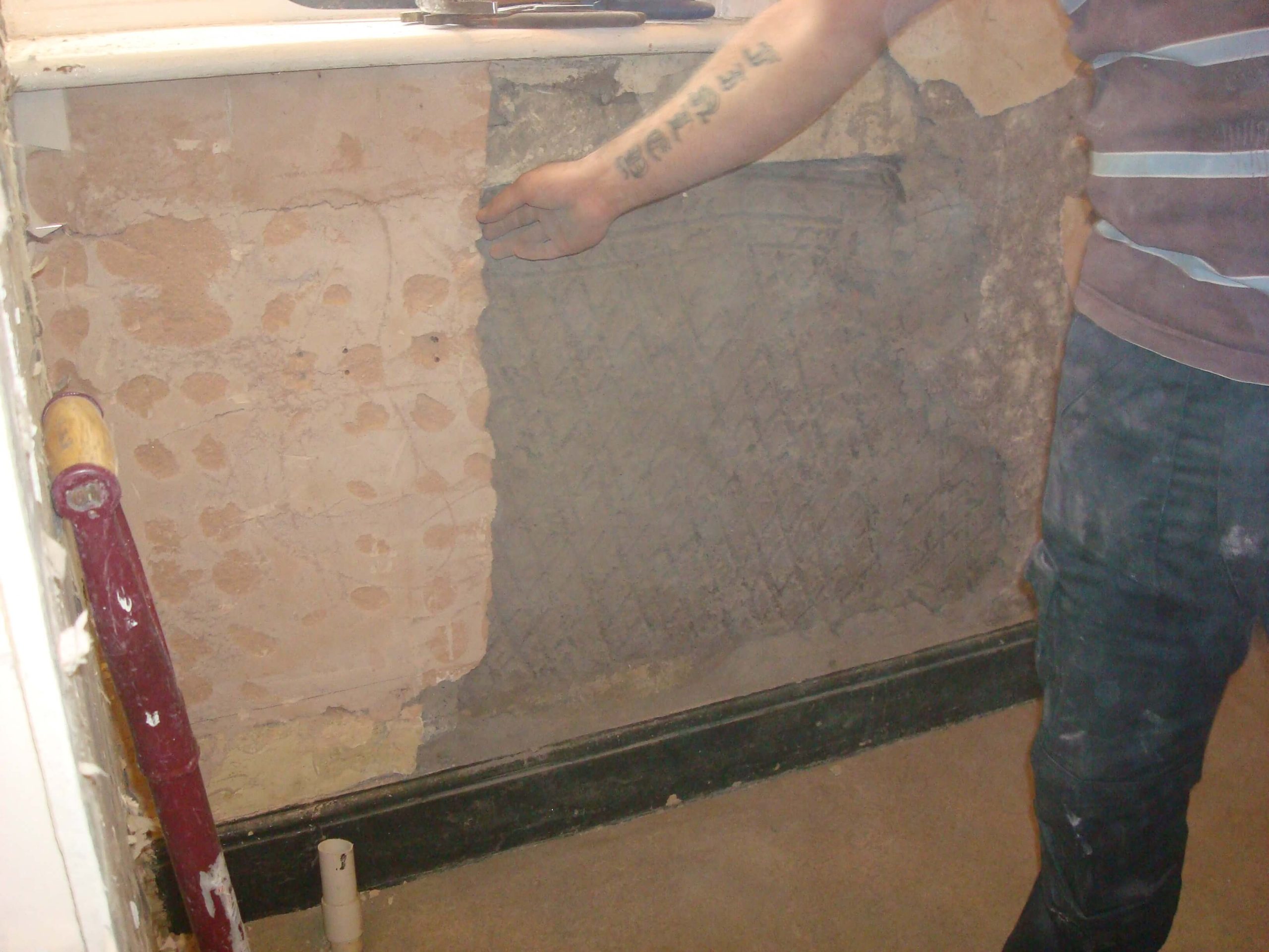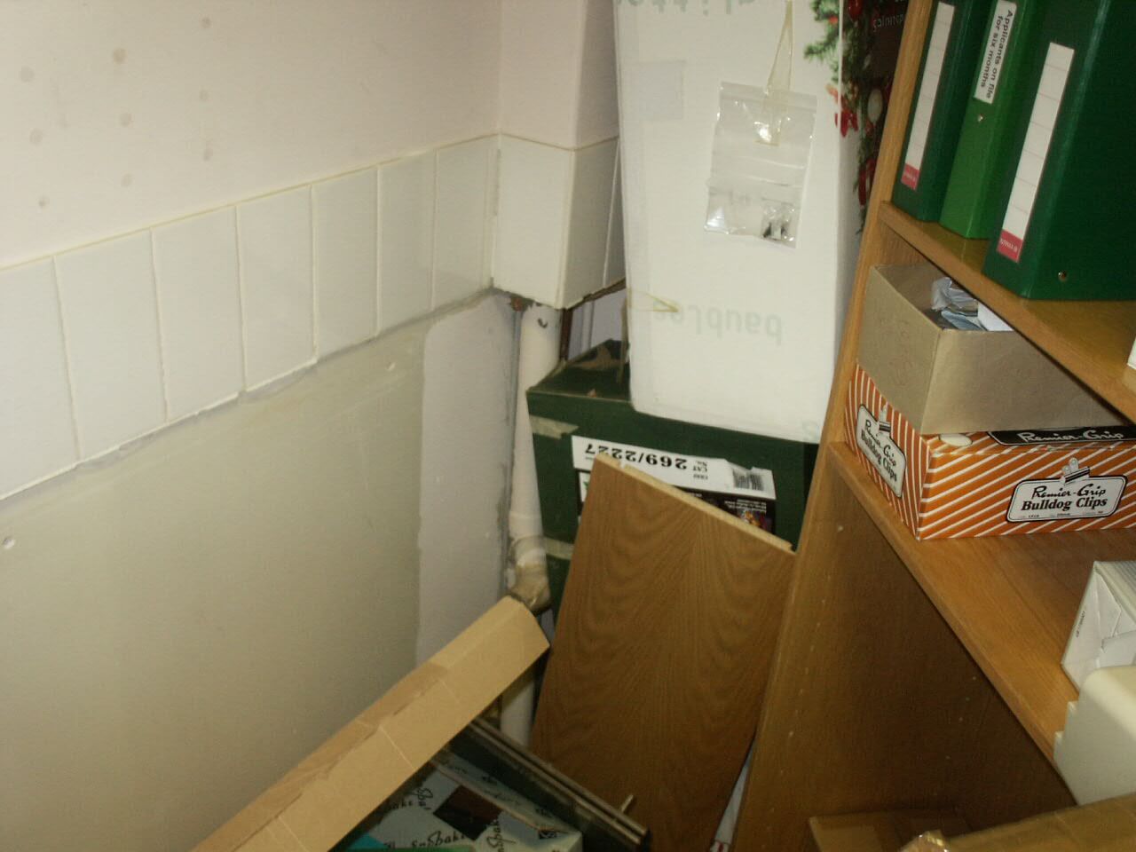 We did not have any pictures of the area before we actually started, the ones above are on the first day on the start of work. As you can see there are some cables and pipes for the air conditioning.