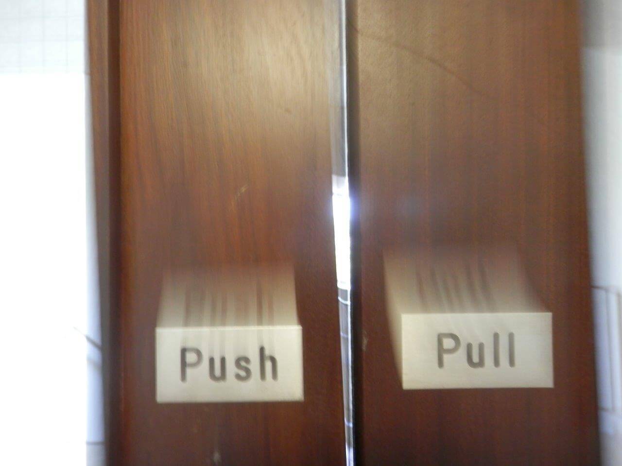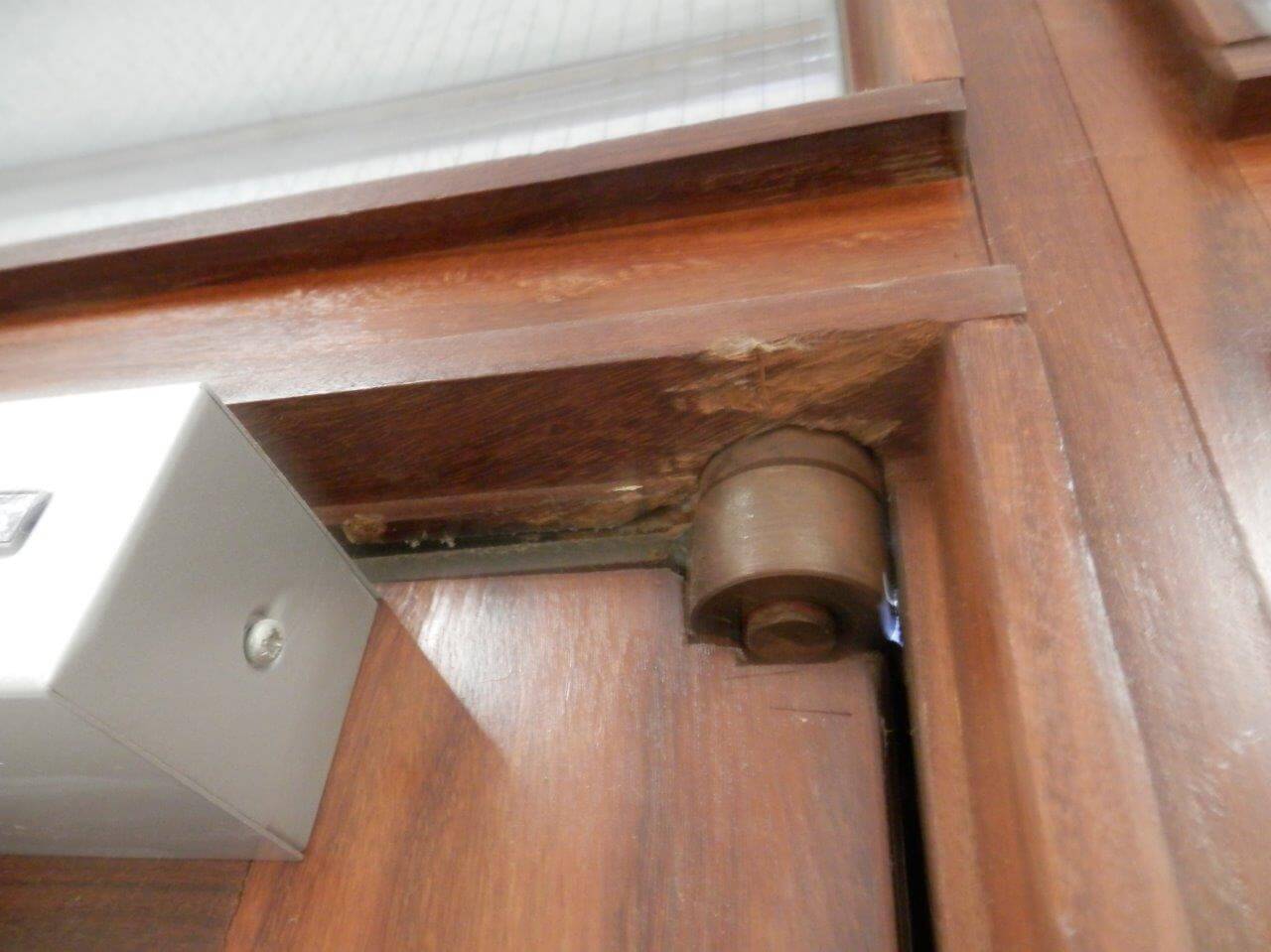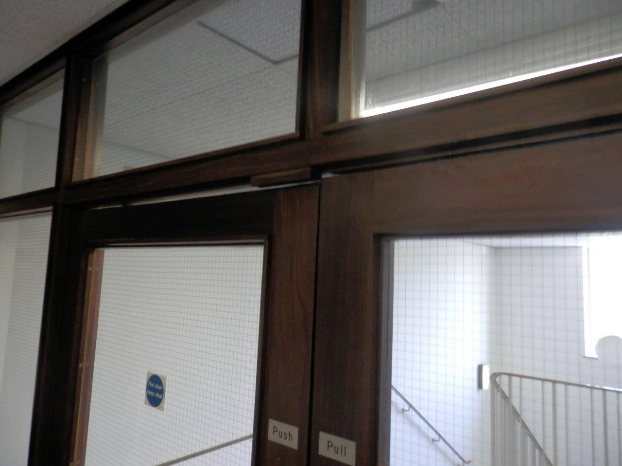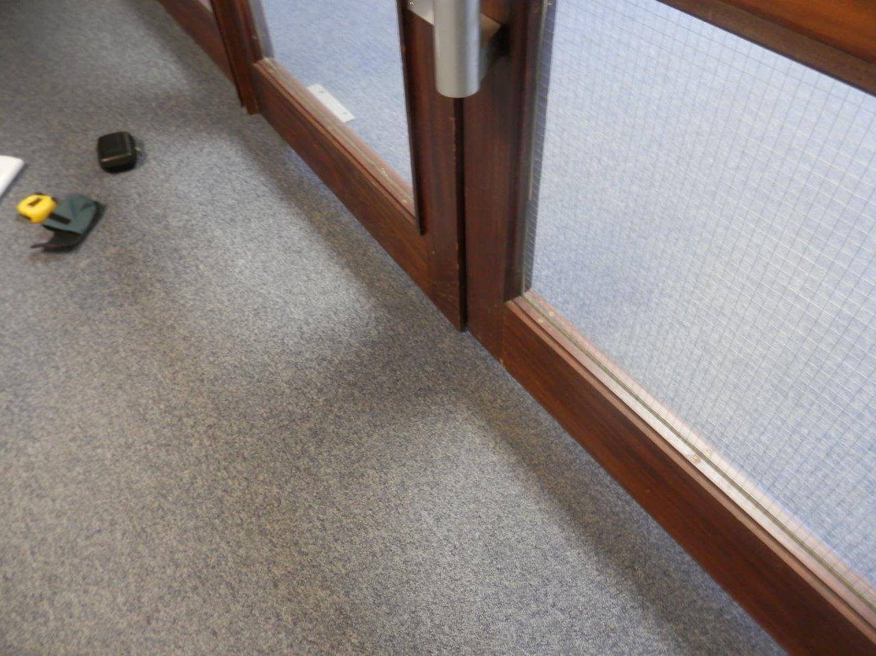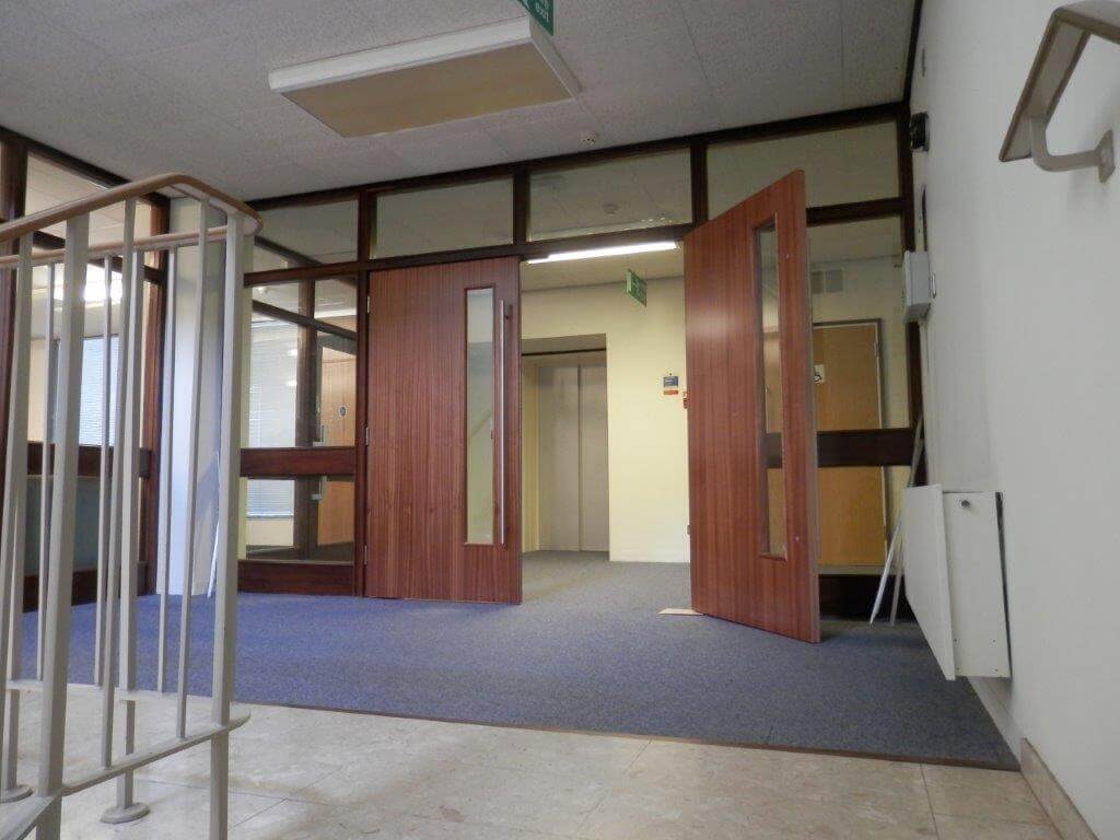 As you can see from the above photographs the existing doors had vision panels at approximately the same height as the glass panels on either side. Over the years the doors and frames had dropped, and as the doors had to be planned to fit, it would not be possible to line them up again.