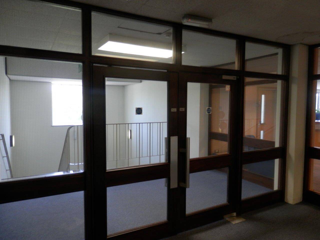 At first glance, replacing the doors would appear to be a simple job. However, on investigation we found that the glazed screens were produced many years ago, and each doorset was measured to a different size, so it was highly likely that each of the screens on each floor was made on site, individually. Each of the door sets had different problems with them. The current doors relied on a floor spring that was built into the floor which had since failed, and extra door closers were added with not the correct power to swing the doors properly. Each of the door sets also had different gaps, so it would not be possible to completely manufacture the doors with big windows in them, as when fitted each door pair would be needed to be ‘chopped in’ which would make the windows on the door not line up with the windows either side on the glazed screens. We had to take into account the fact that each screen was different.