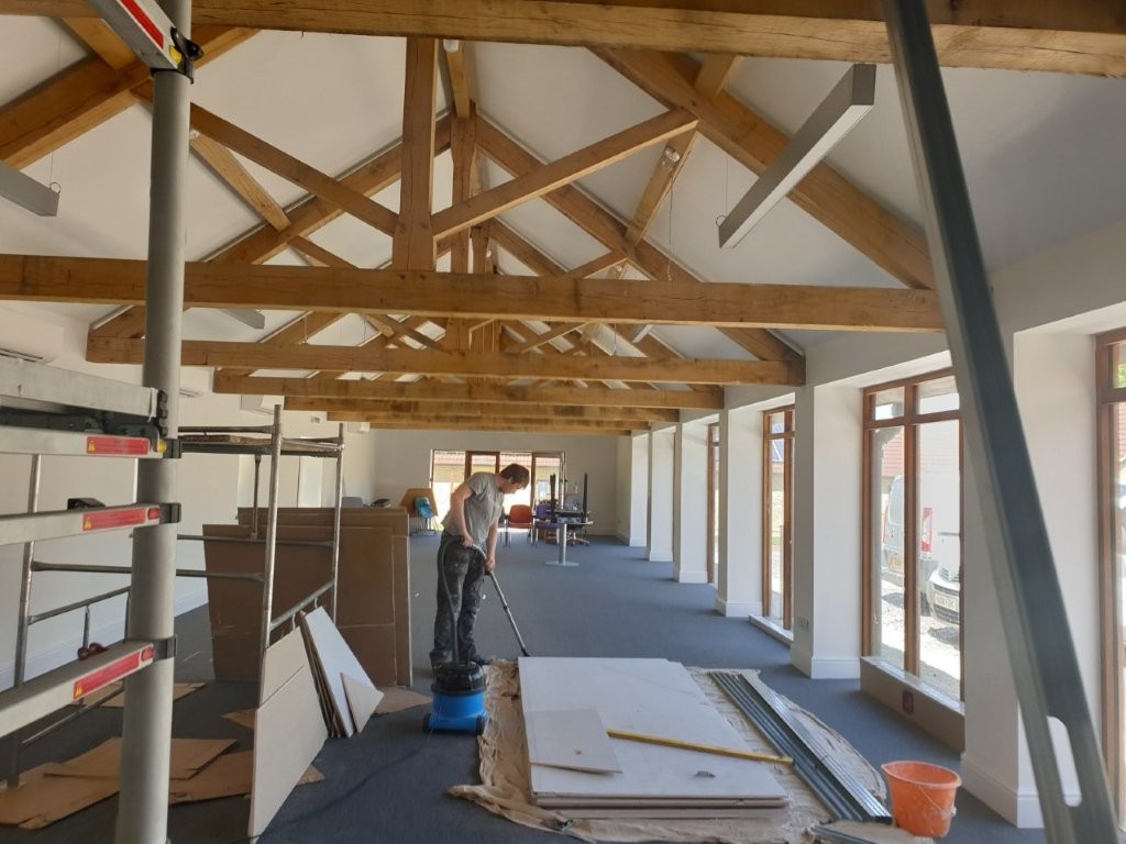 The customer was already in one building and wanted to expand into this one. They wanted a meeting room at one end by the main entrance like their existing space, that was built using an engineered timber system which would have cost an absolute fortune to build. We chose a different method, much more modern as well.