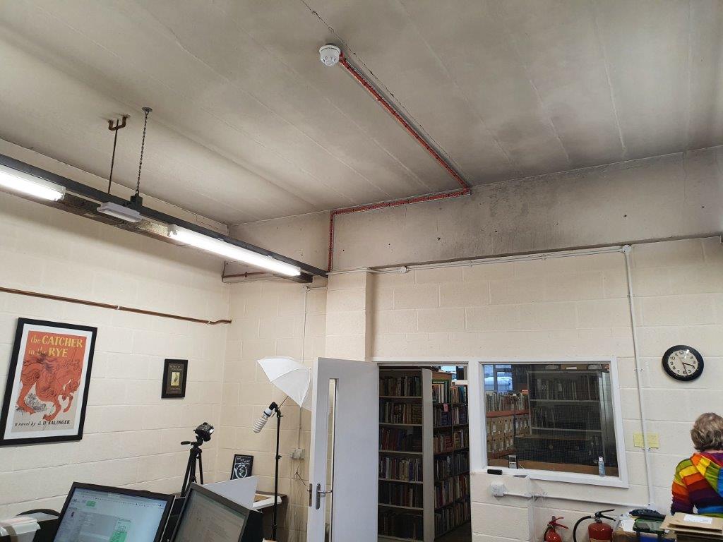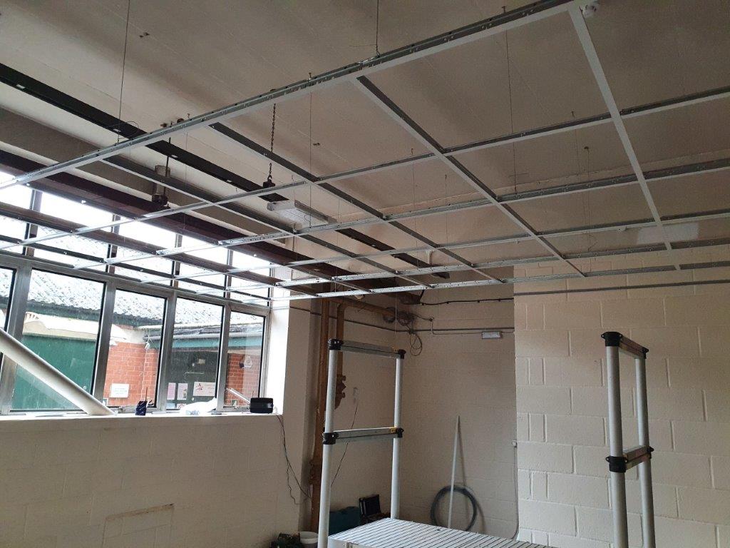 The new suspended ceiling used a modern flat white tile which looks much cleaner than the old fissured tiles, we also cranked the ceiling to maximize the available height in the middle making the space much more light and airy.