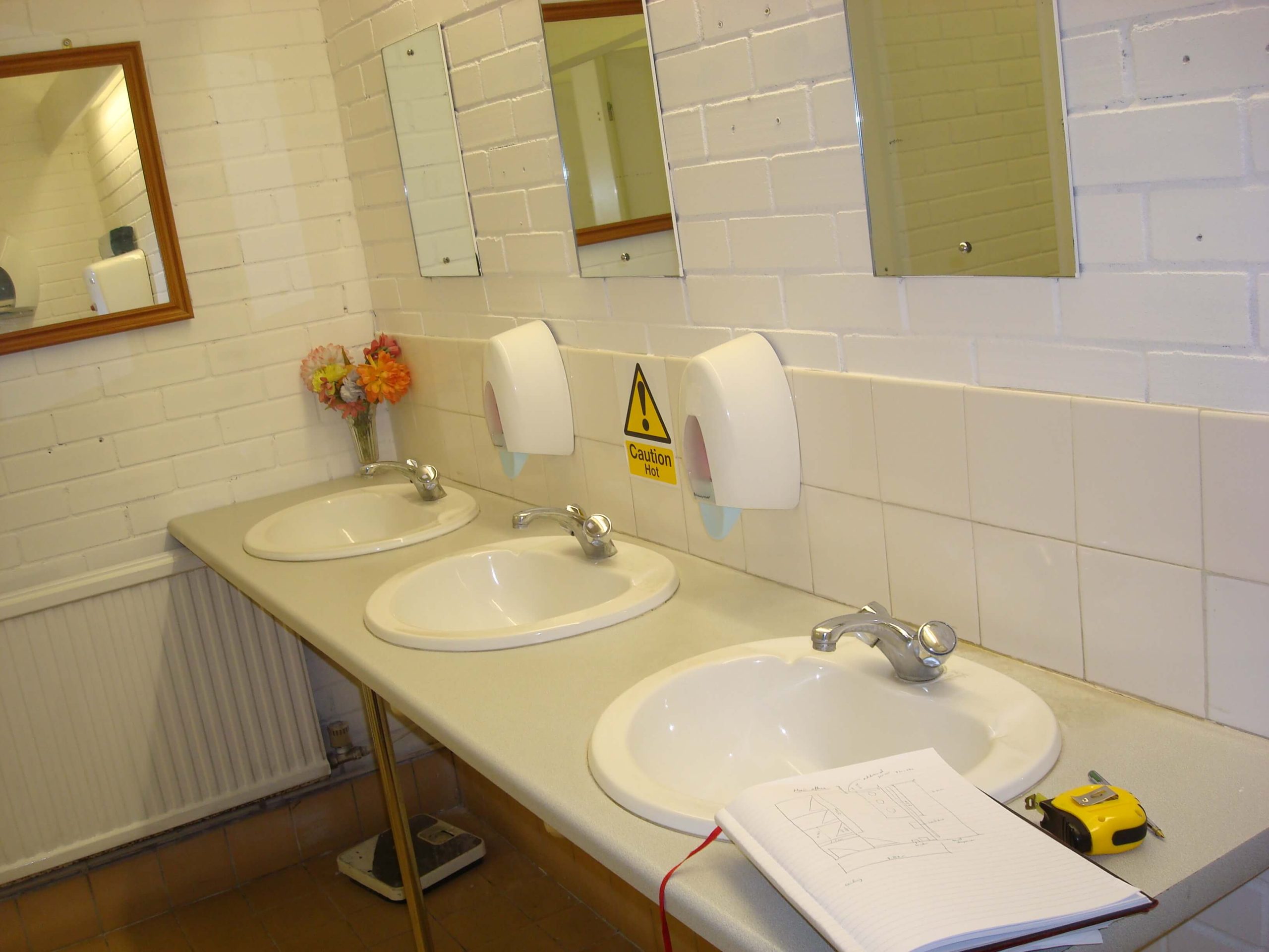 The photographs below show the two sets of toilets to be done, as you can see they look fairly dated and probably fairly typical of many toilets that need refurbishment. Our first step is to look at what they have, have a meeting to discuss what the customer likes and dislikes, produce some drawings and plans, cost the project and then carry out the work. Easy really!