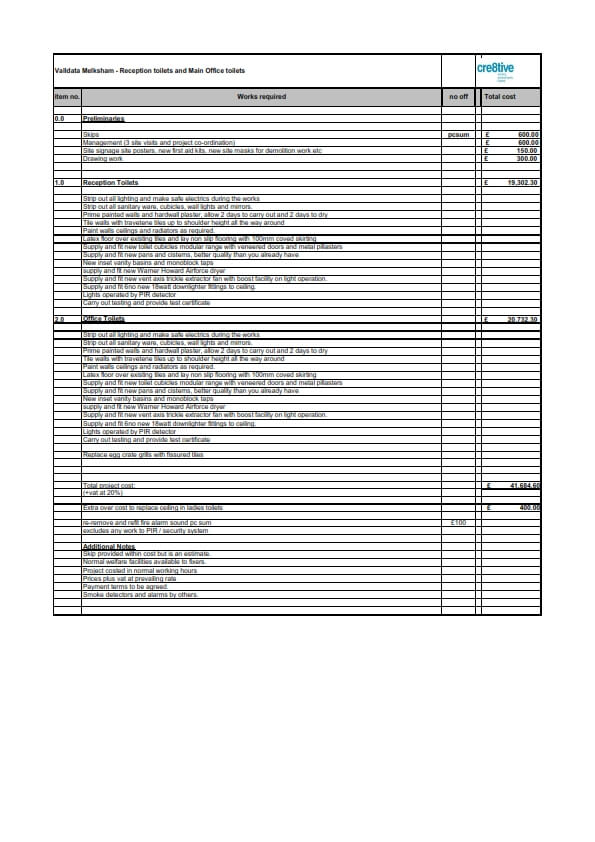 We follow the same basic principle for all projects, before anything we have to look and see what is there, measure everything and draw it. Regardless of what the final specification is the measuring and drawing allows us to be accurate with the costs. It was apparent that a large part of the costs would be tiling, so it is important to get the meterage correct. We can lay out the suspended ceiling grid as well so the light positions can be worked out. Once the basic cost is determined we can adjust the specification to suit the customers budget so we show all of the costings and juggle things around to get to a cost that everyone is happy with.