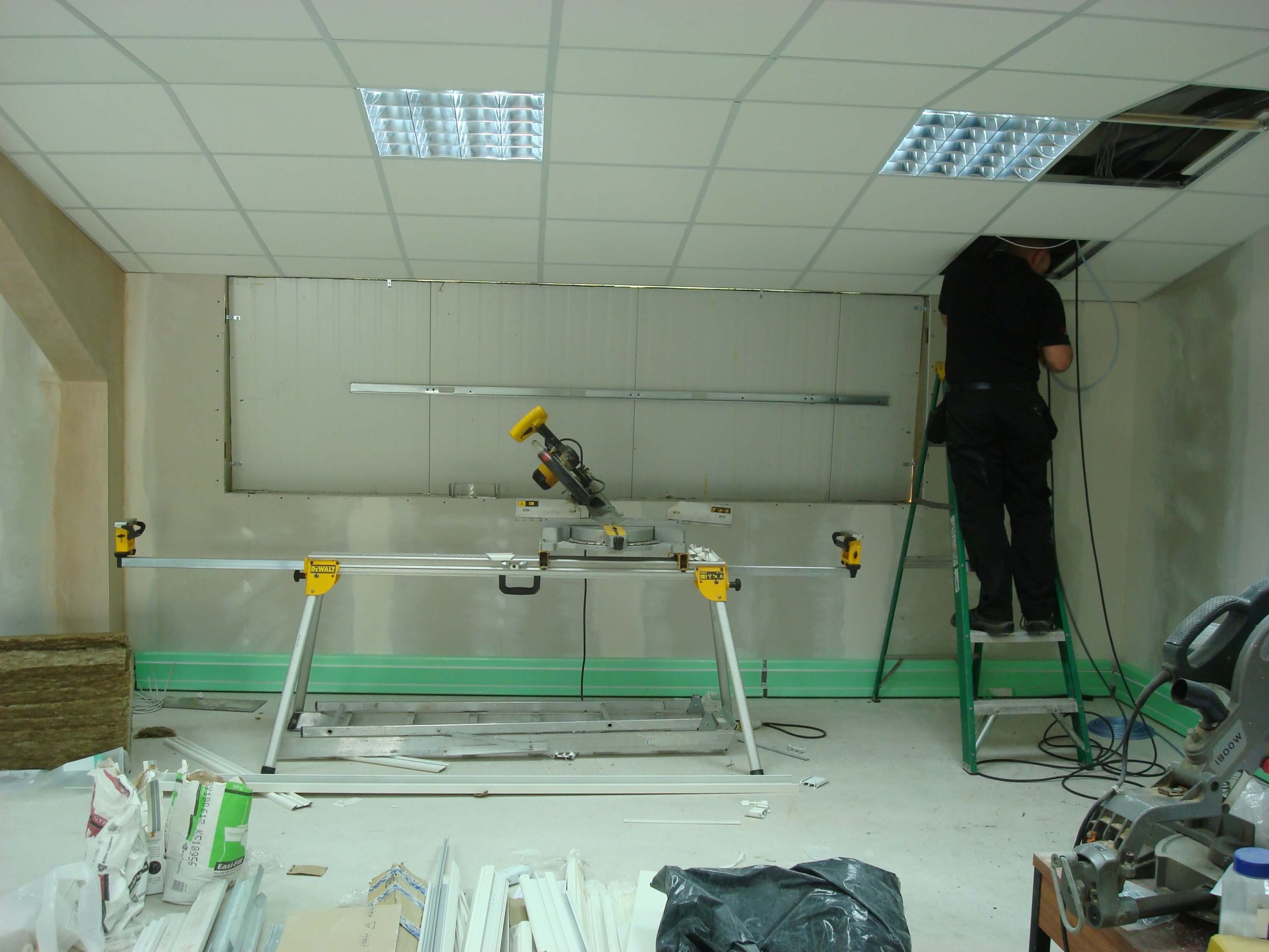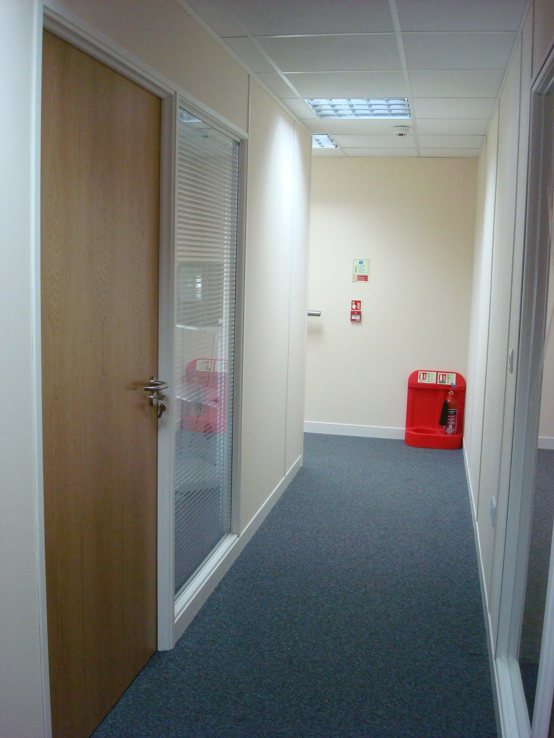 This project consisted of converting a storage unit in to office space in order to provide some much needed office expansion. The project would involve fire protecting a mezzanine floor as this is required by Building Regulations if you have offices above, steel work and a suspended ceiling. Ventilation had to be put round a chiller and fire sensors had to be installed within the chiller as it could not be moved to fit the fire protected board. Office windows had to be installed to match the rest of the building.