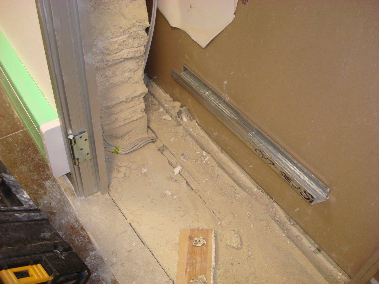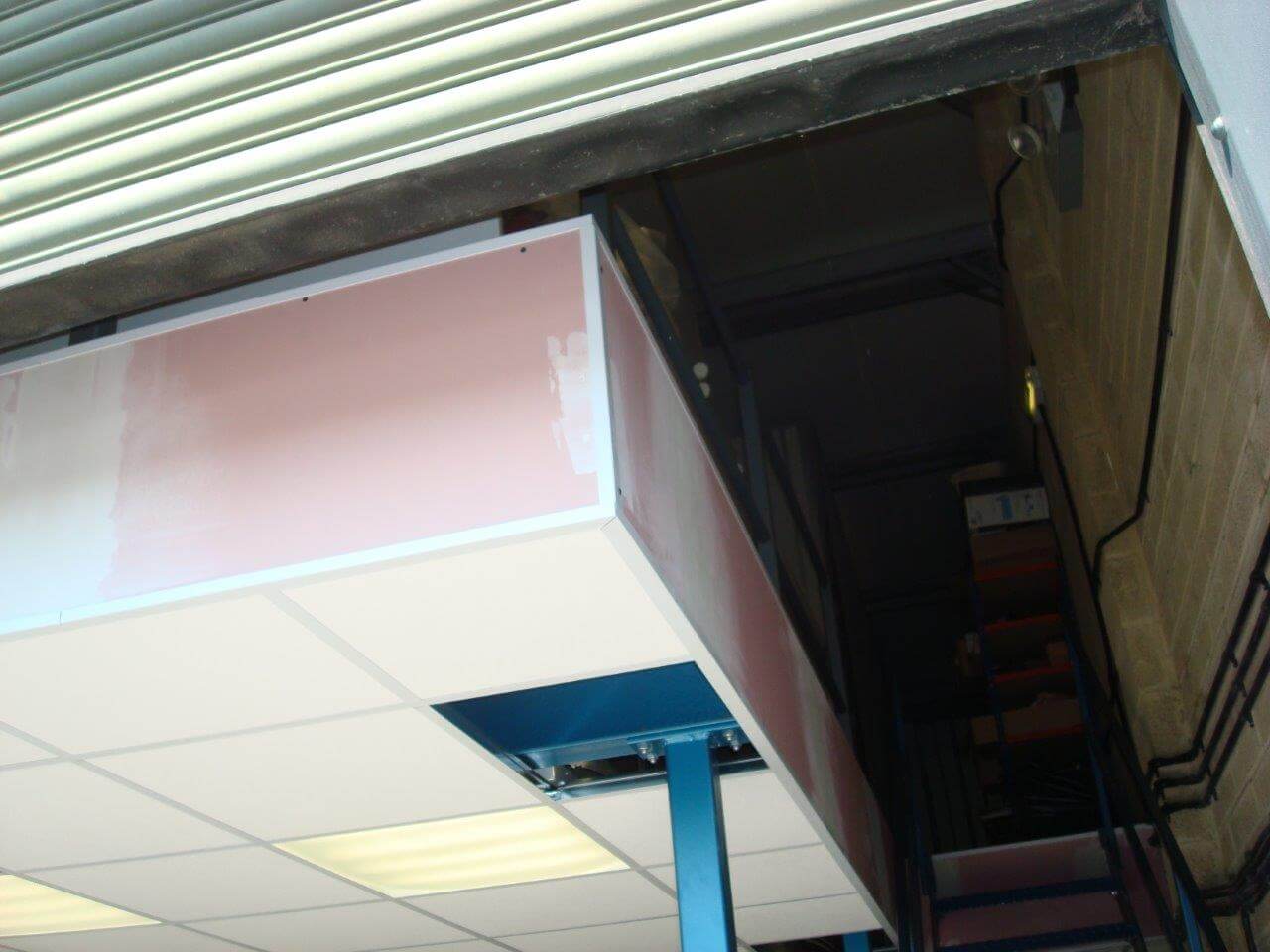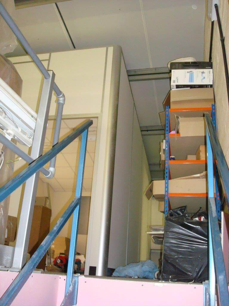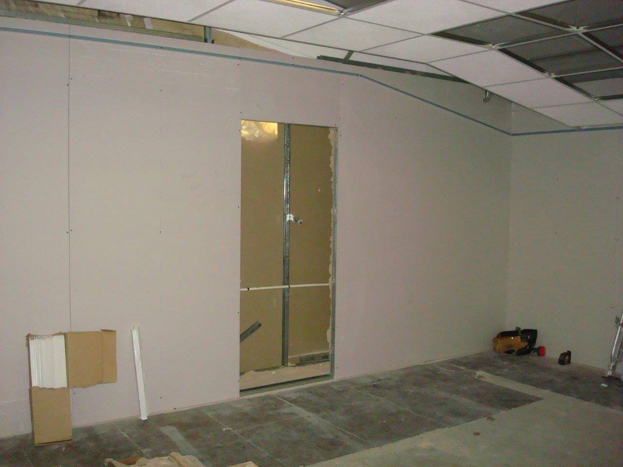 The photographs above show the wall to be re-used, we could re-use all of the grey aluminium parts along with the window frames, glass and blinds but had to replace the plasterboard and stud work inside.