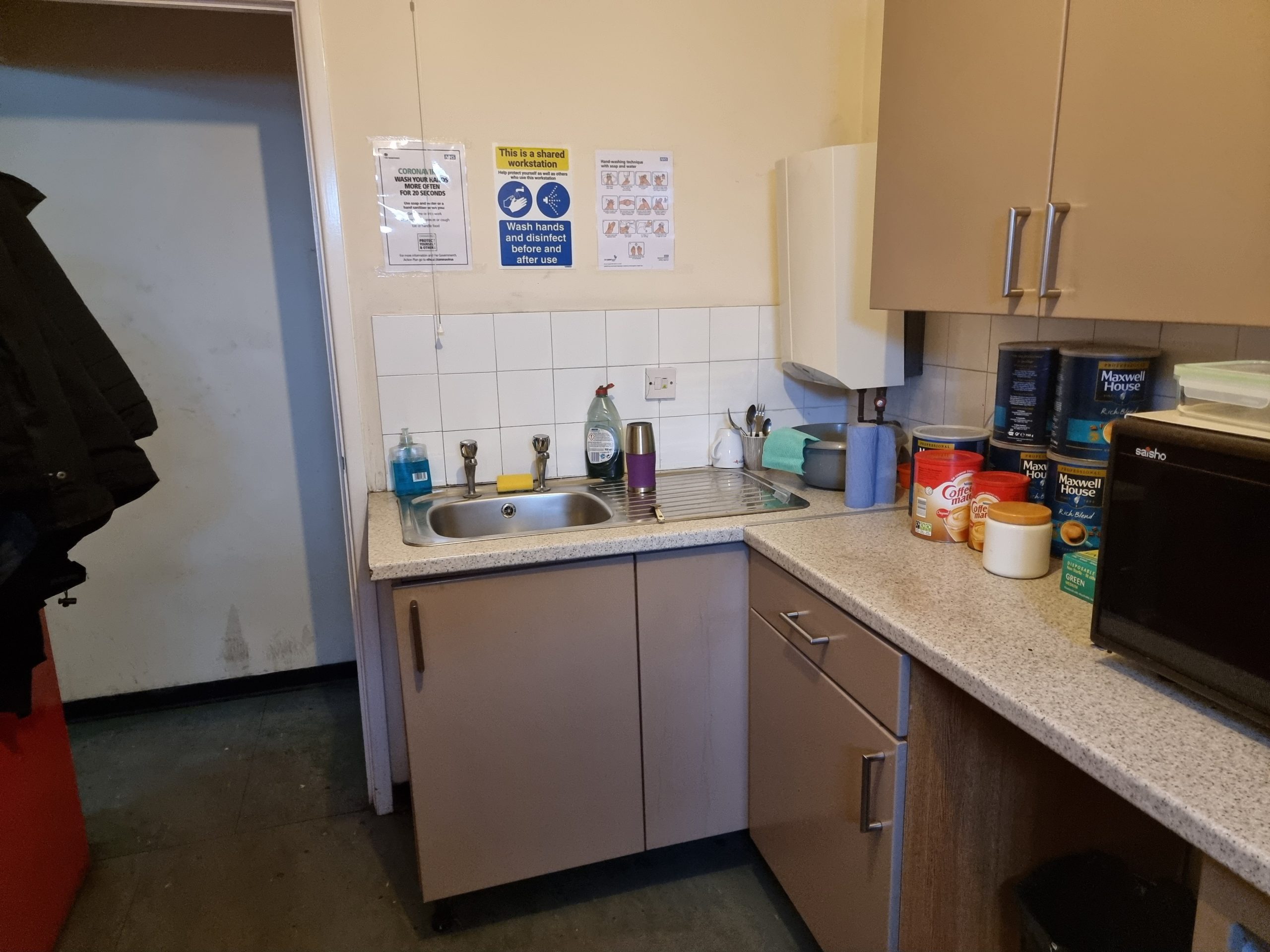 The aim of the kitchen and toilet refurbishment project for Novacast in Melksham, was to make the toilet more pleasant for the staff and make the kitchen more functional. Both had become a dumping ground and with most of the kitchen broken and unusable.