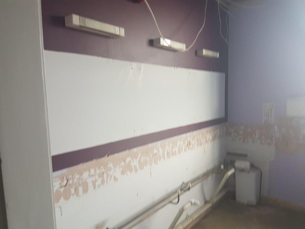 The project commenced with the complete decommissioning and strip-out of the existing facilities. To support the new kitchenette, we performed electrical chasing to ensure all power points were seamlessly integrated. Following the first-fix electrical work, all surfaces underwent thorough remediation—filling and making good to provide a flawless substrate for the final decorations.