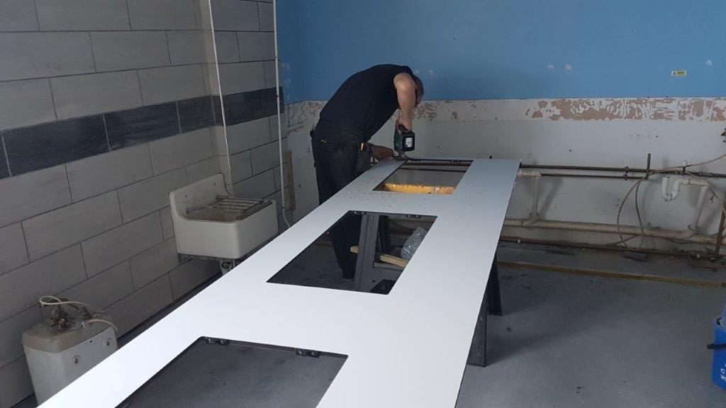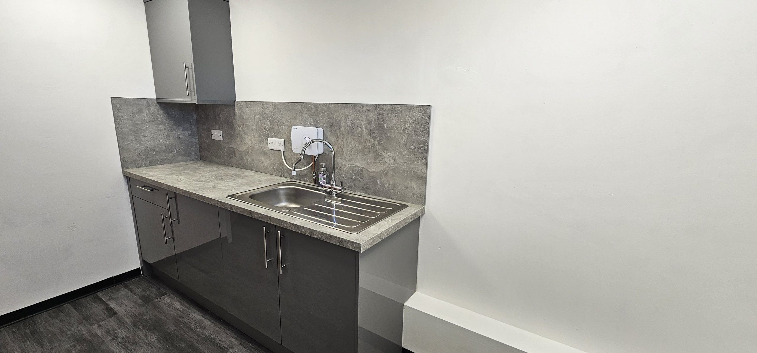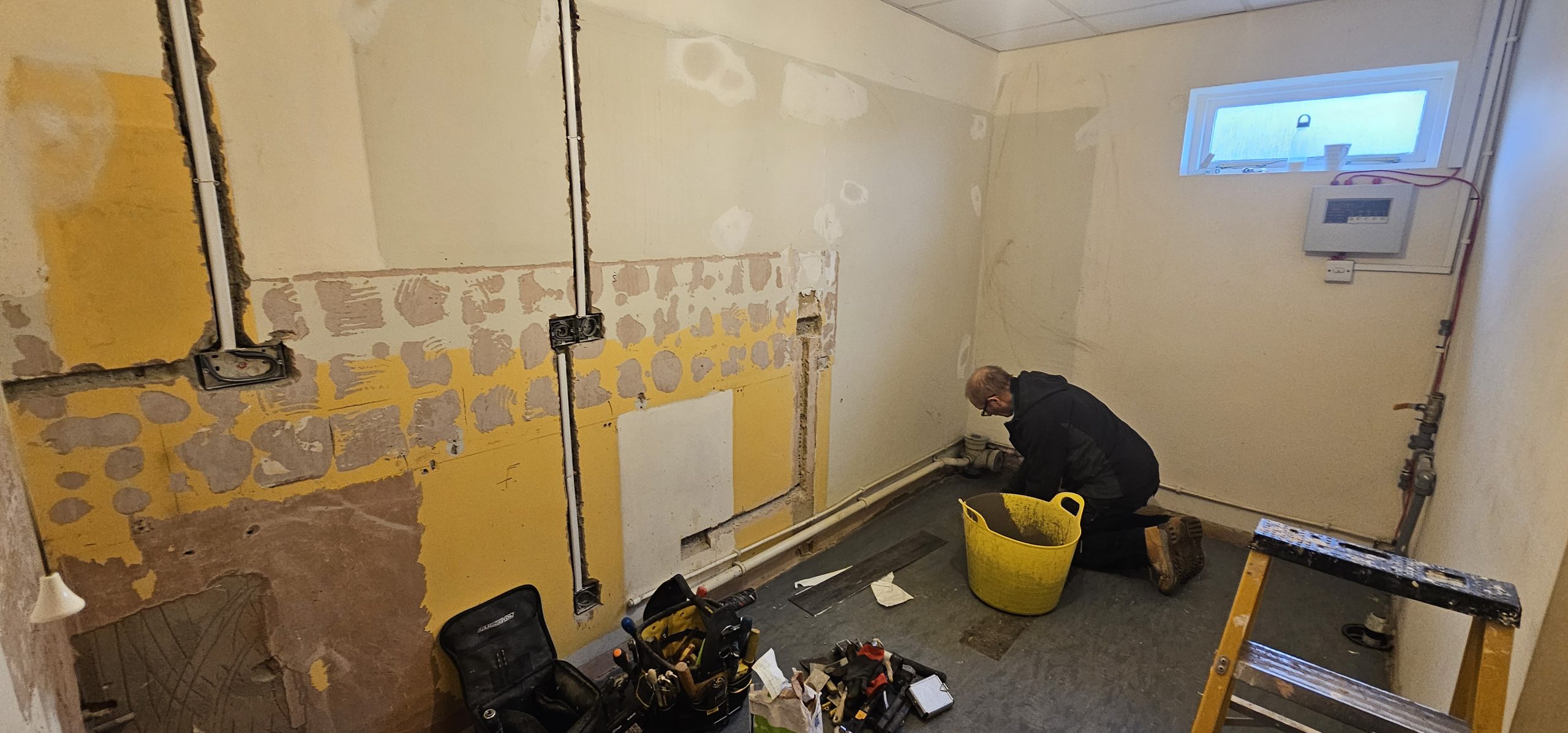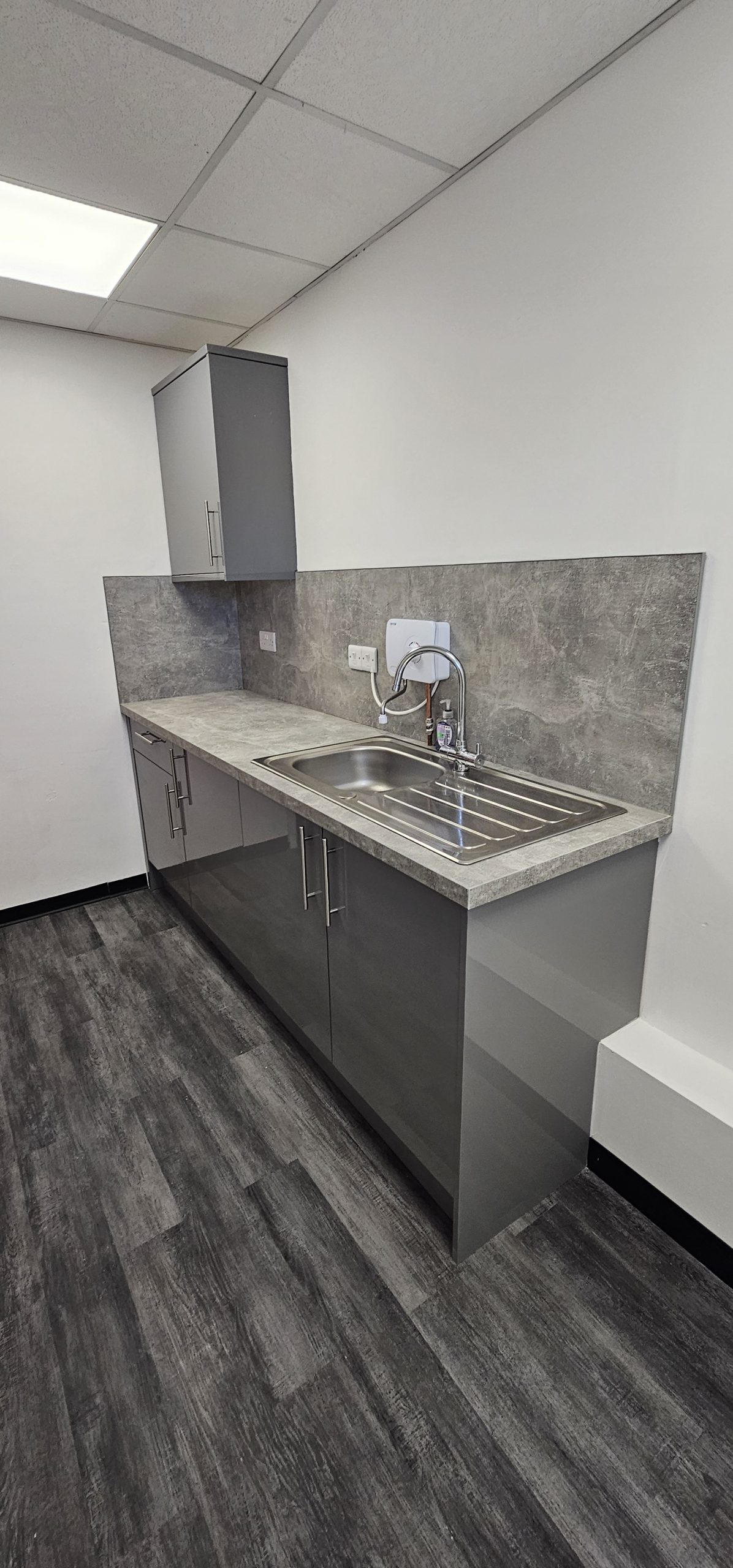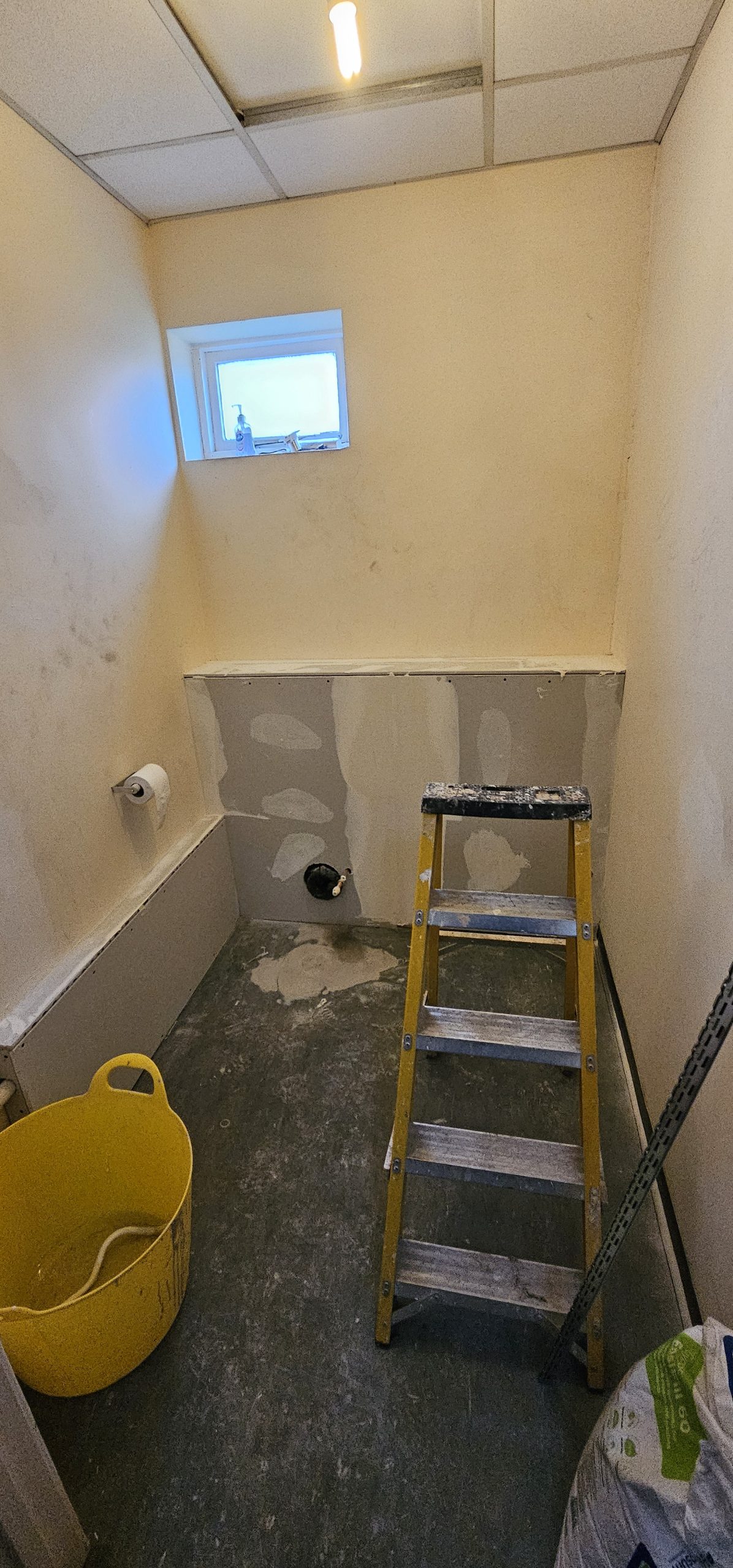The project commenced with the complete decommissioning and strip-out of the existing facilities. To support the new kitchenette, we performed electrical chasing to ensure all power points were seamlessly integrated. Following the first-fix electrical work, all surfaces underwent thorough remediation—filling and making good to provide a flawless substrate for the final decorations.