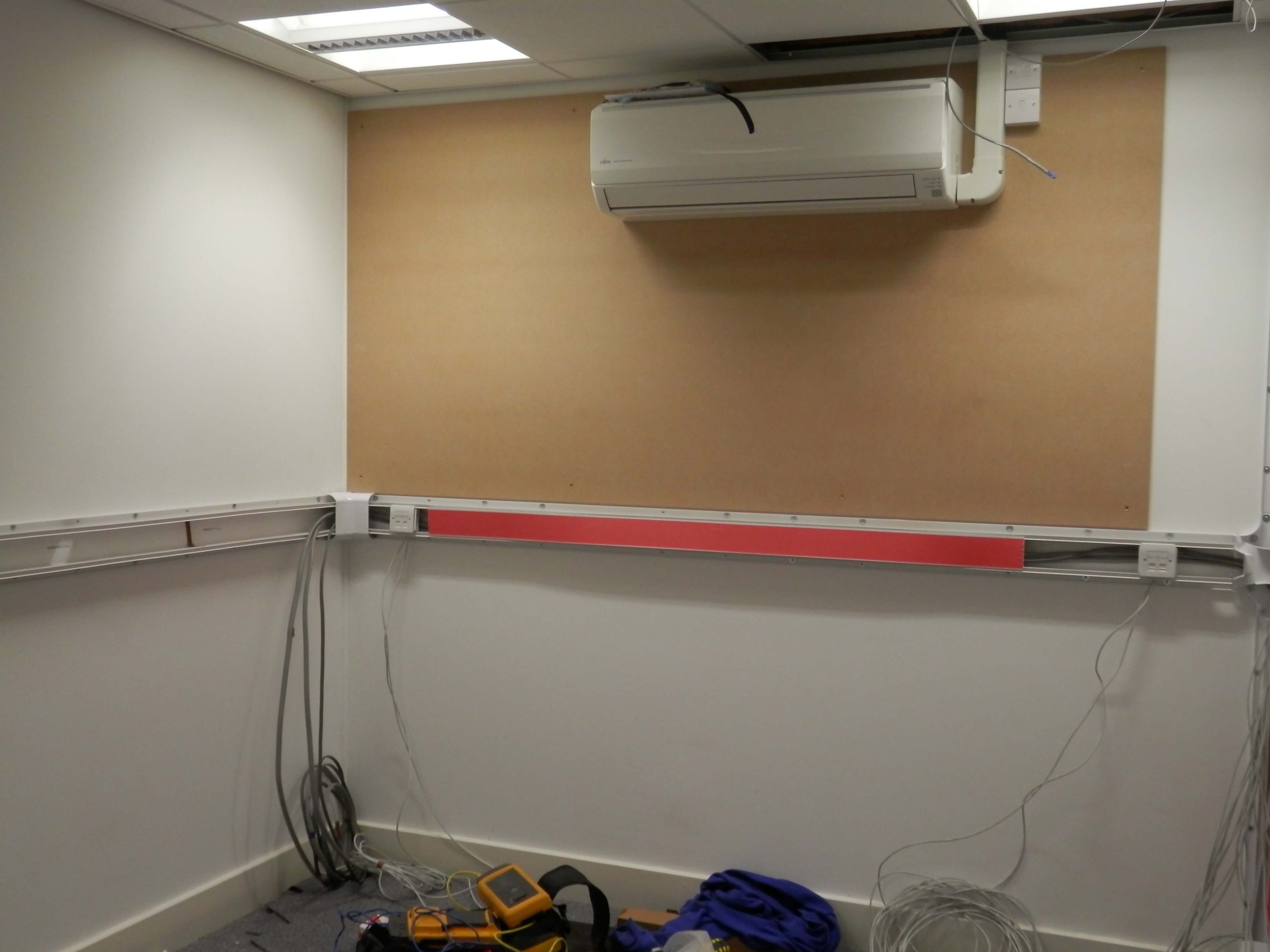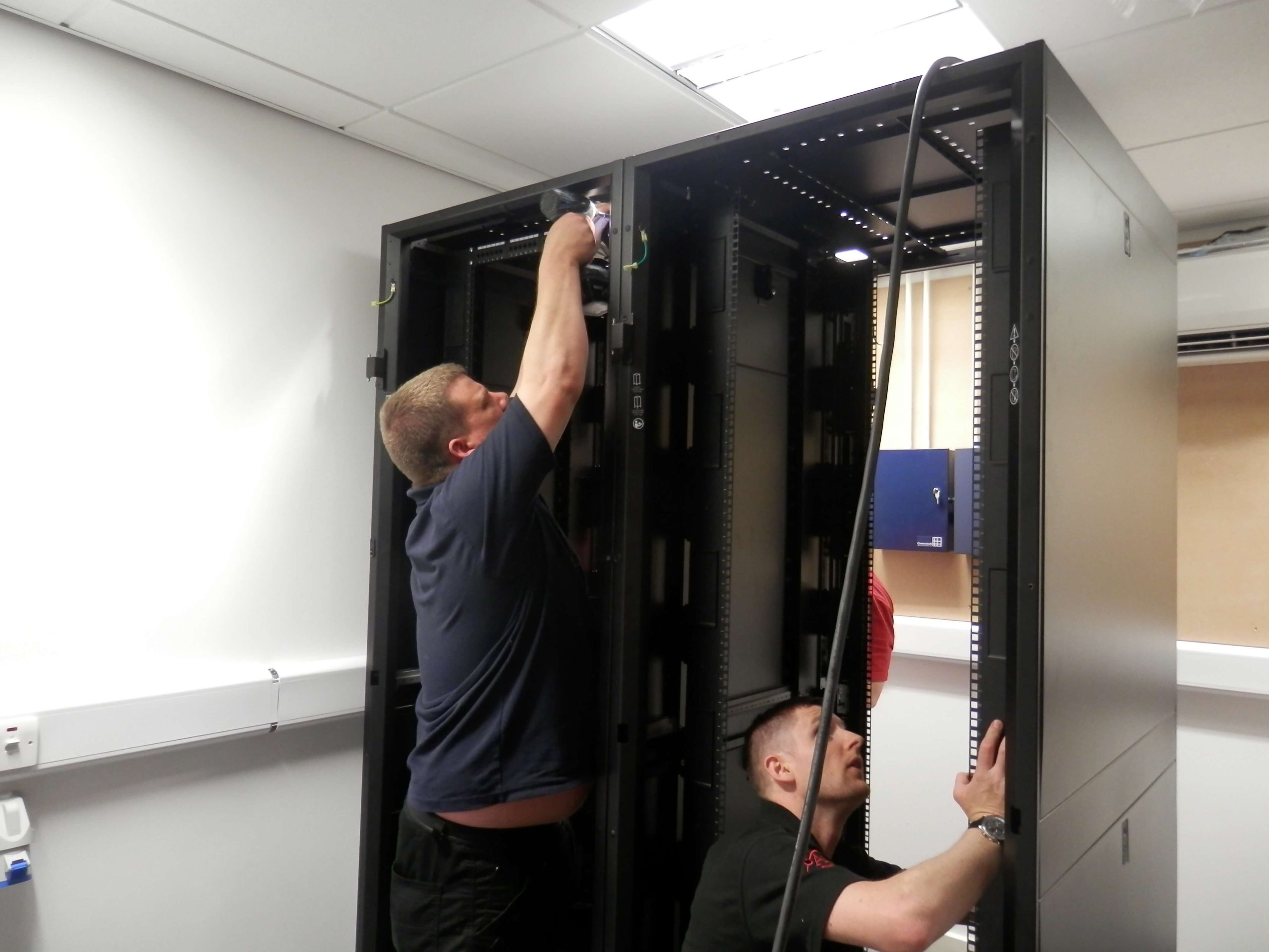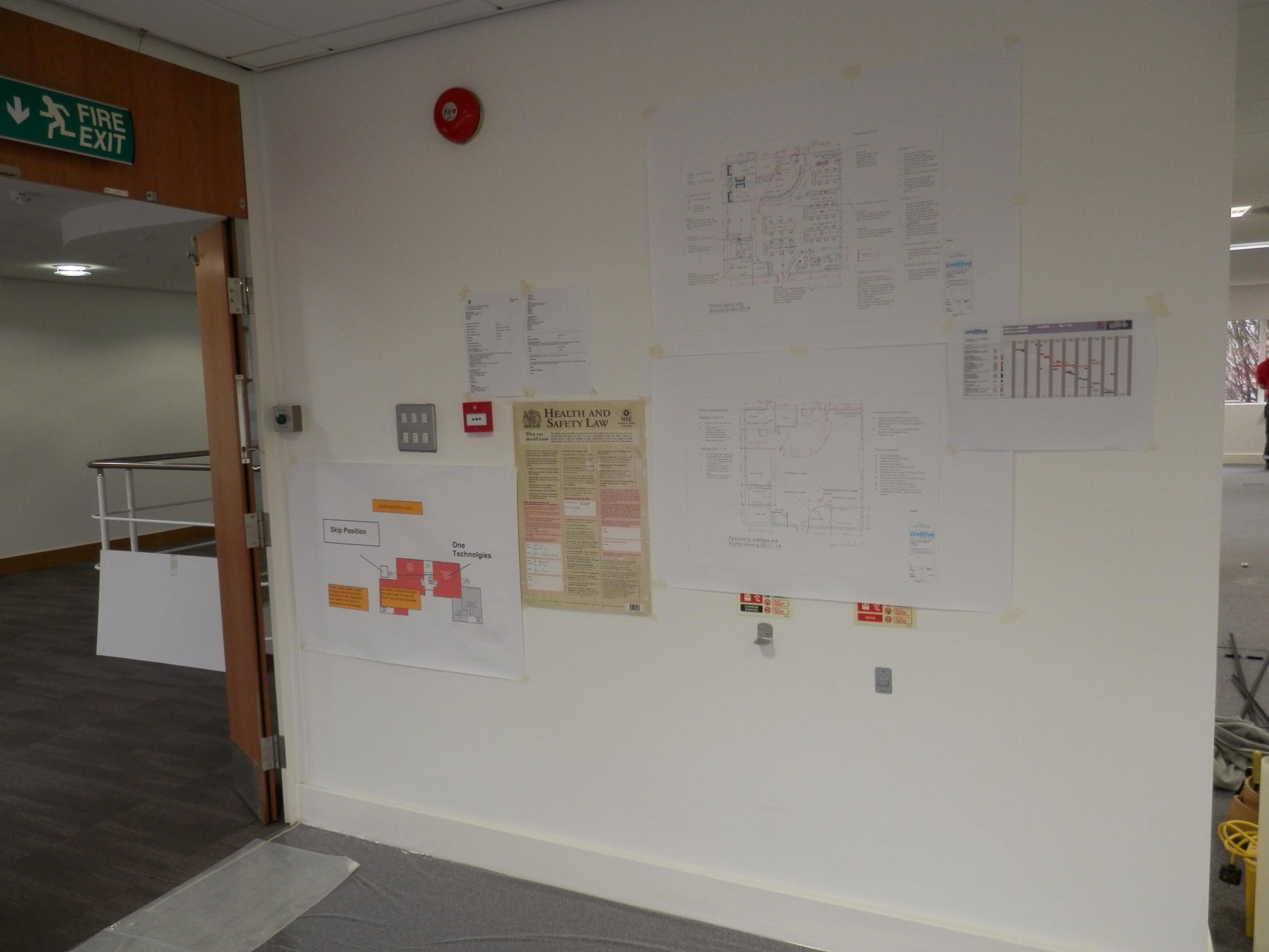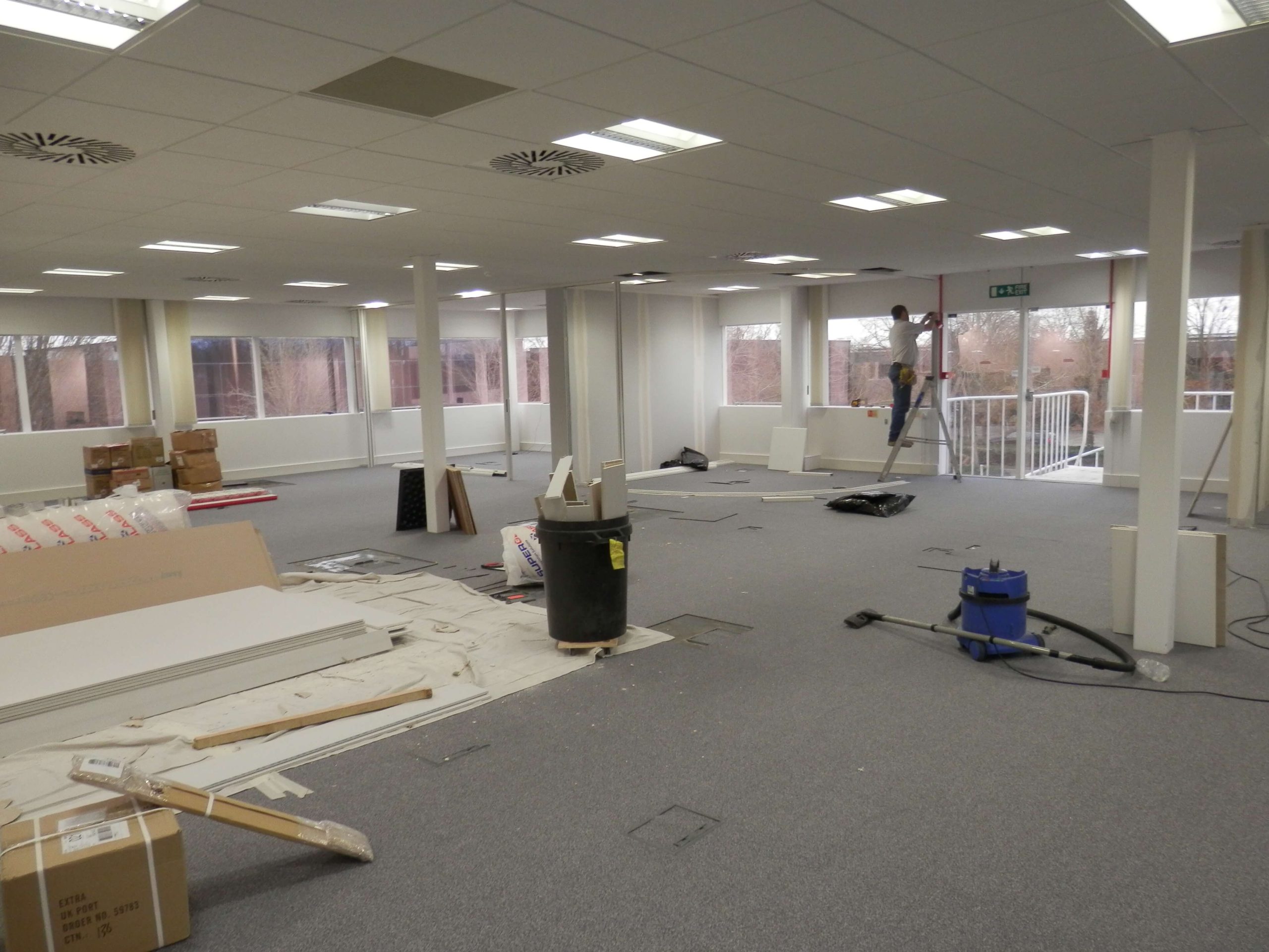 As you can see from the photographs there was quite a bit to organise, in particular we had to follow the progress to a programme, as well as maintaining dates that had to fit in with the American IT team visiting the UK to install the server the programme had to be met for the financial reasons in order to maintain a steady flow of payments coming to us from the USA. The main office design and fit out project for us was only one small part in order to get the office up and working. The customers IT people only had 3 days to install all of the equipment, so all of the infrastructure cabling, power, air conditioning, cabinets and of course all of the security access controls and cameras had to be fully working before they came over to visit. They were bringing with them a special server built by Dell to handle the call volumes anticipated in the office and the server itself cost 7 figures.