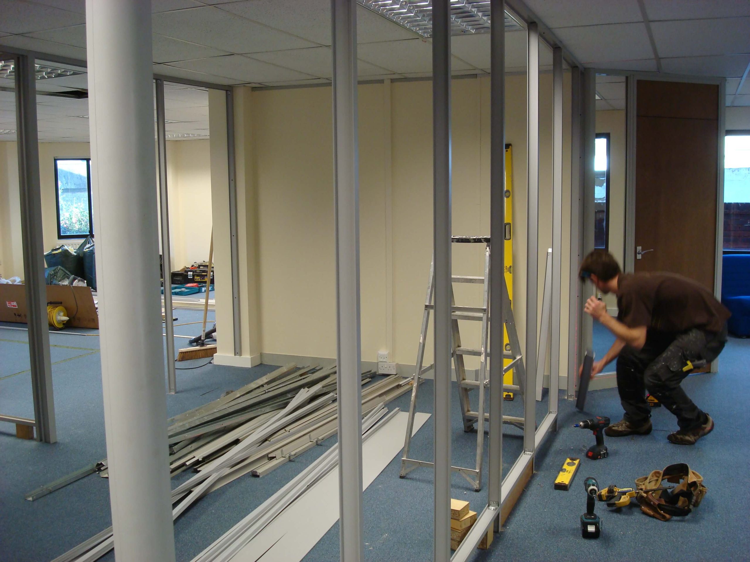 This project is exactly a take down and rebuild project, but with a bit more added. Although this sounds complicated, it is exactly what demountable partitioning is designed to be, you do need not destroy the partition when you take it down, as you can re-use most of the parts. The only provision is that the re-built demountable partition needs to be in the same area with the same ceiling height.