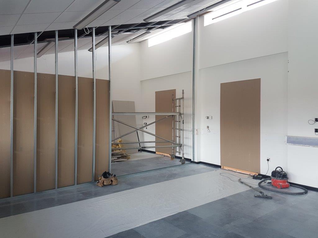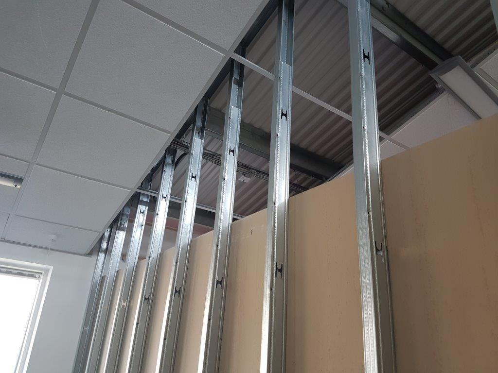 Once the mezzanine floor was in place a new fire rated partition was built along the leading edge of the mezzanine up to the roof level. This was almost 6m high which meant the installation was completed using a scissor lift and the space was very narrow between the soft play and the partition in some parts.
