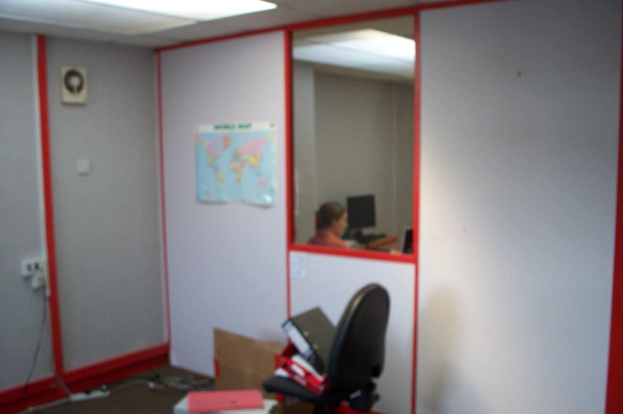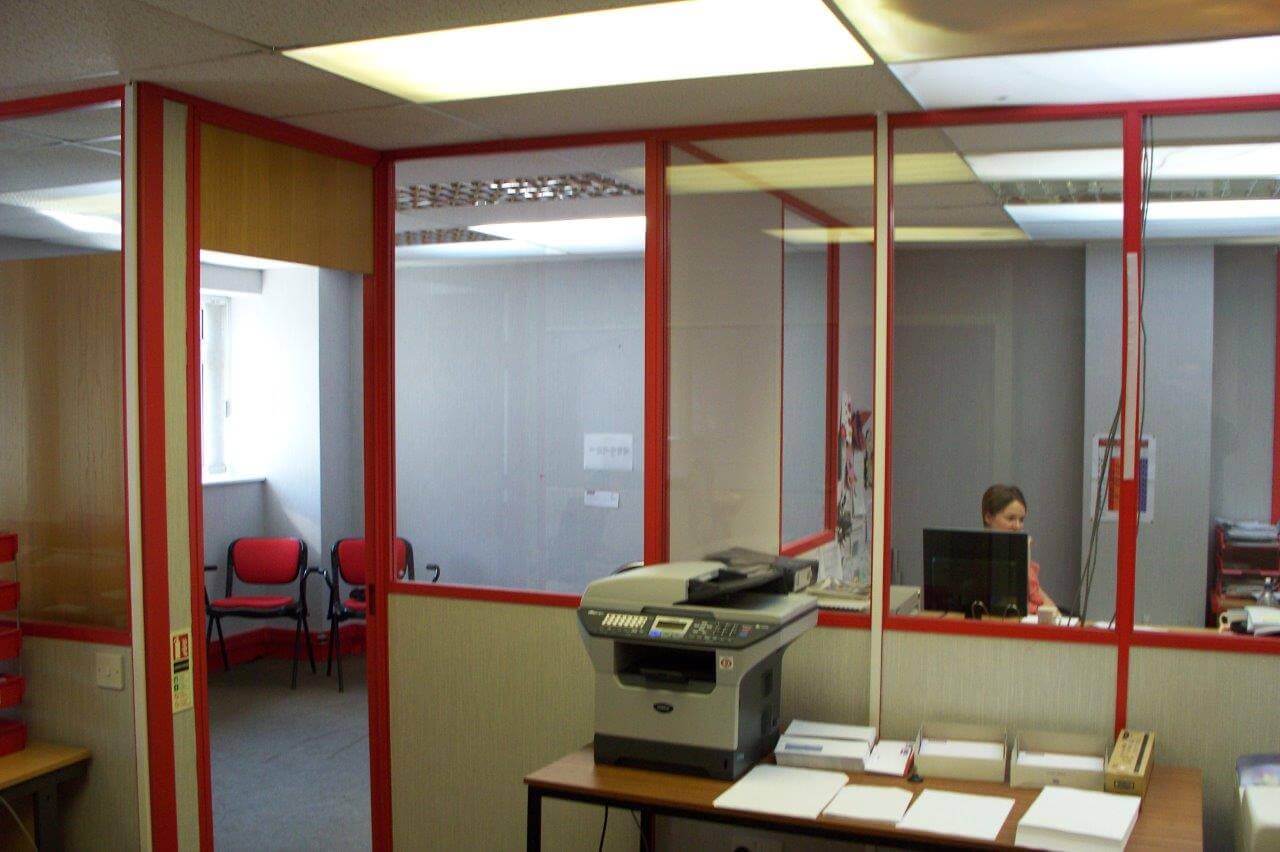 The existing office partitioning was unsuitable because sound traveled between the walls of the offices, and this issue was an important factor in needing something to be done. 50mm systems are quite ineffective for good sound insulation, so a 75mm system was suggested, which reduces most sound up to 42db (people talking will just be heard).