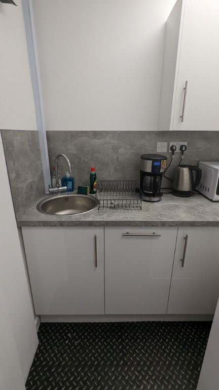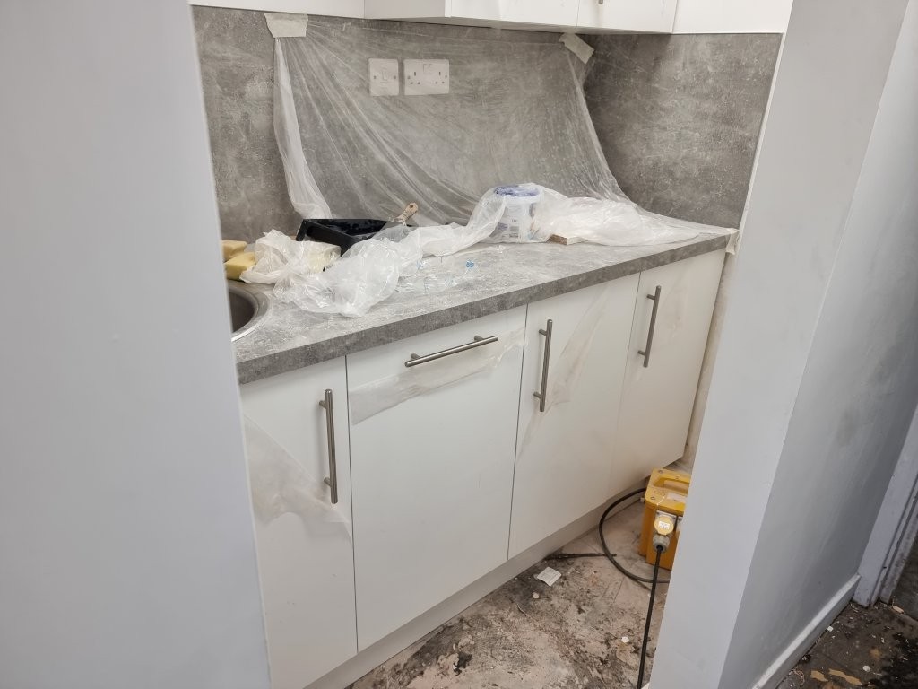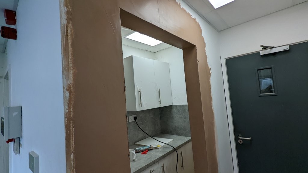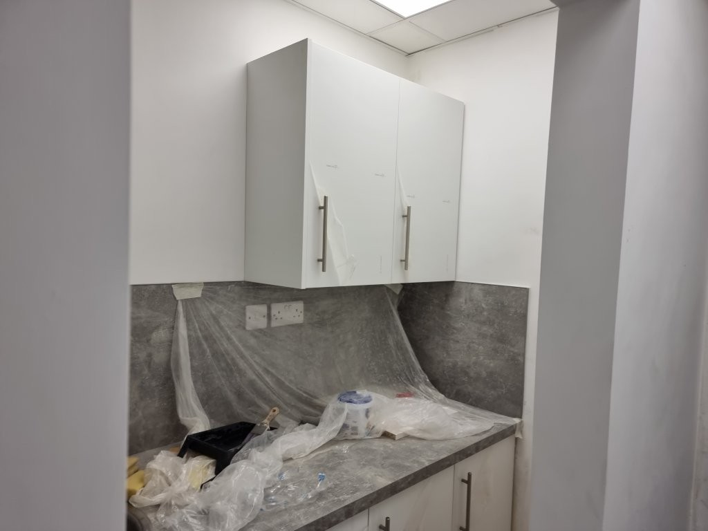 The project commenced with the complete decommissioning and strip-out of the existing facilities. To support the new kitchenette, we performed electrical chasing to ensure all power points were seamlessly integrated. Following the first-fix electrical work, all surfaces underwent thorough remediation—filling and making good to provide a flawless substrate for the final decorations.
